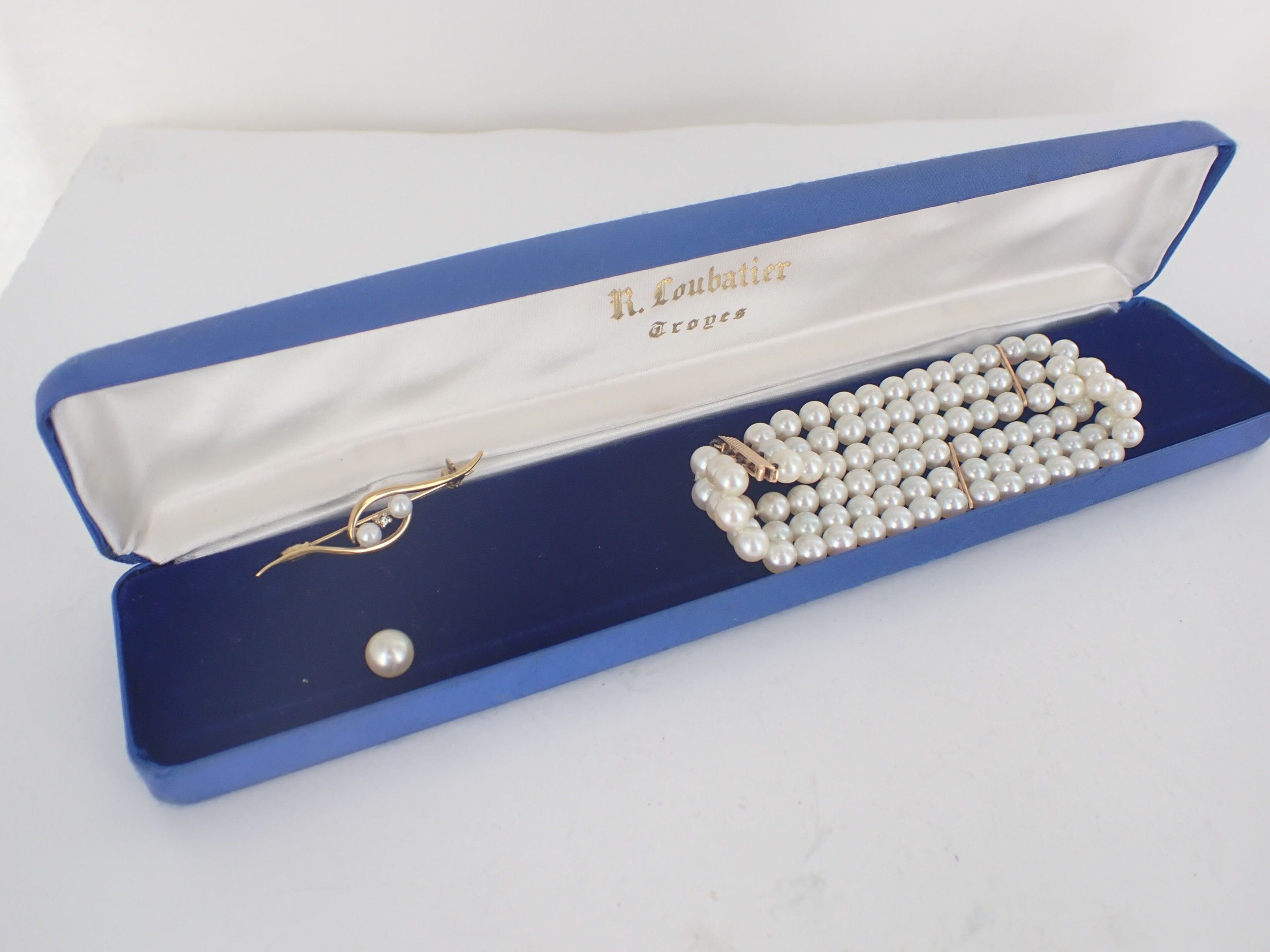 Cultured pearl bracelet and brooch