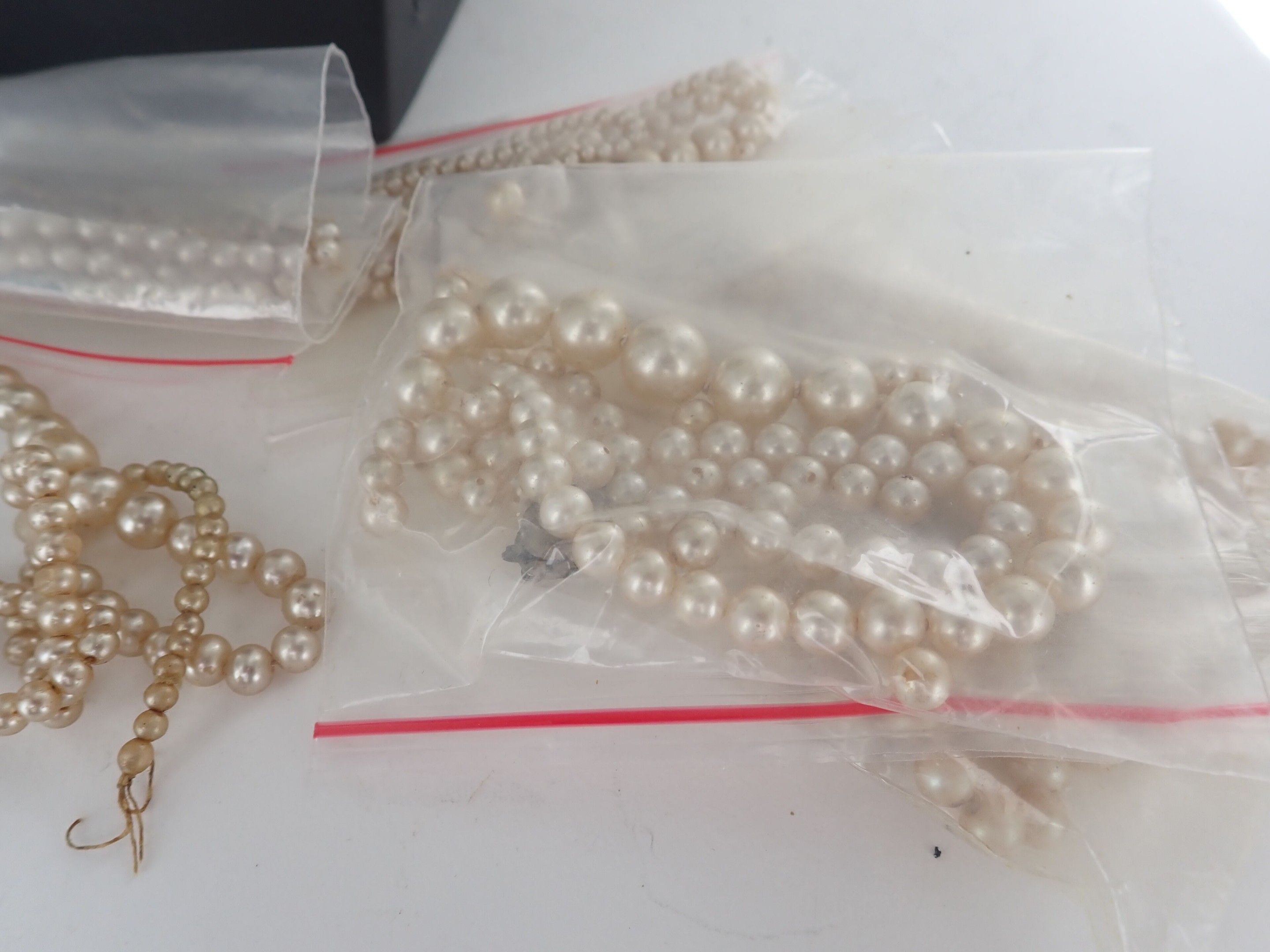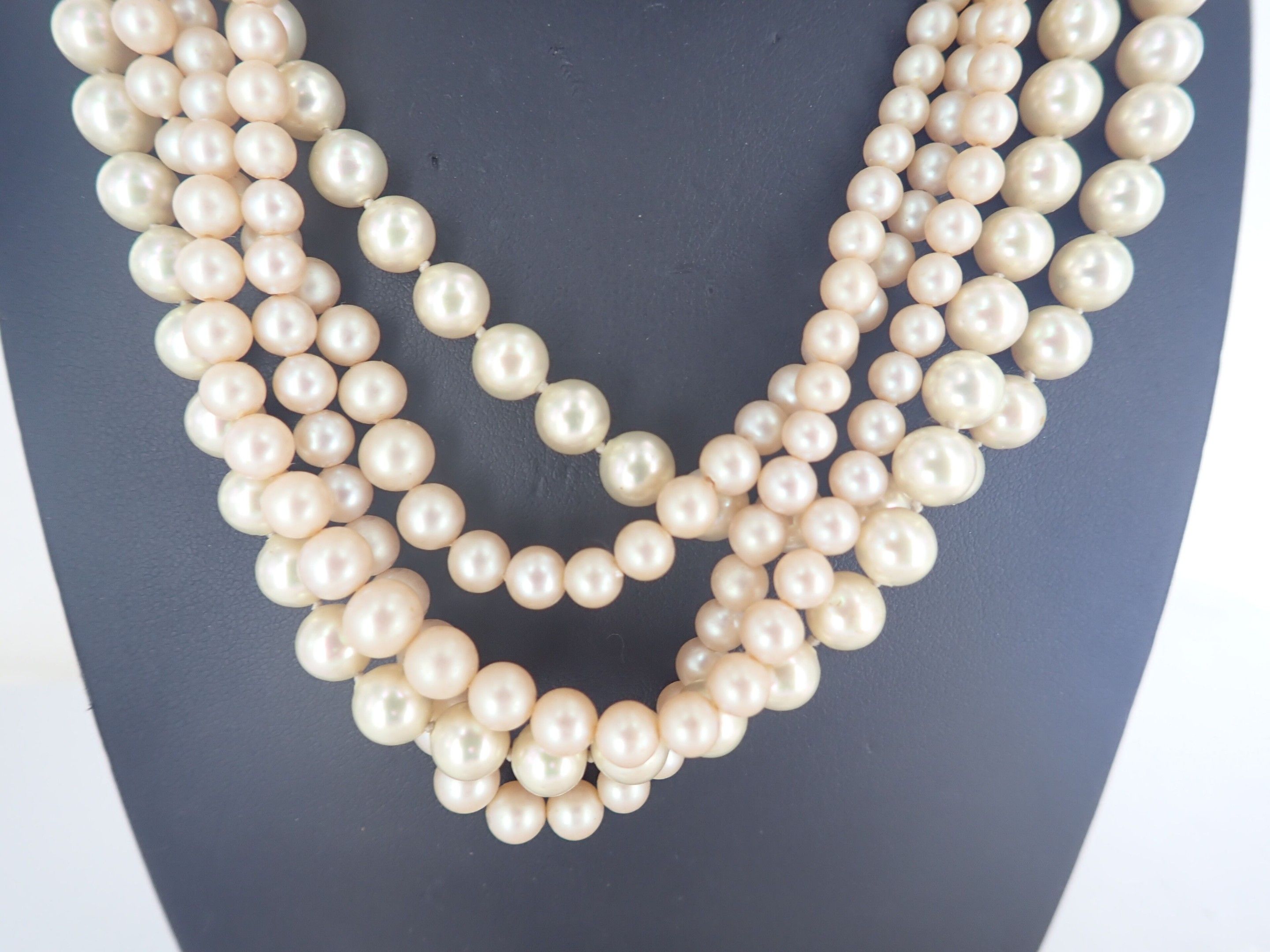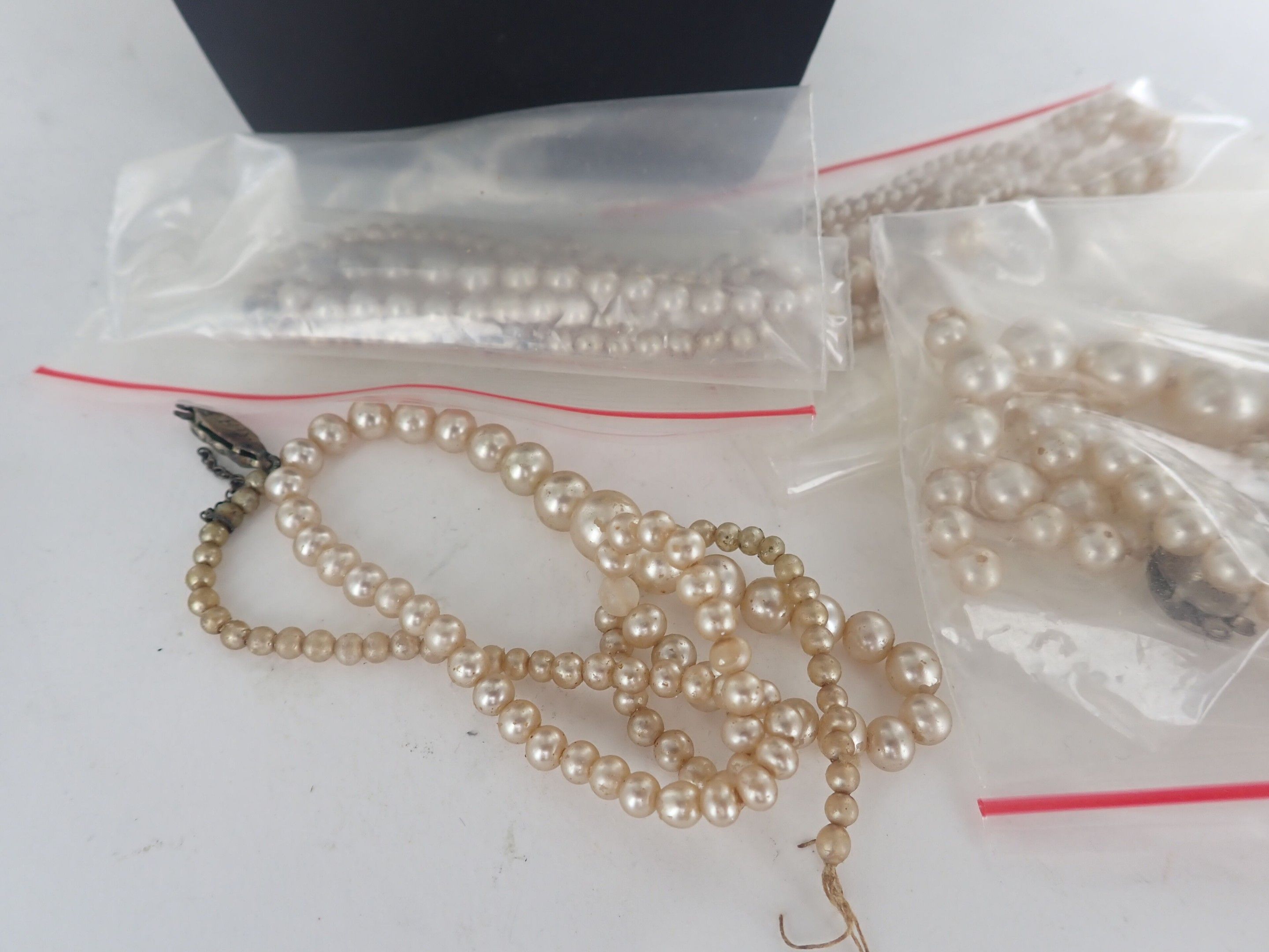 Set of 7 fantasy pearl necklaces, two silver clasps.