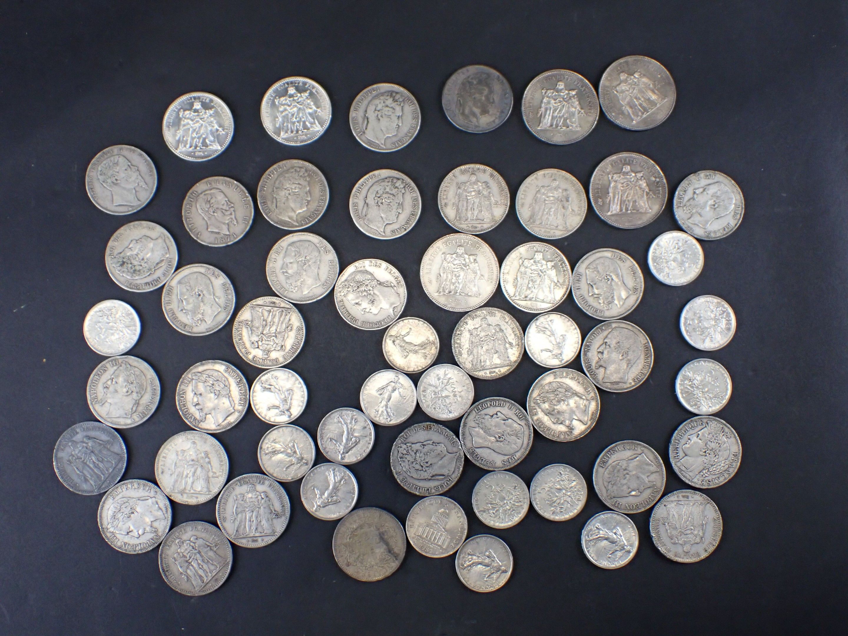 Set of 62 silver coins comprising: 4 silver 50 franc Hercules type coins,