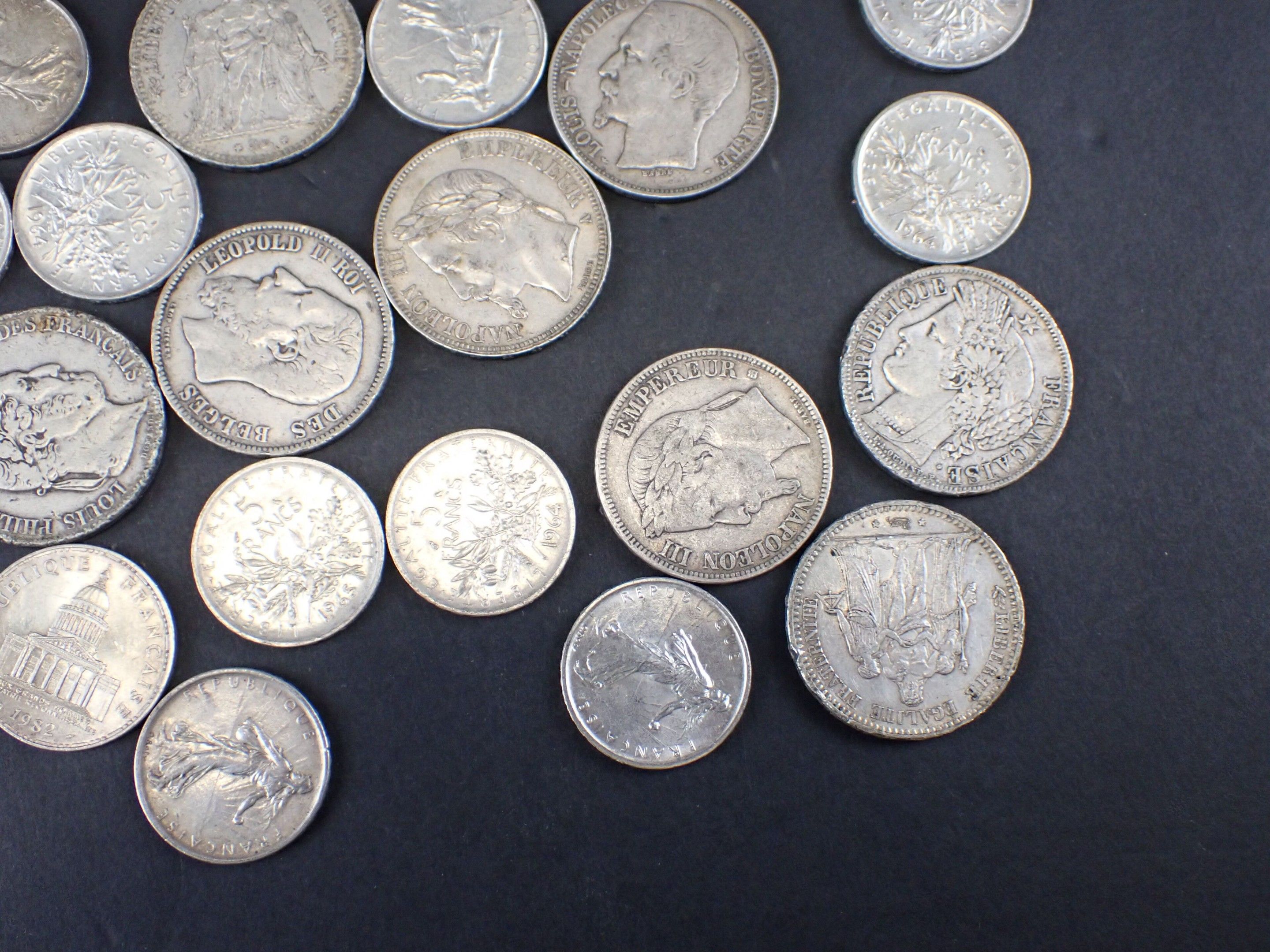 16 silver 5-franc coins of the Sower type,