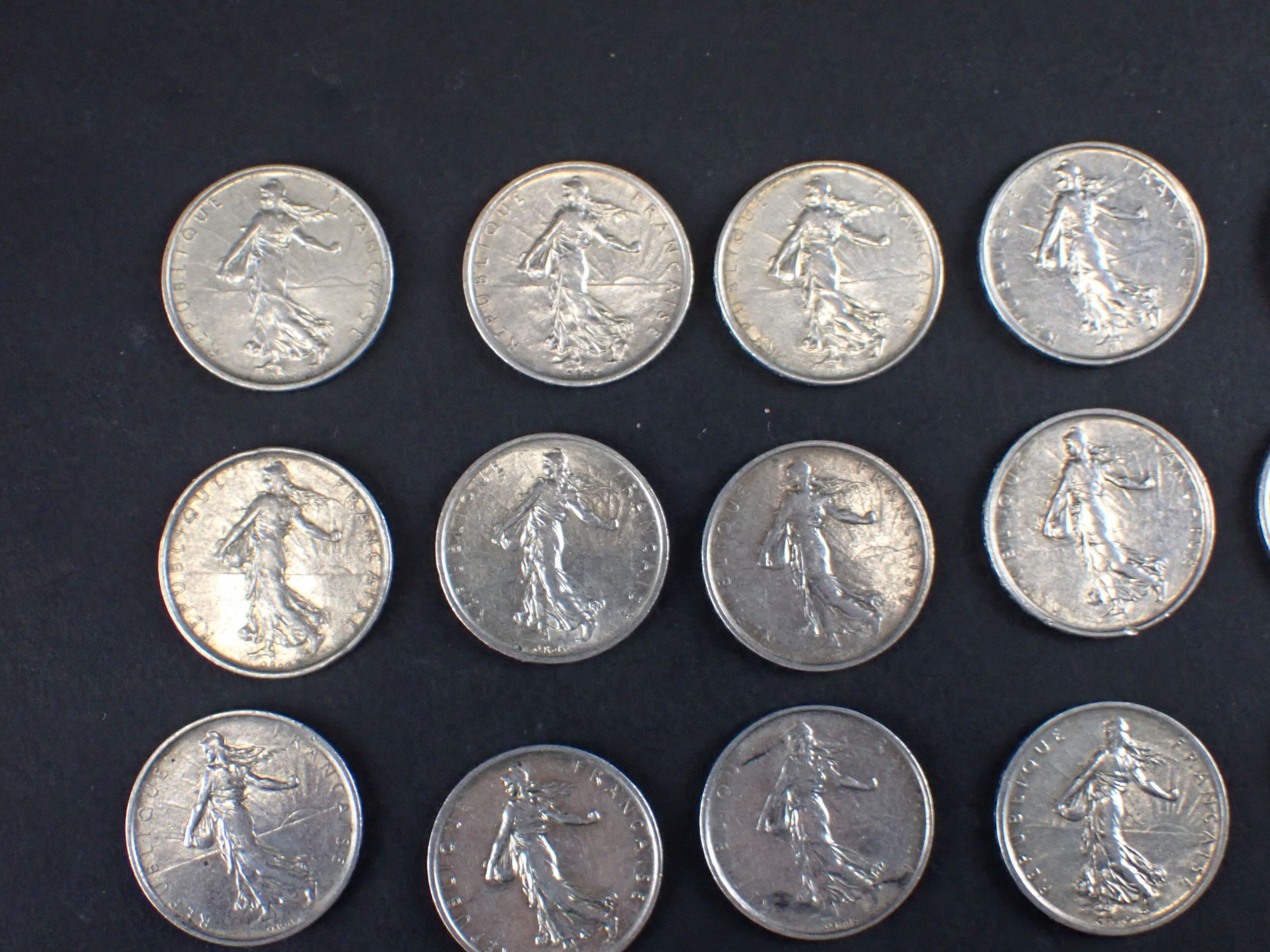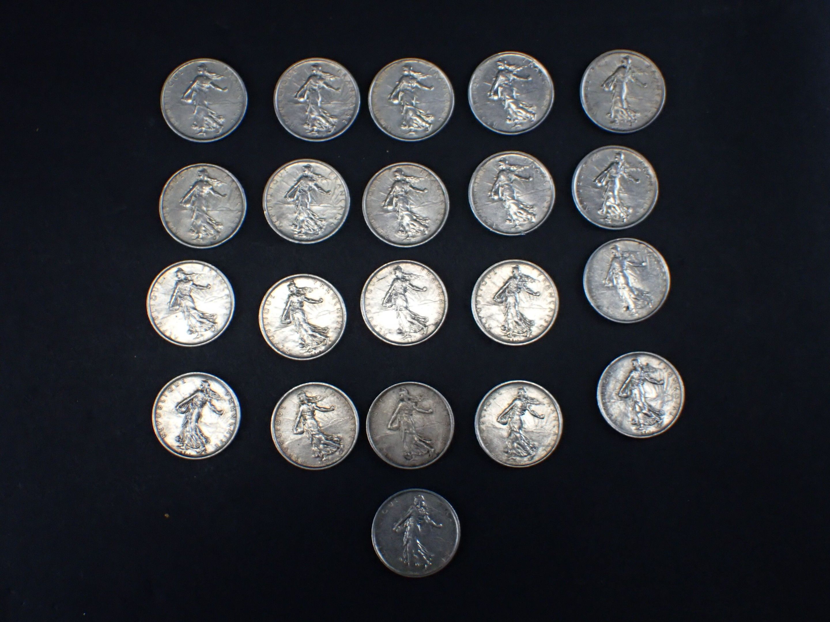FRANCE: Reunion of 21 5-franc silver Semeuse type coins, fro…