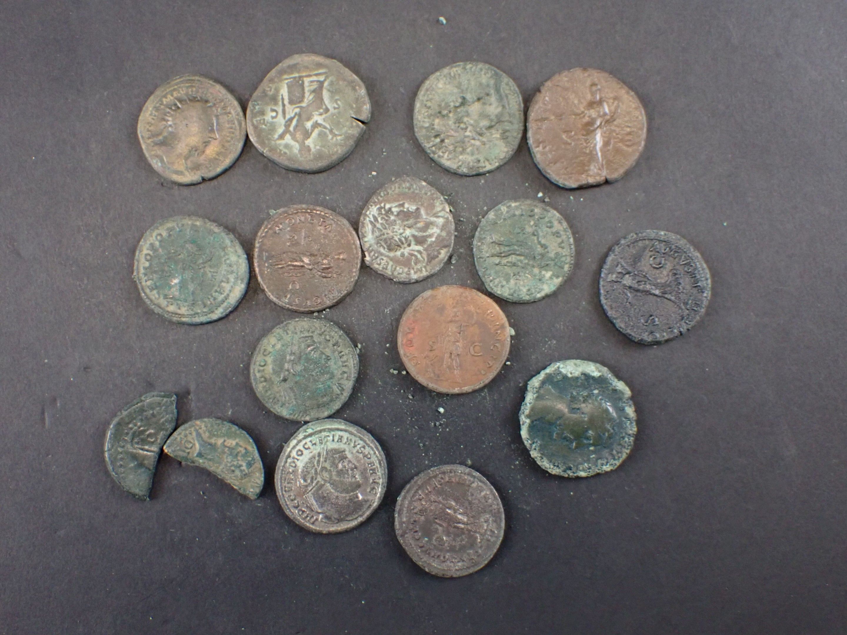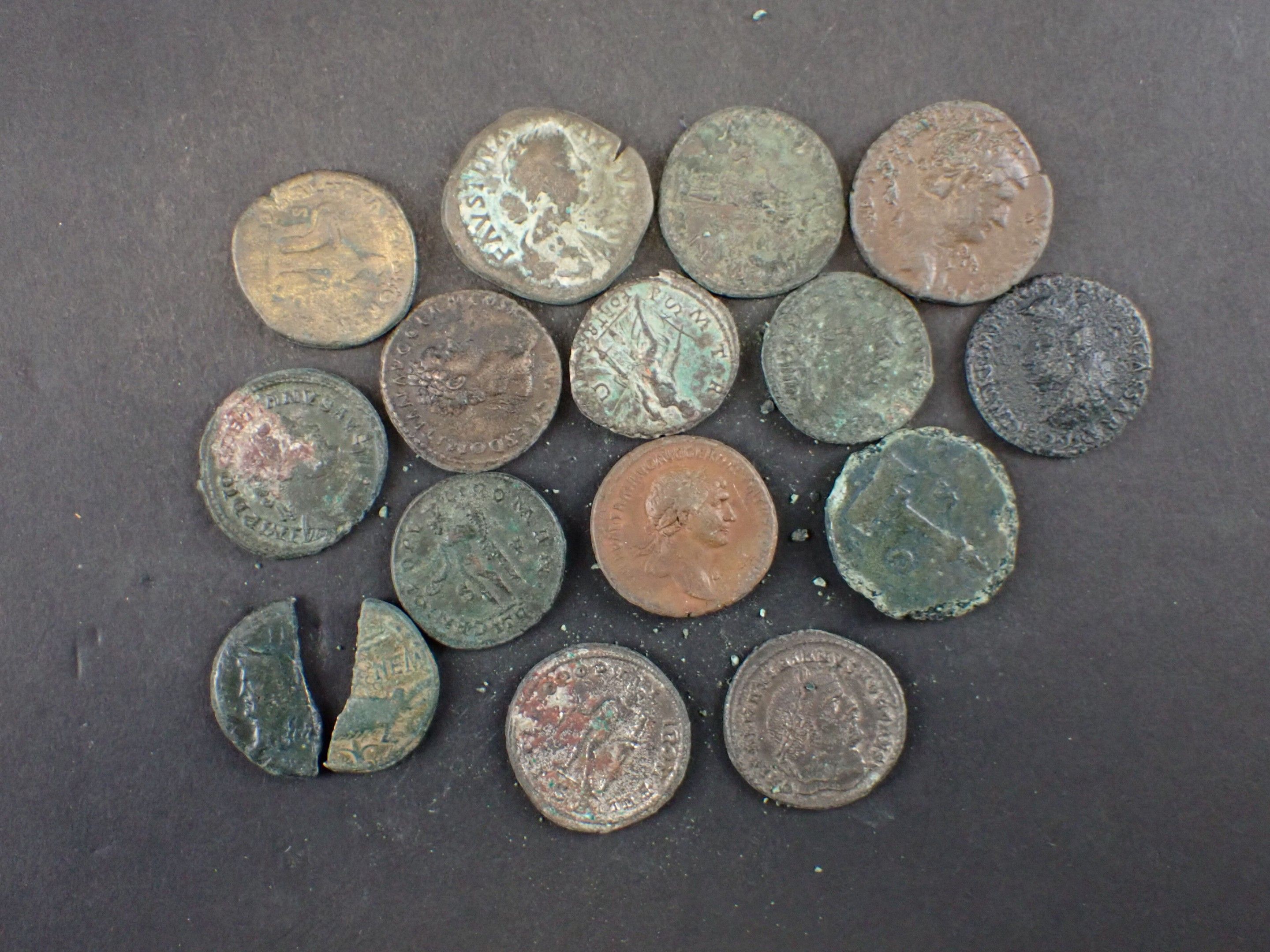 ROME 1st - 3rd Century. Set of 14 various Roman coins: Sesterces, As, Follis, Dupondii in the effigy of Nero, Antoninus the Pious, Hadrian, Domitian, Diocletian, Galerius Maximian, Trajan....