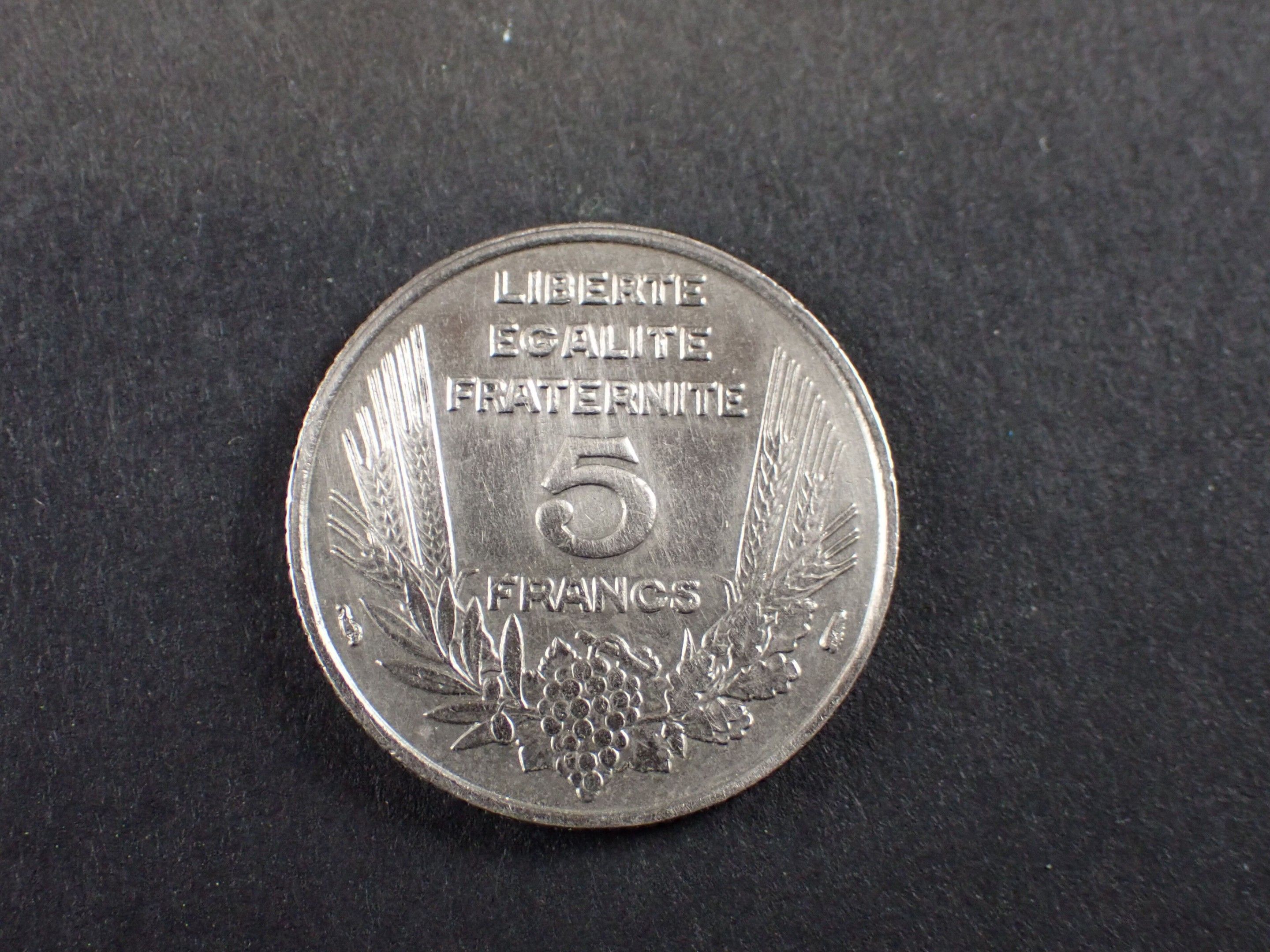 IIIrd REPUBLIC. Coin of 5 Francs Bazor Nickel, 1933.