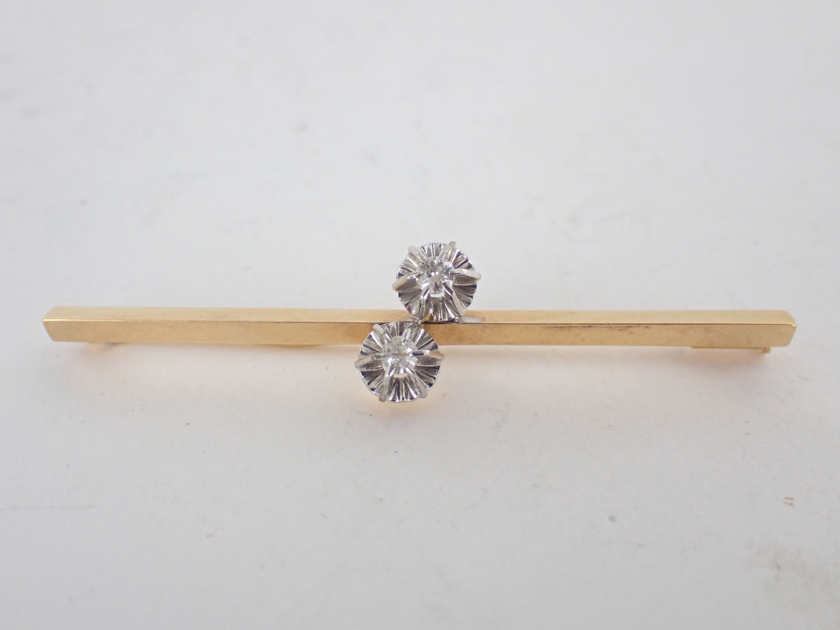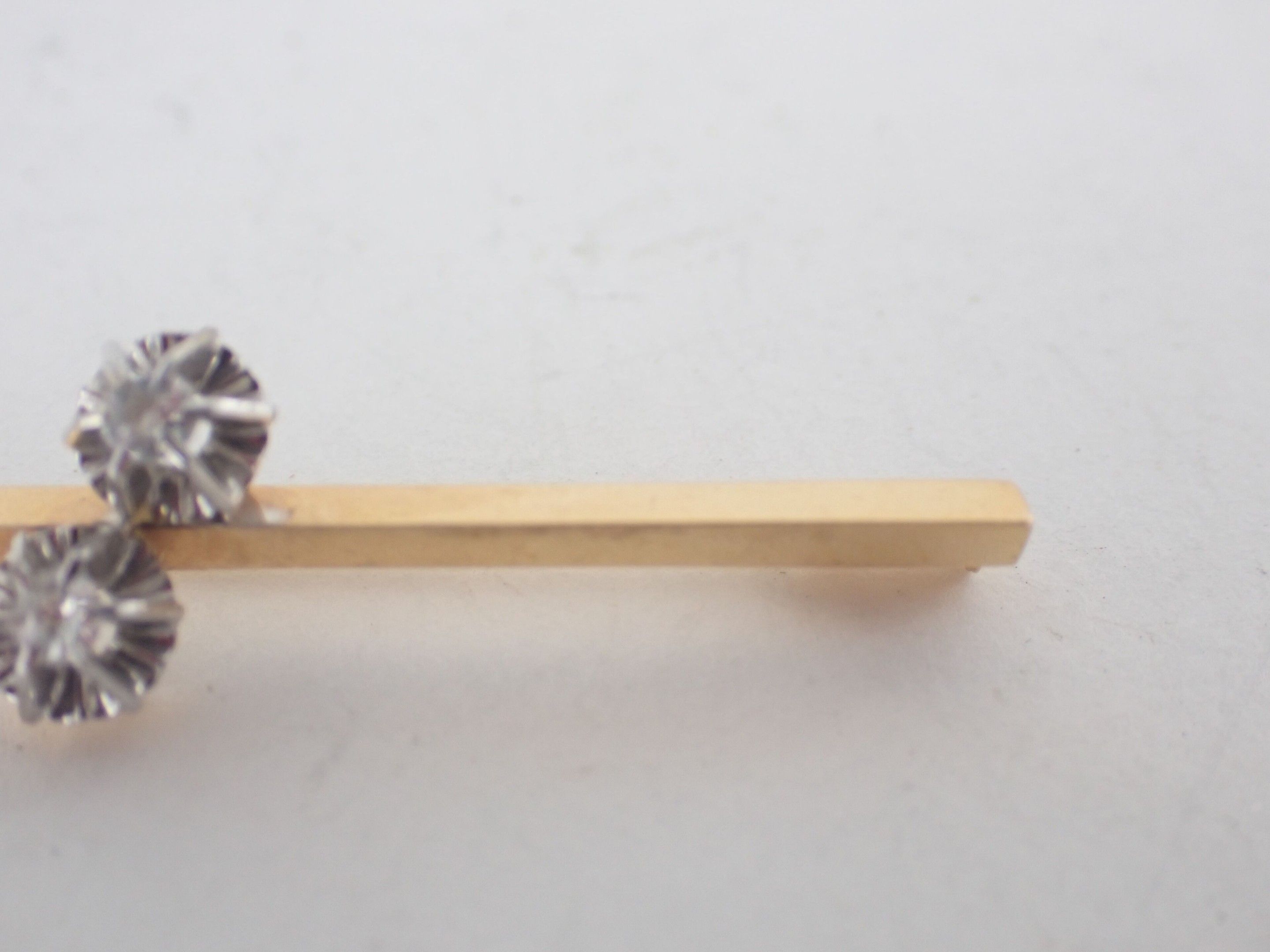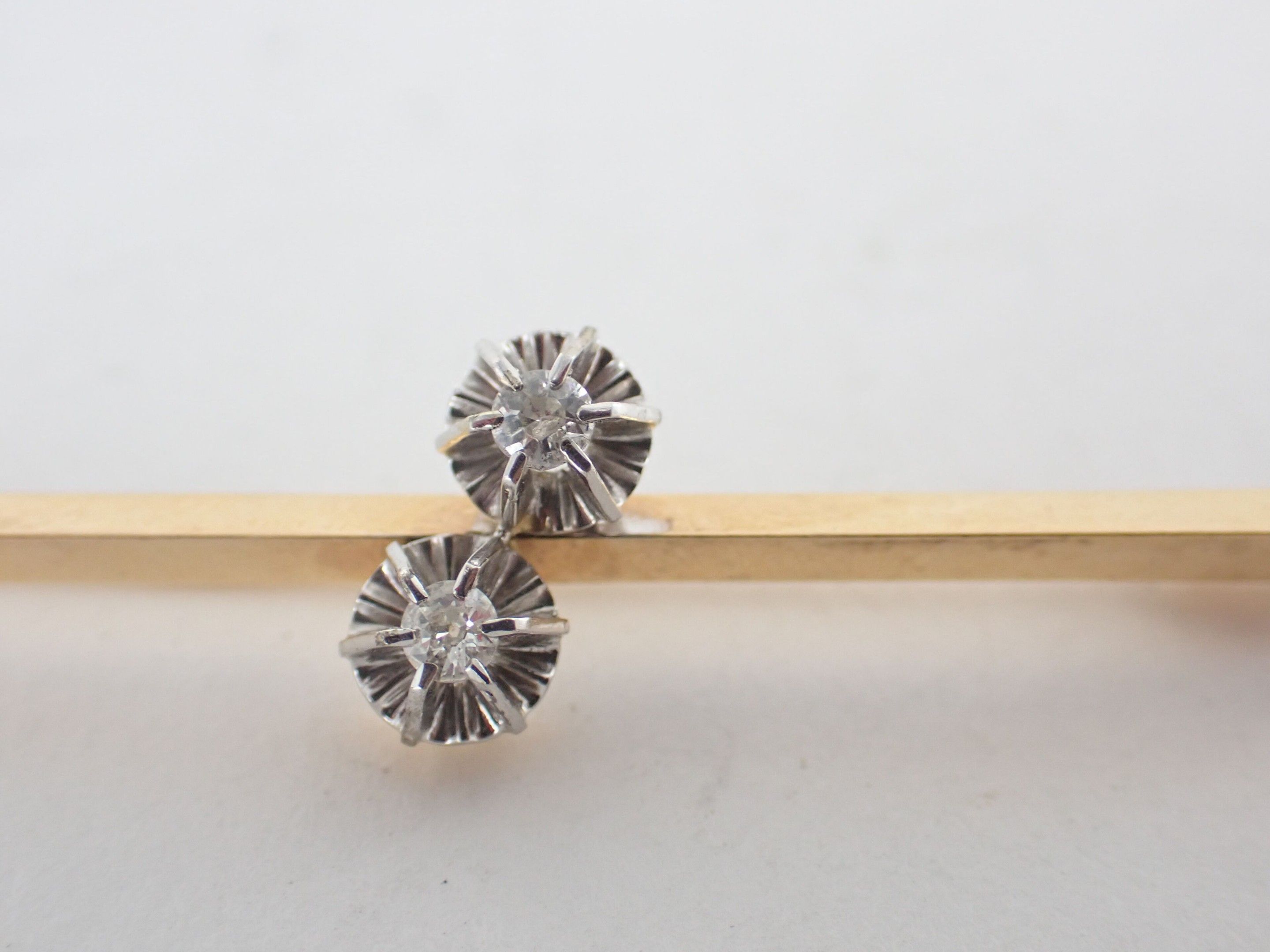 Barrette brooch in 750 thousandths yellow gold, set with two small diamonds