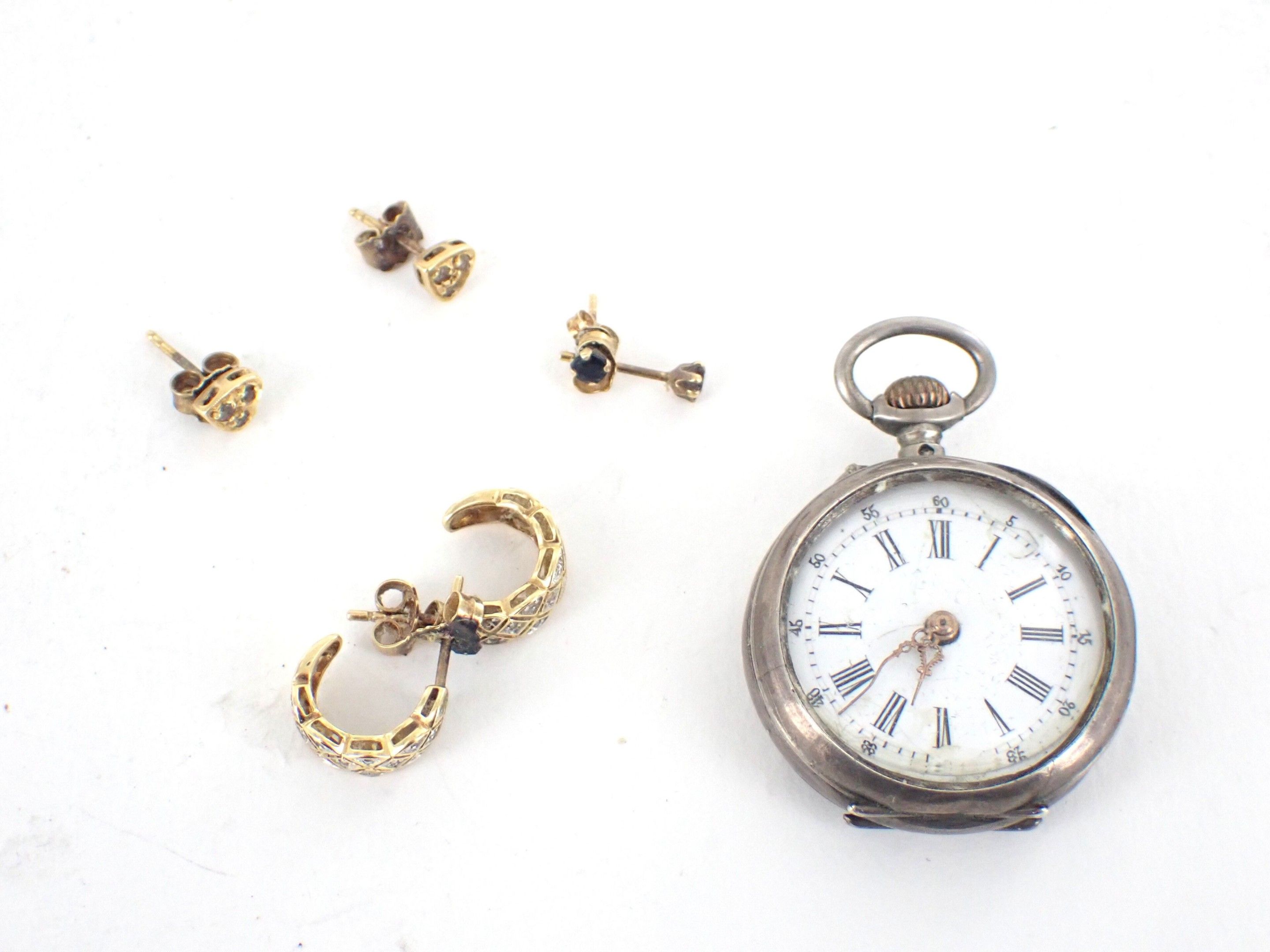 Silver collar watch Weight: 22.2 g - ATTACHED: 3 pairs of gold-plated and stone earrings