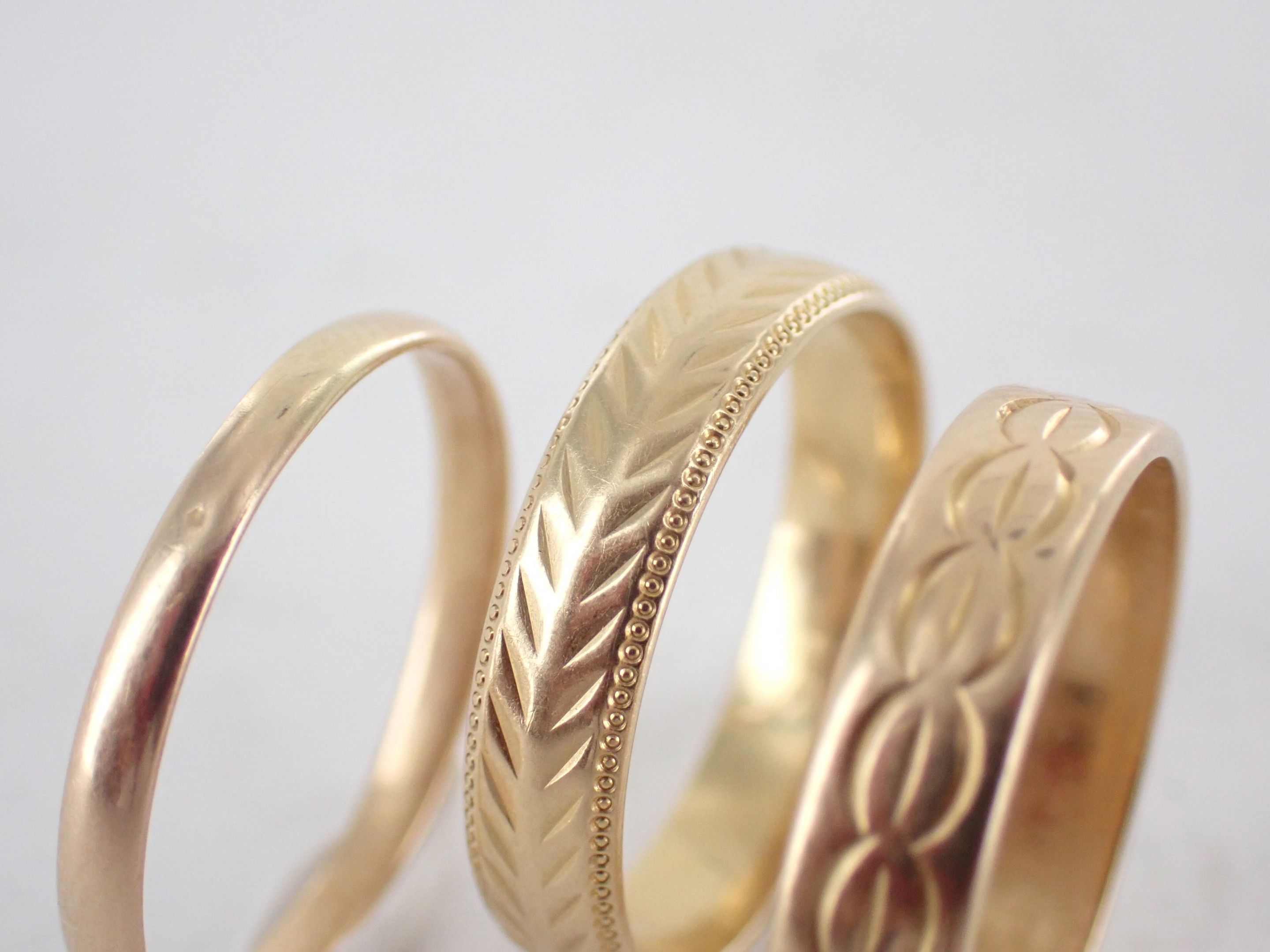 Three wedding rings in 750 thousandths yellow gold. Weight: 8 g