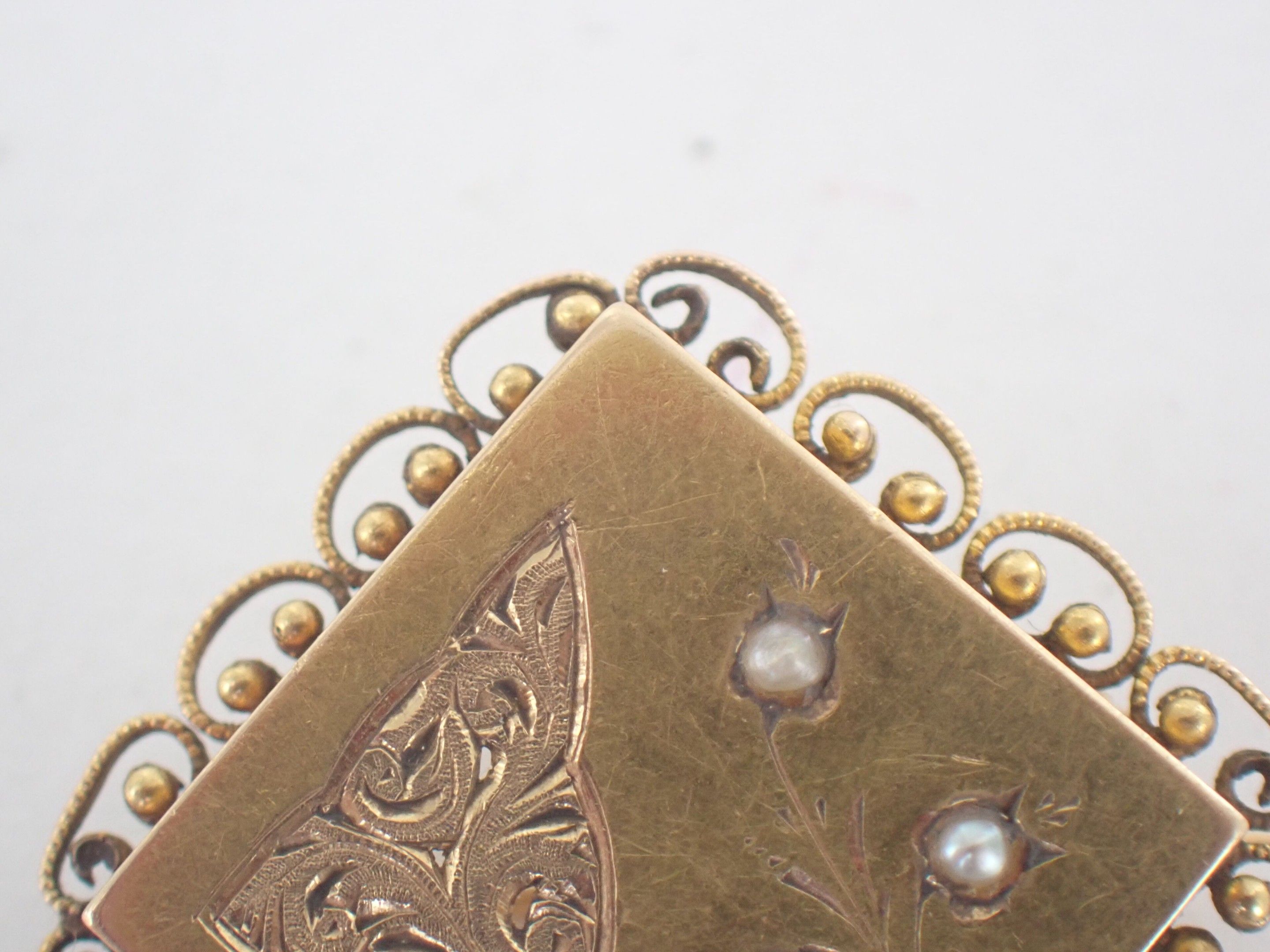 Late 19th century square brooch in 18 carat yellow gold, set…