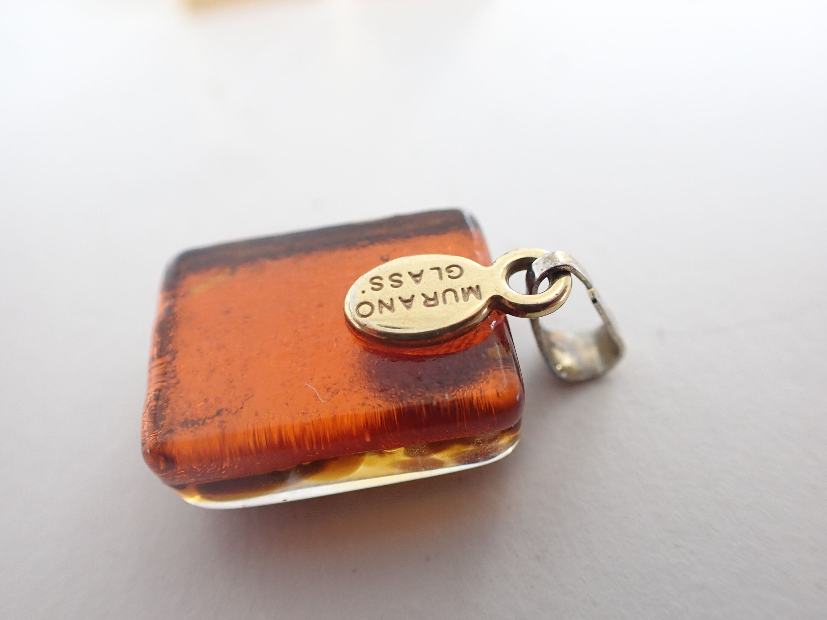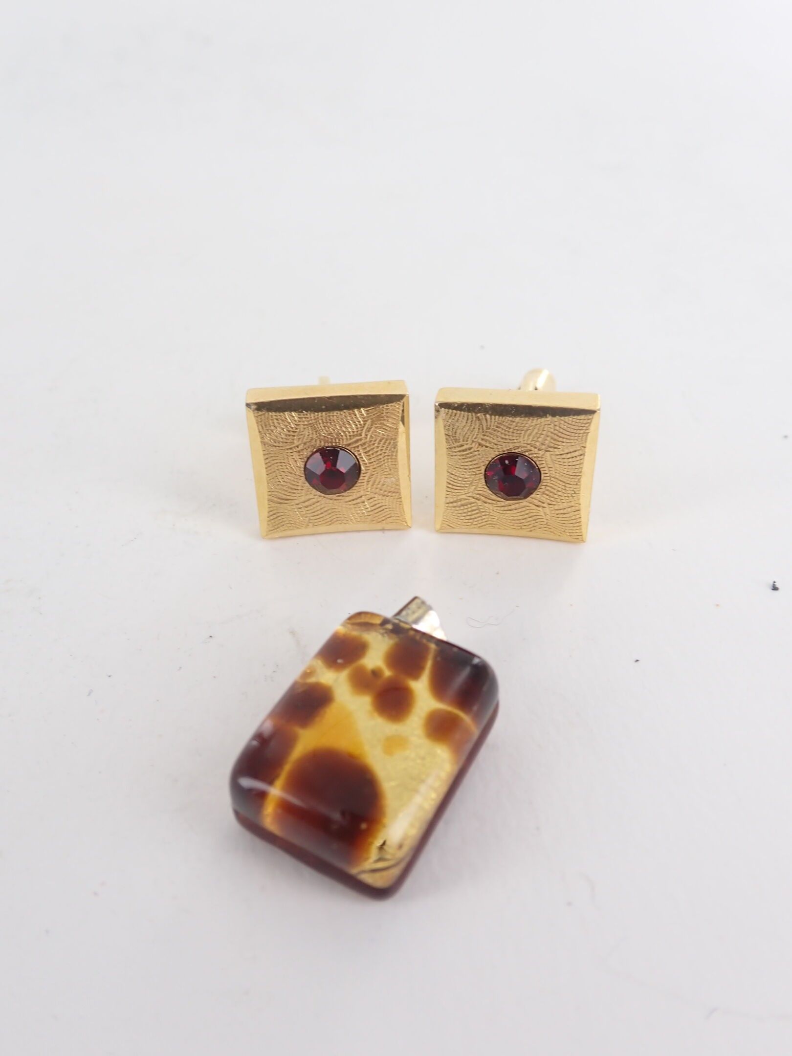 Pair of gold-plated cufflinks set with a red stone in the centre - Murano glass pendant