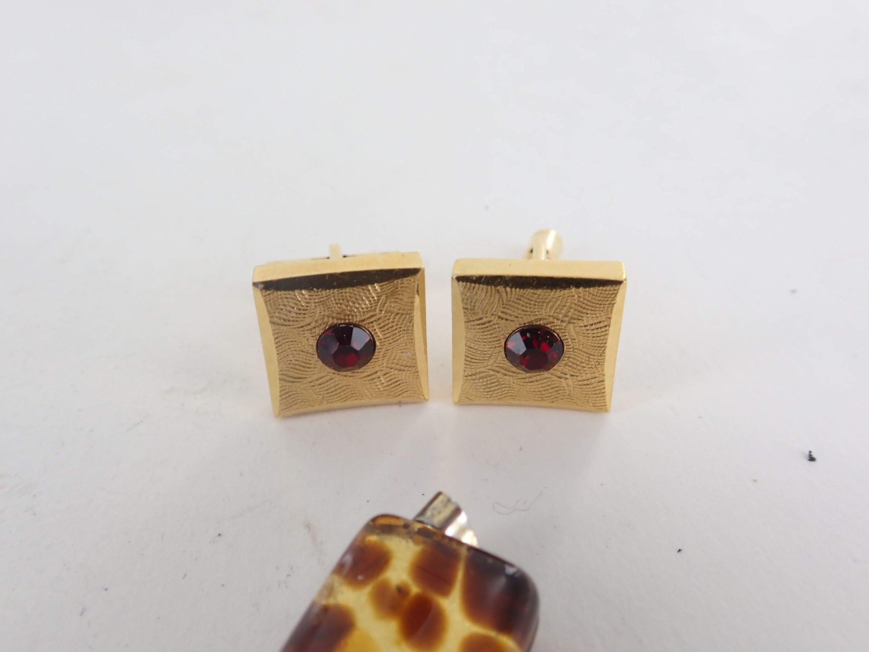 Pair of gold-plated cufflinks set with a red stone in the ce…