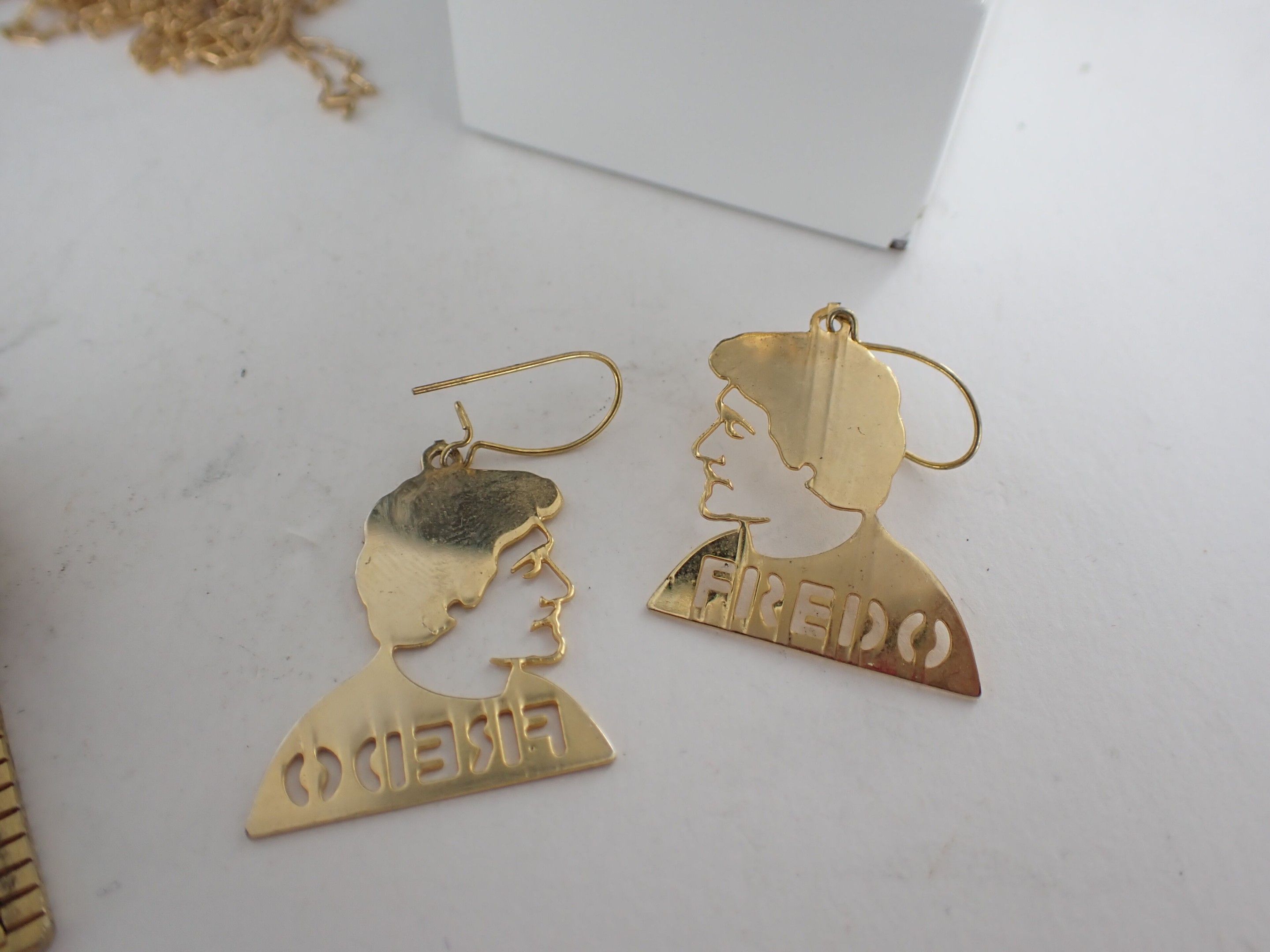 - A gold-plated necklace with two FREDO pendants.