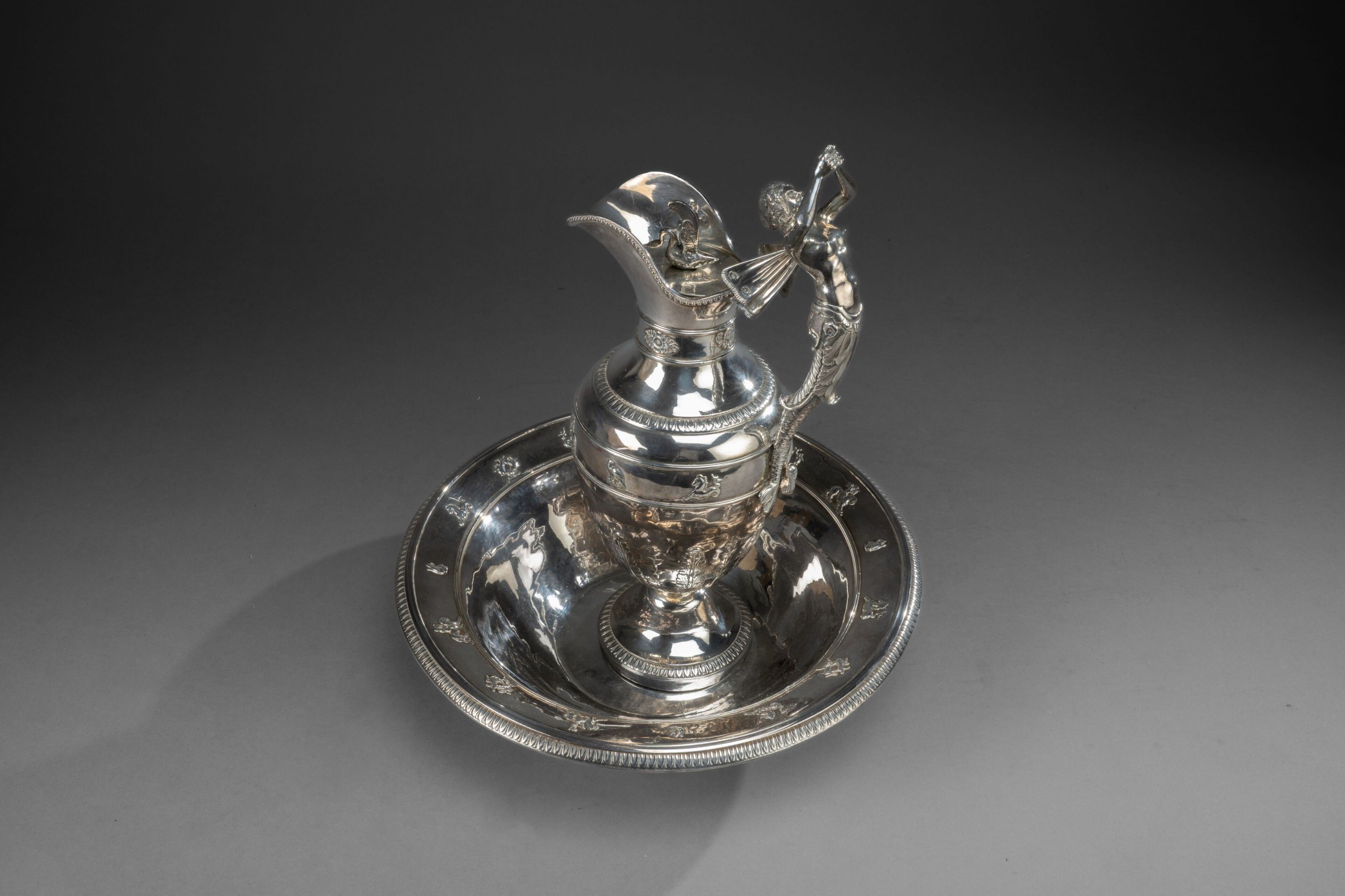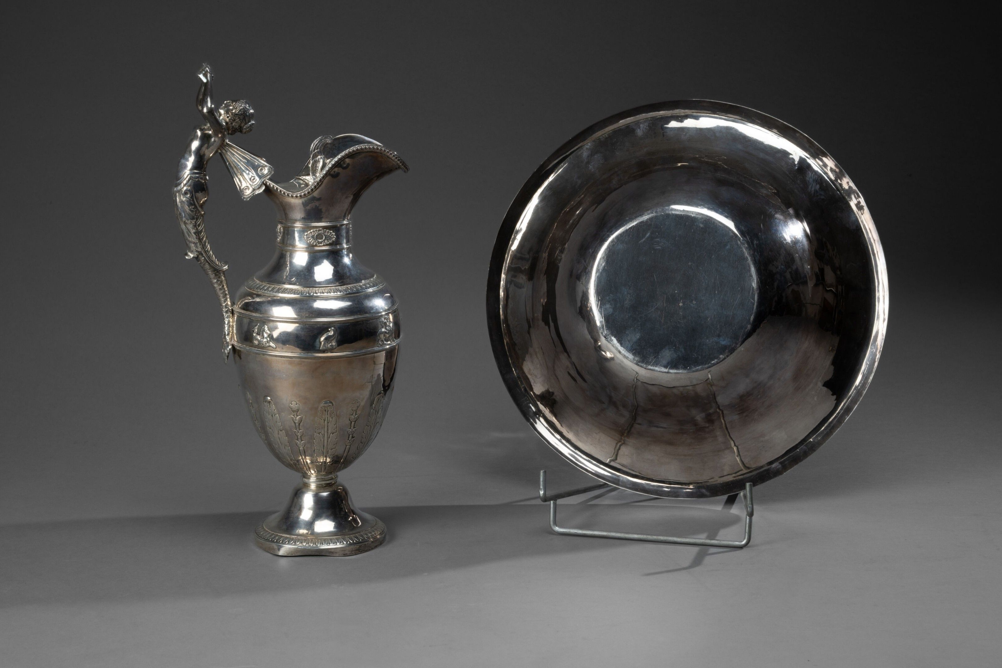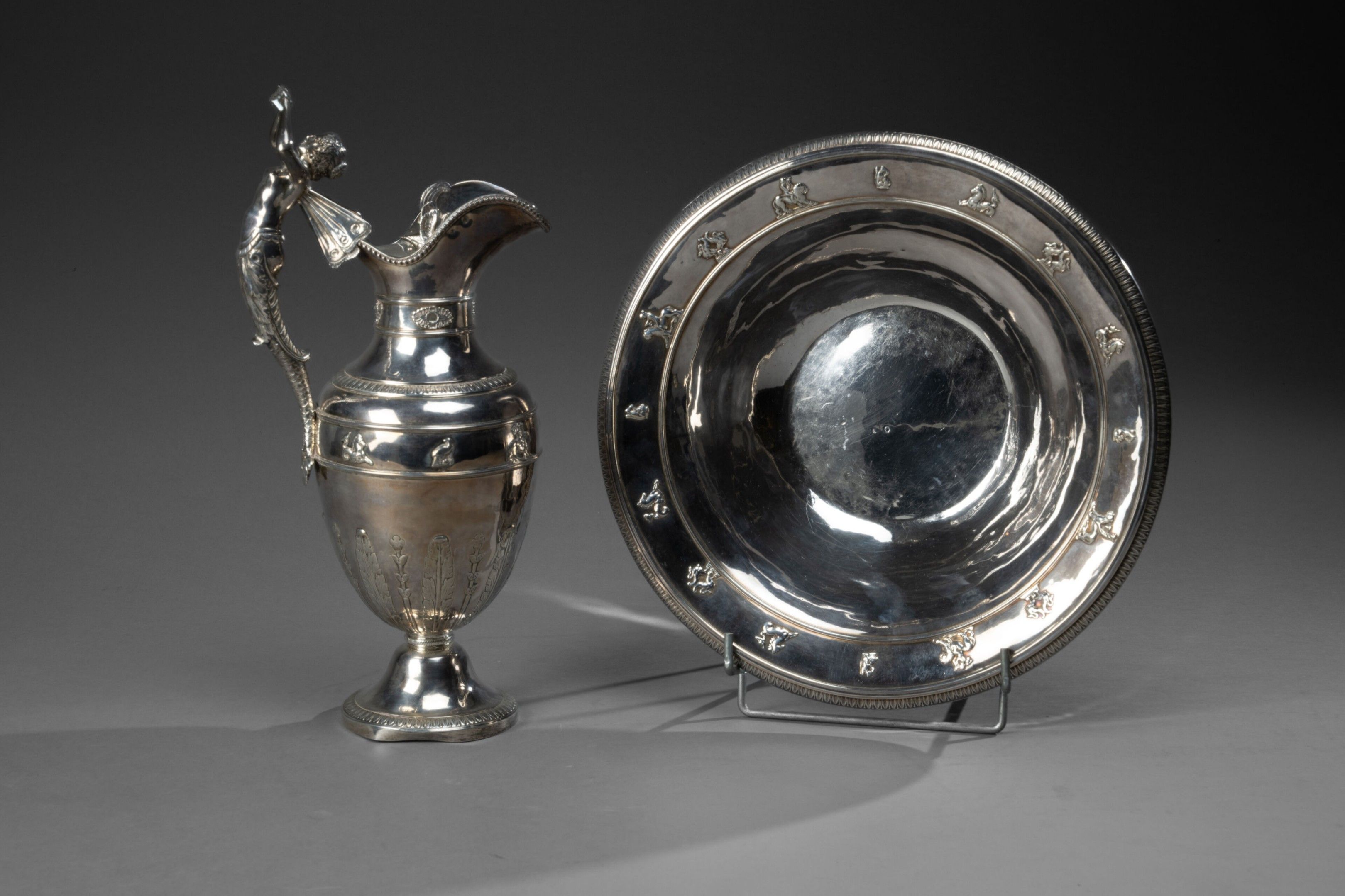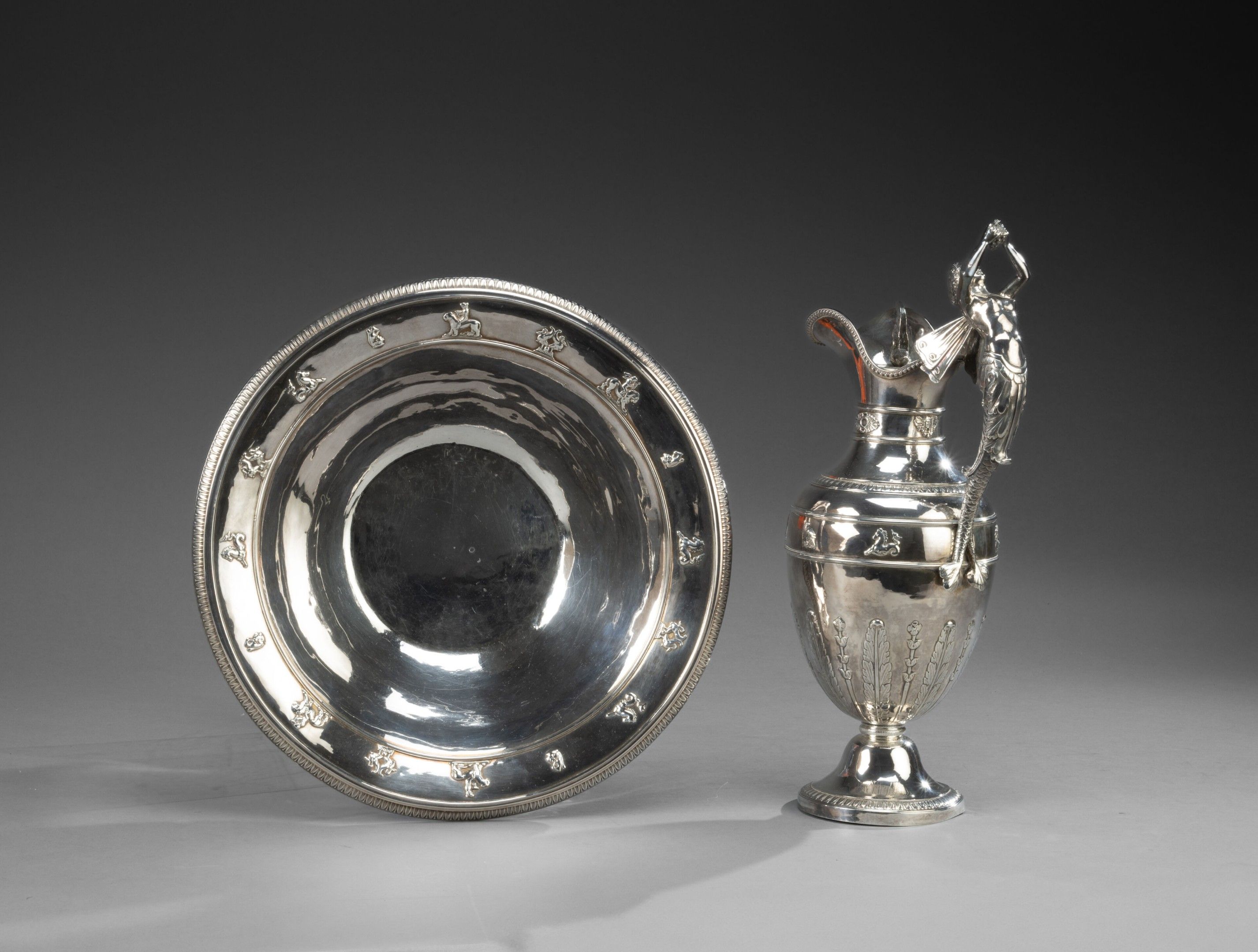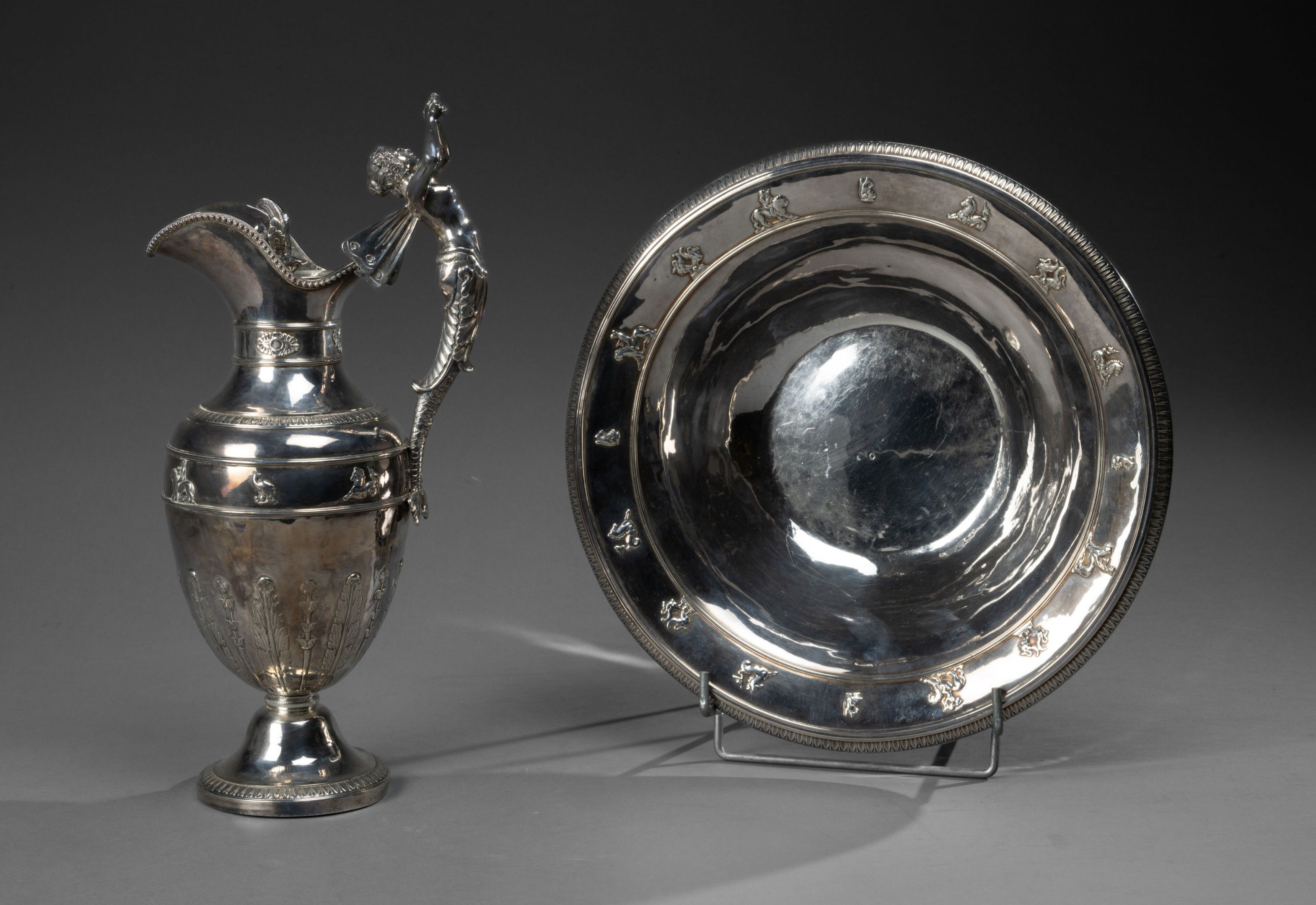 Premium A silver ewer and its basin, the ewer with a pedestal moulde…