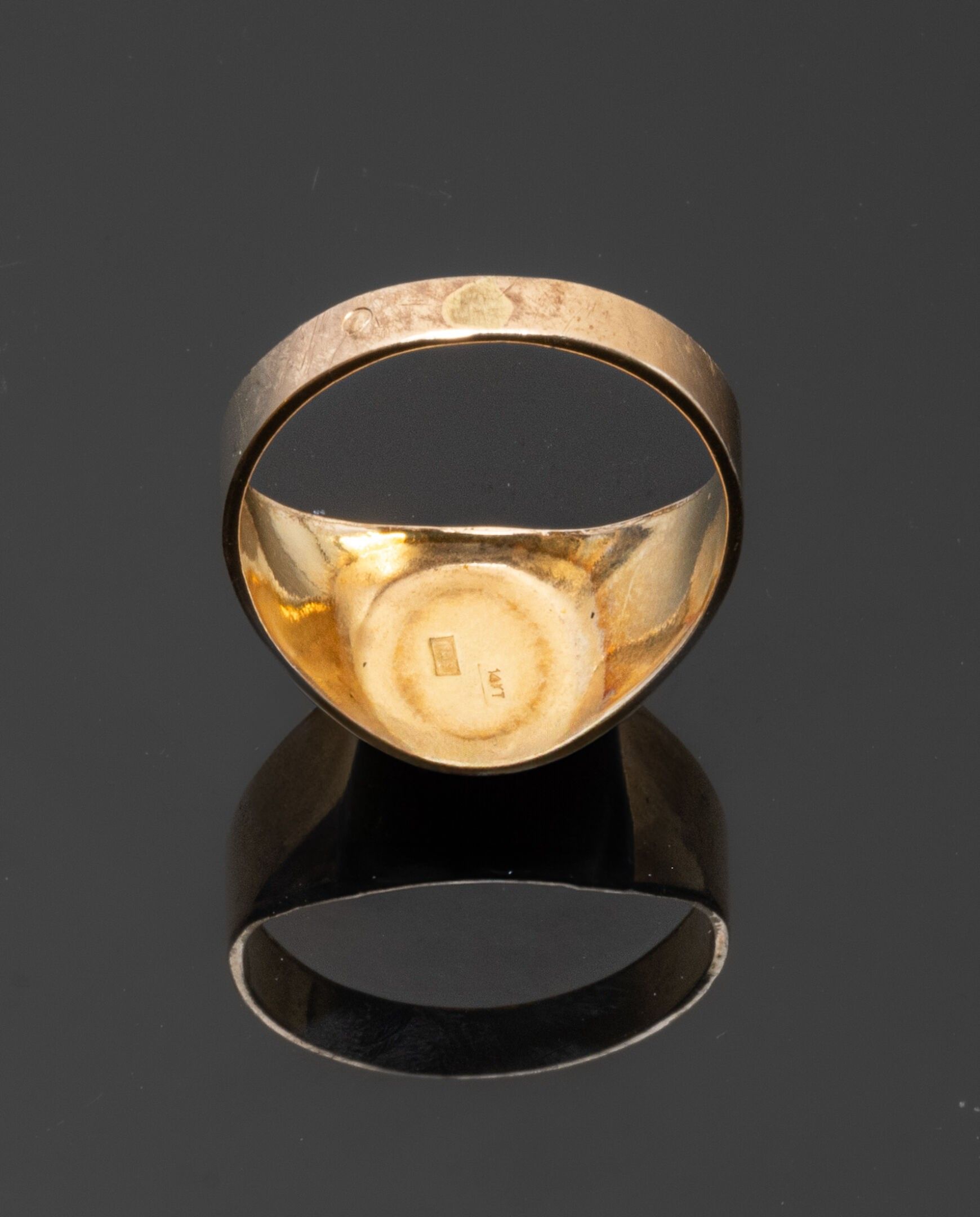 Signet ring in smooth 14K (585°/°°) yellow gold, the oval to…