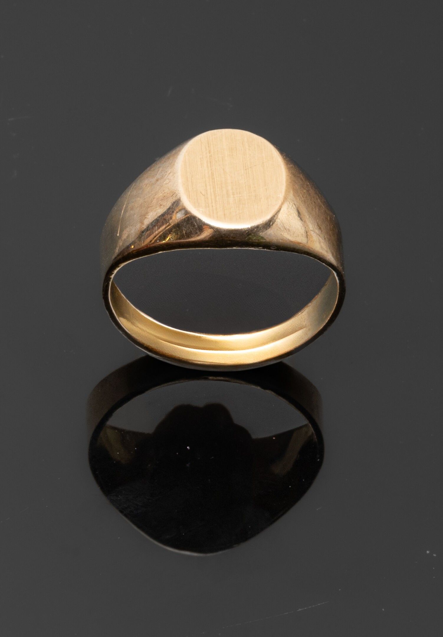 Signet ring in smooth 14K (585°/°°) yellow gold, the oval top unengraved