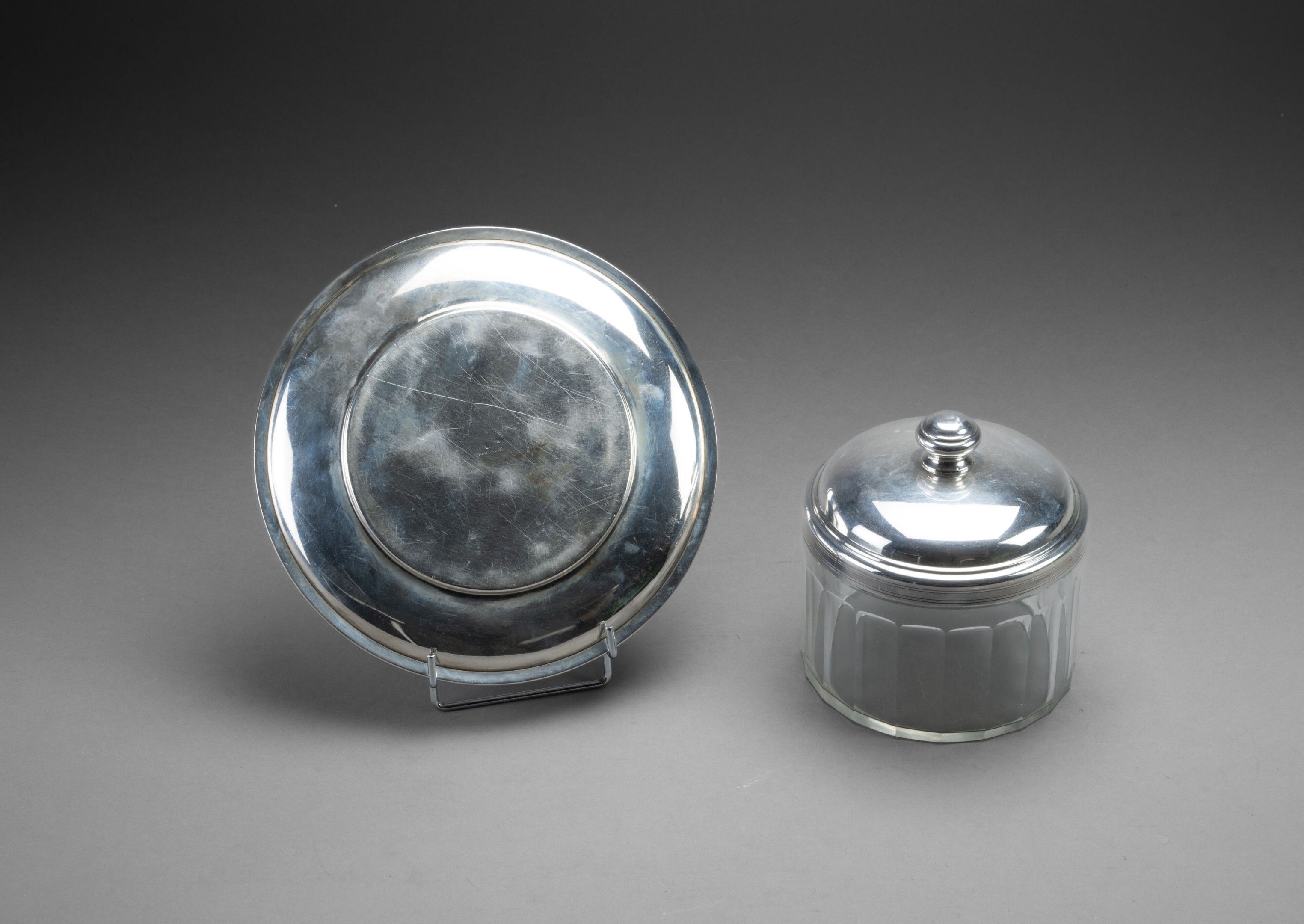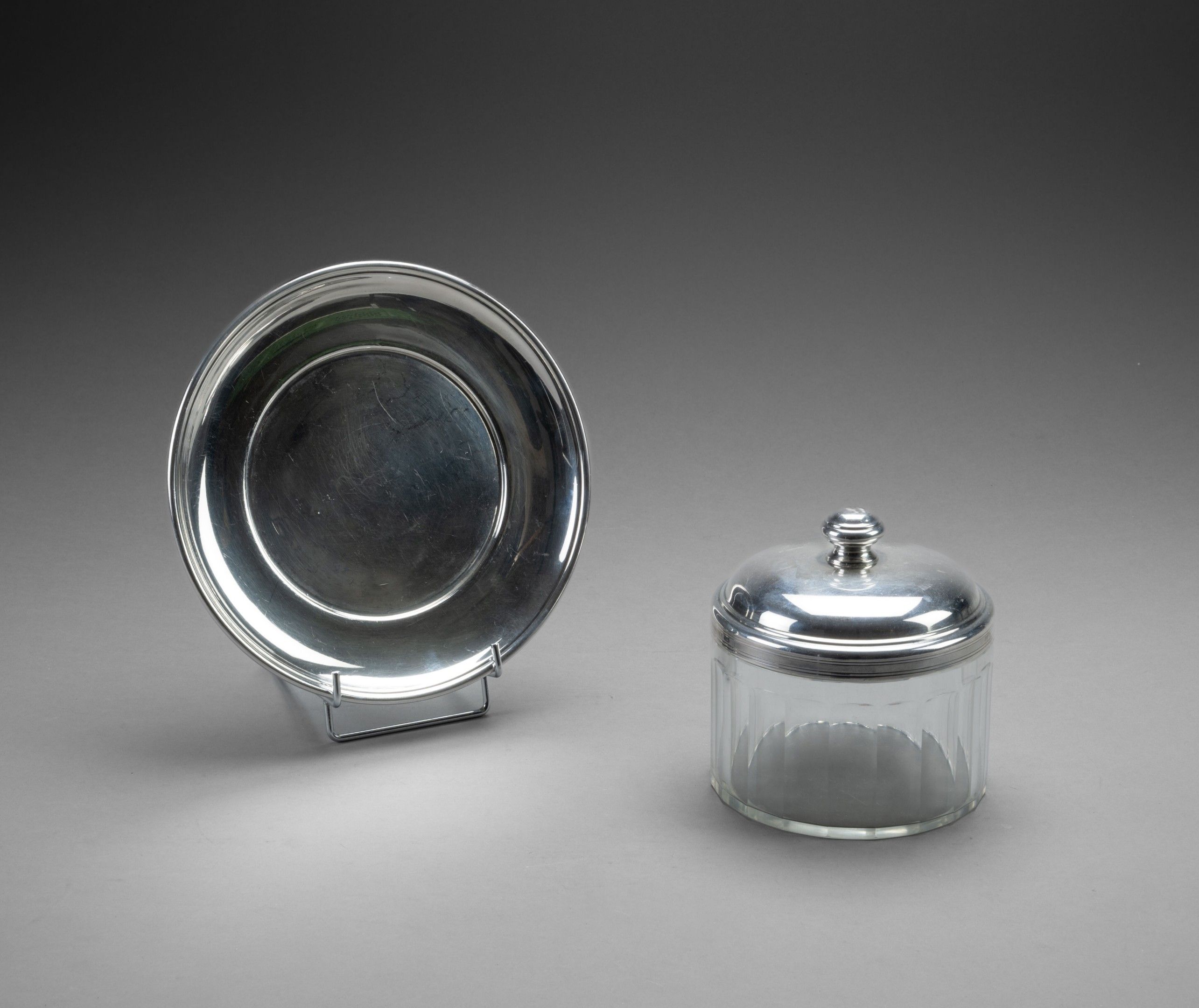 Émile PUIFORCAT Silver and crystal covered pot and its silve…