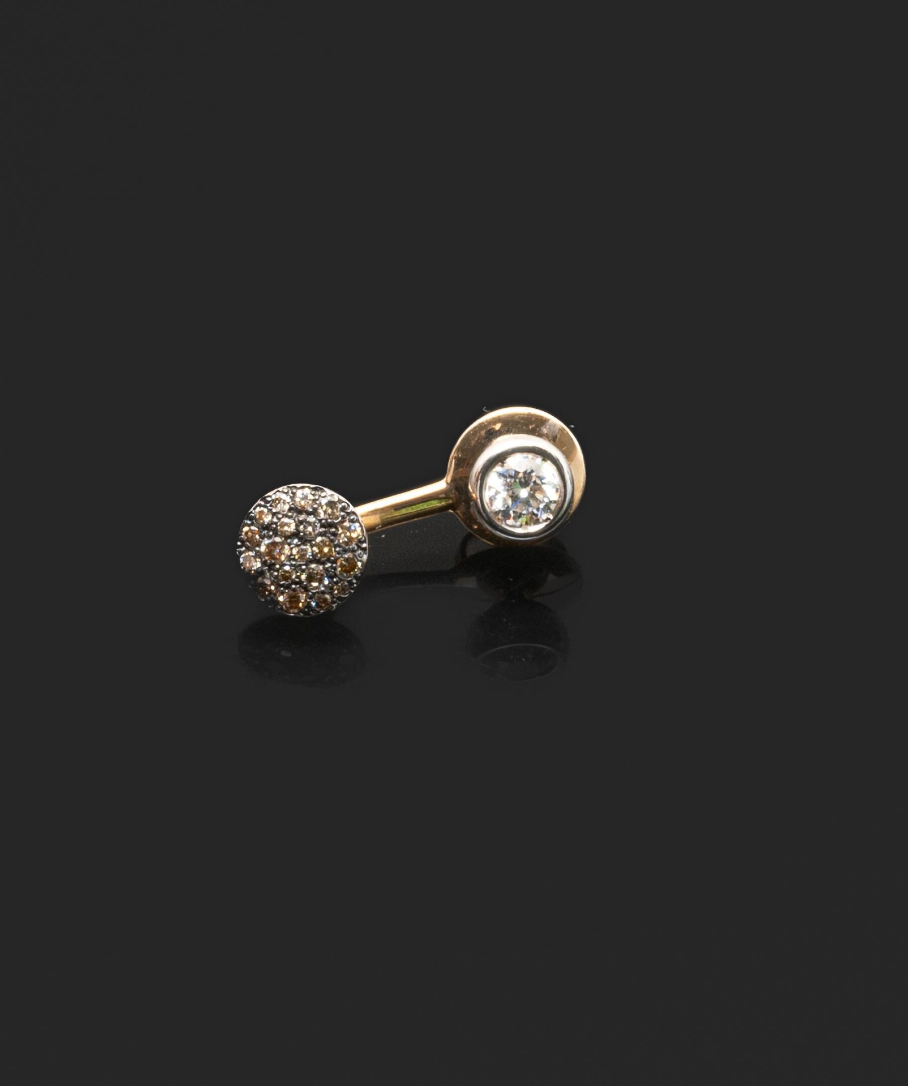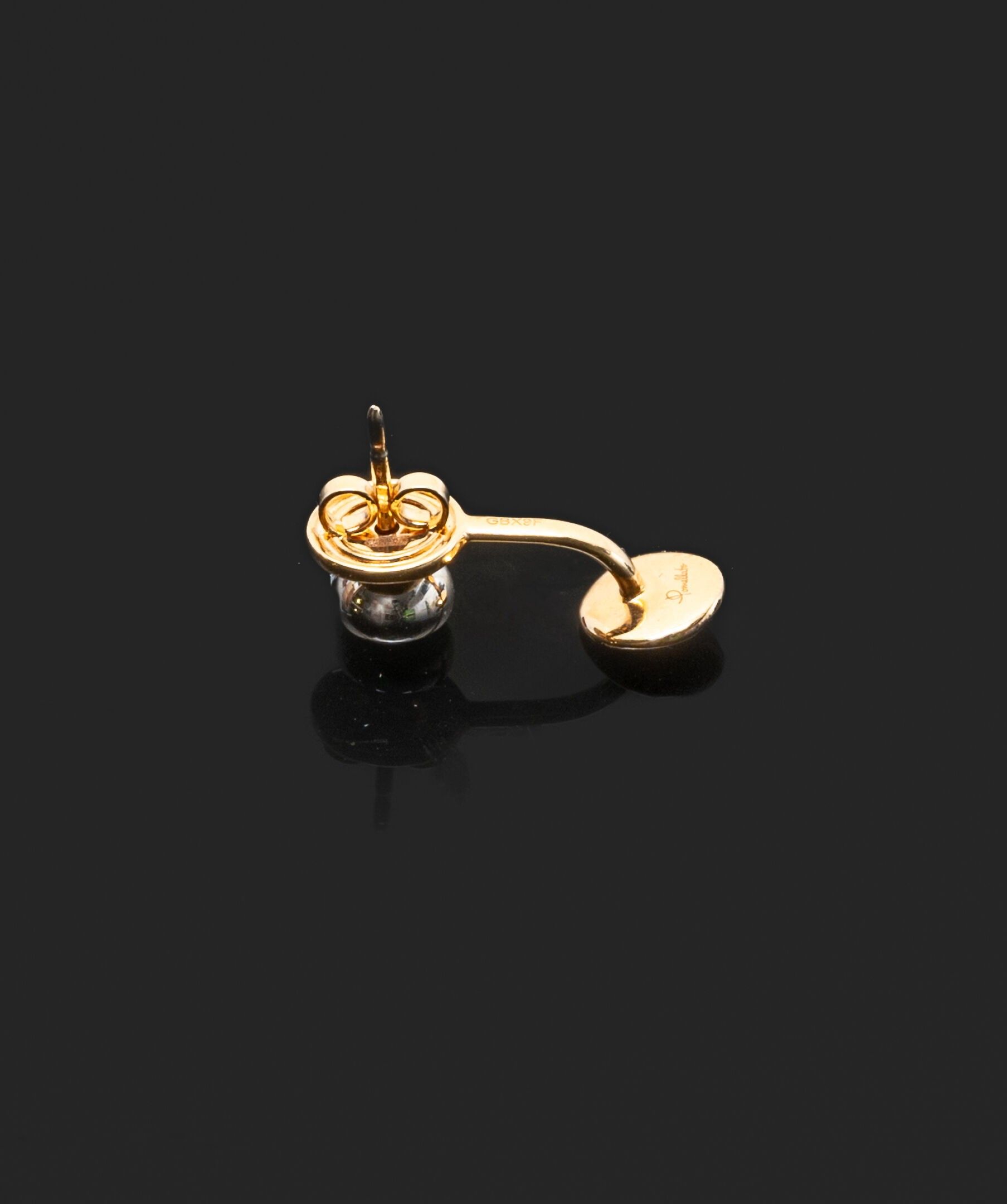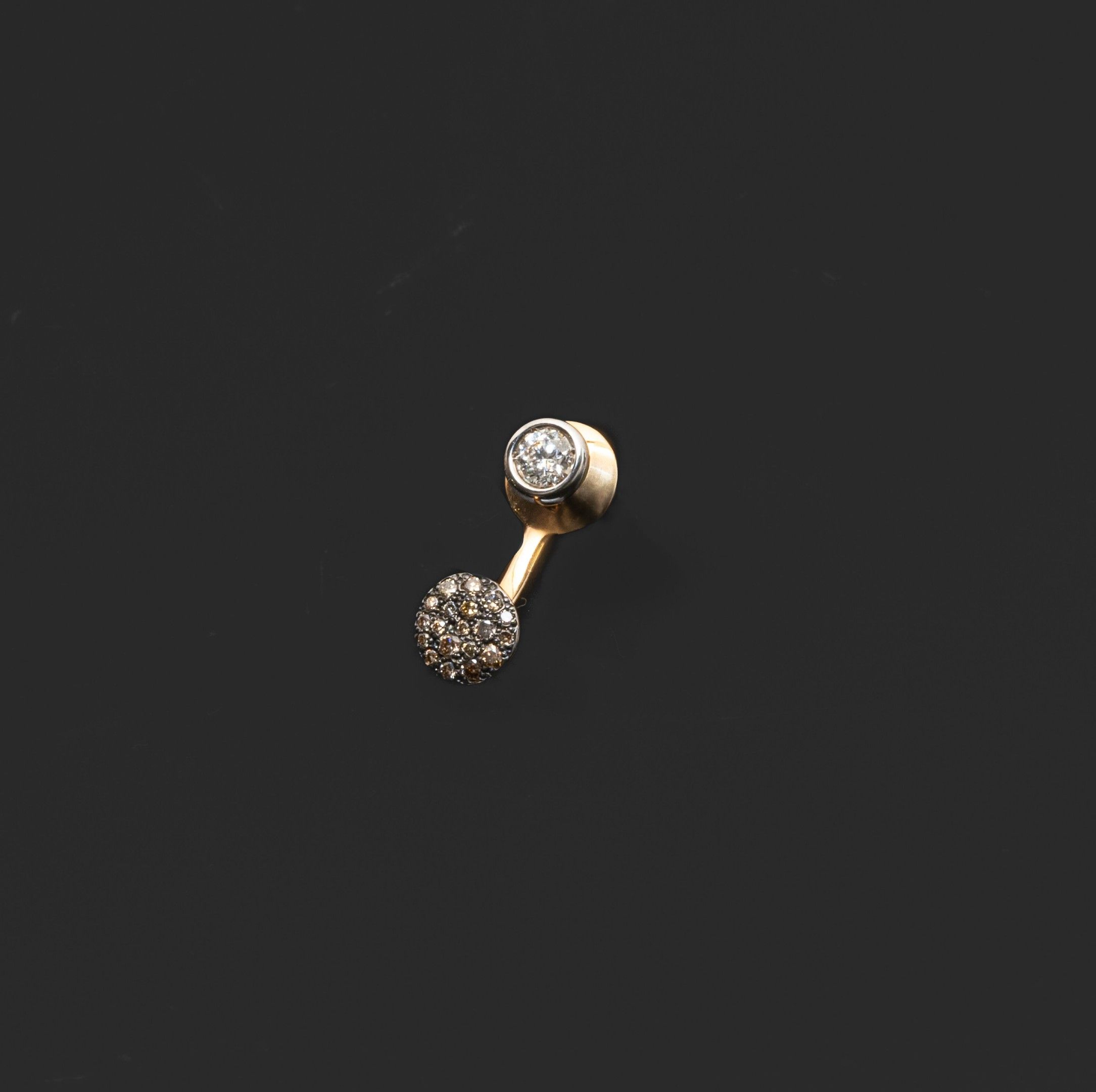 Half pair of earrings in two-tone 18K (750°/°°) gold, "Sabbia" collection, consisting of a stud set with a brilliant-cut diamond measuring approximately 0.30 ct in closed setting, the clasp holding a pastille paved with brown brilliant-cut diamonds. Signed and numbered