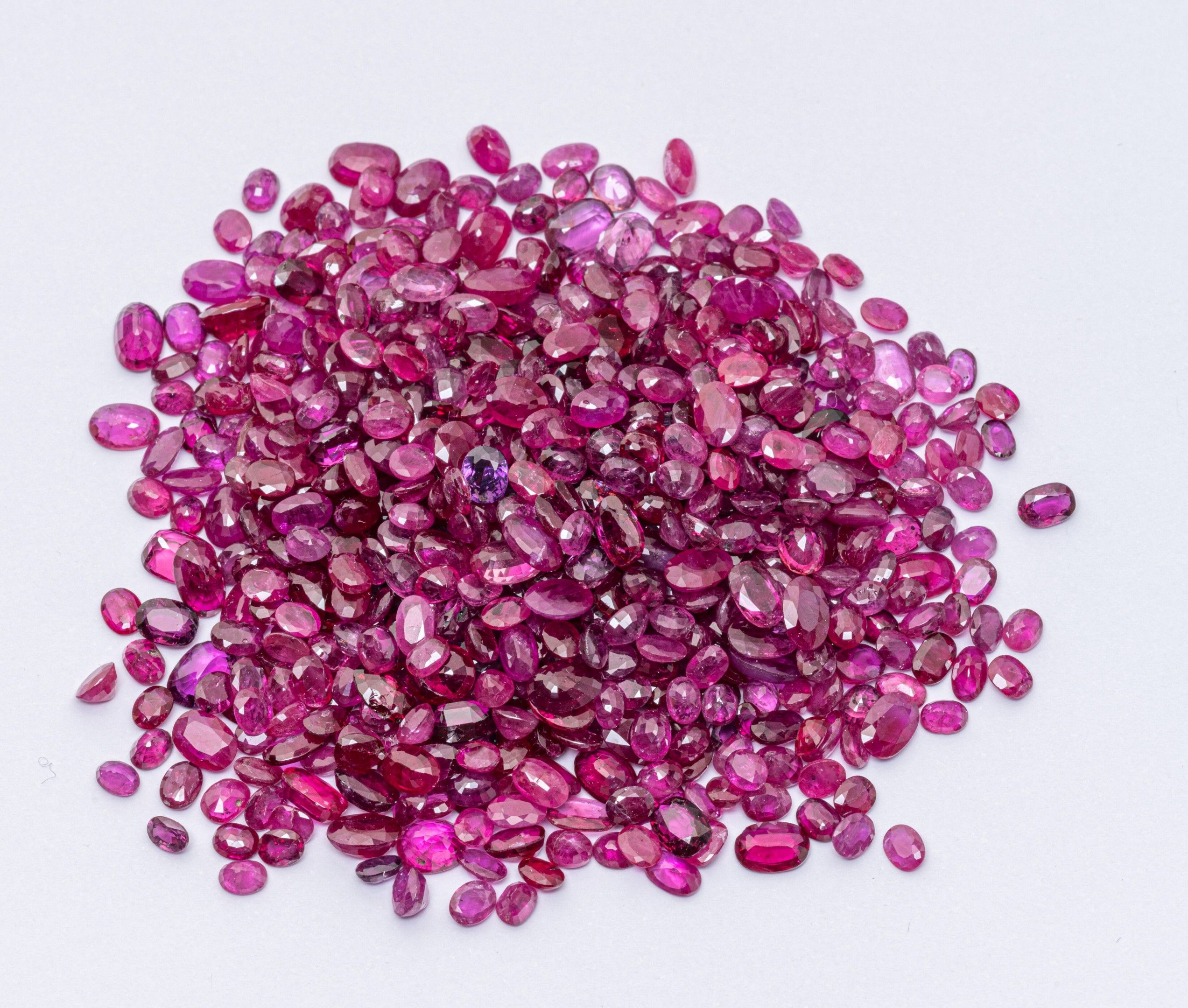Loose stones, possible chips and accidents, some treated or synthetic. A few red stones may have been overlooked during sorting.