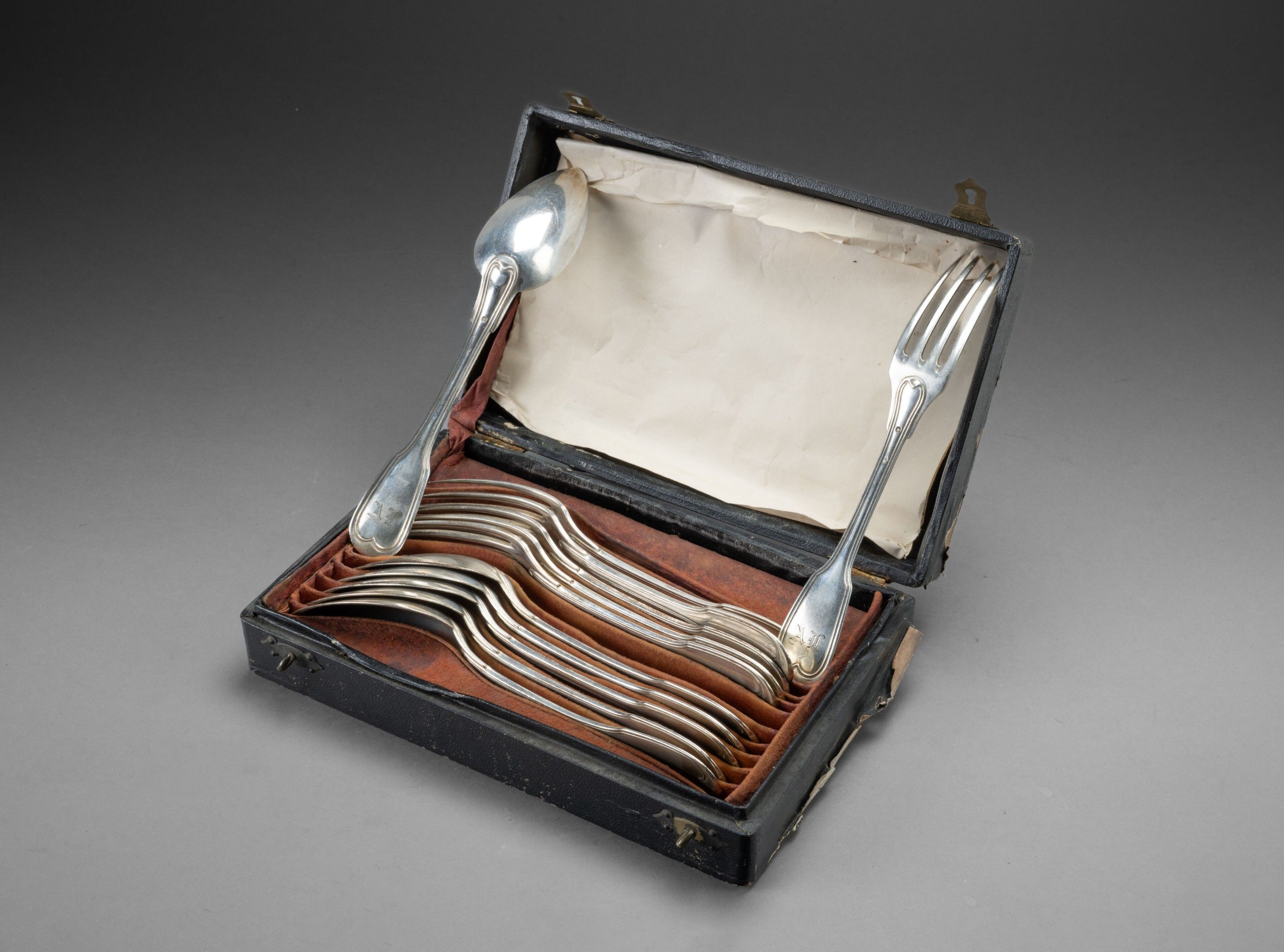 Six large pieces of silver cutlery, filets on the shoulders,…