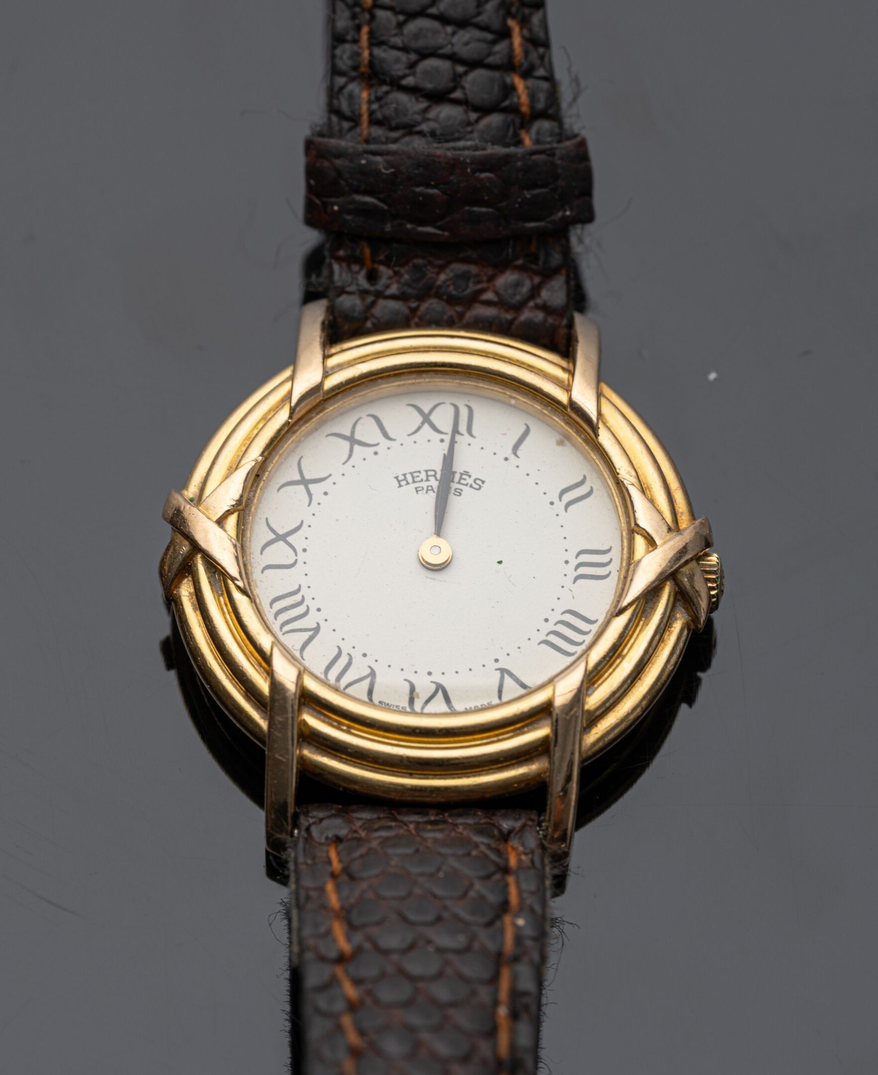 HERMÈS Watch in 18K (750°/°°) yellow gold, "Ruban" collectio…