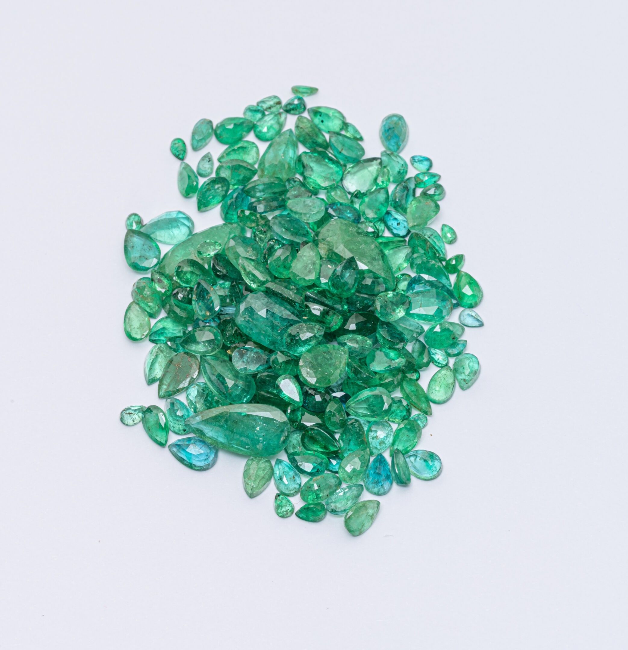 Lot of unmounted pear-cut emeralds on paper, together weighi…