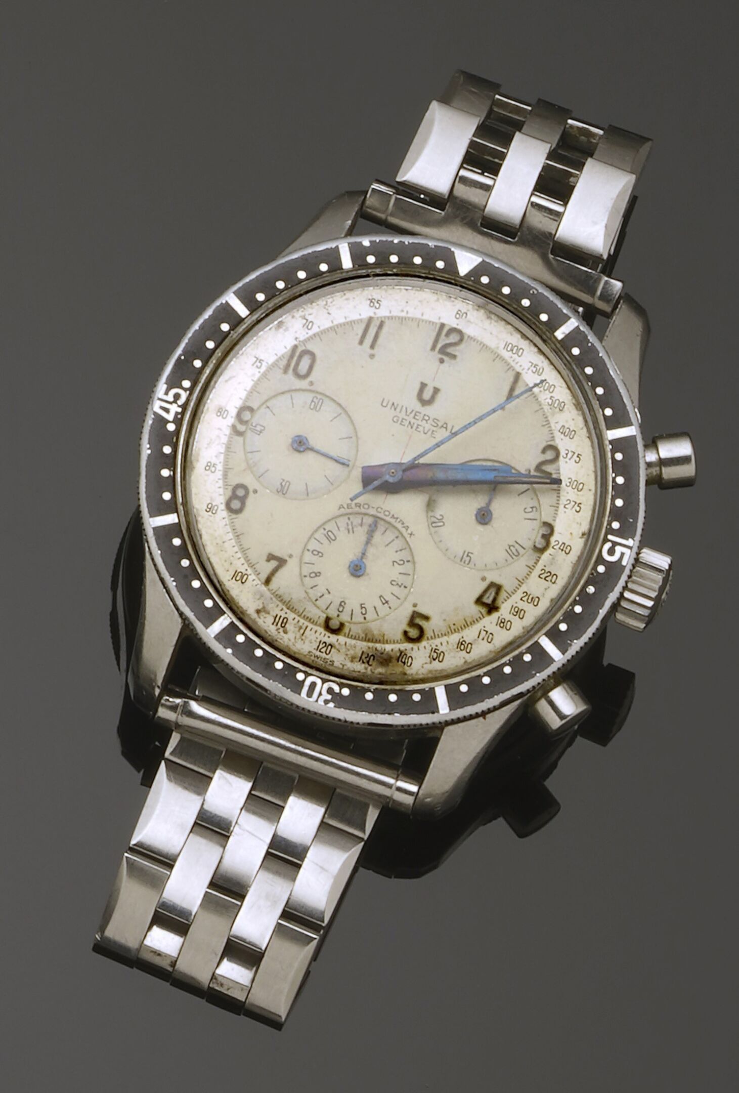 UNIVERSAL GENEVA Steel chronograph watch, "Aero-Compax" coll…
