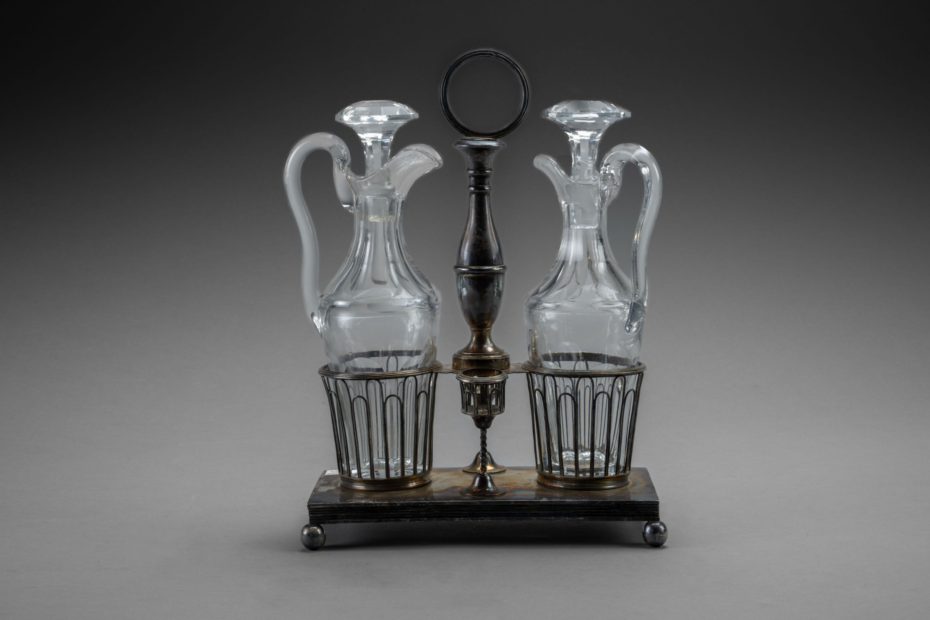 Silver tableware with arches, consisting of an oil and vineg…