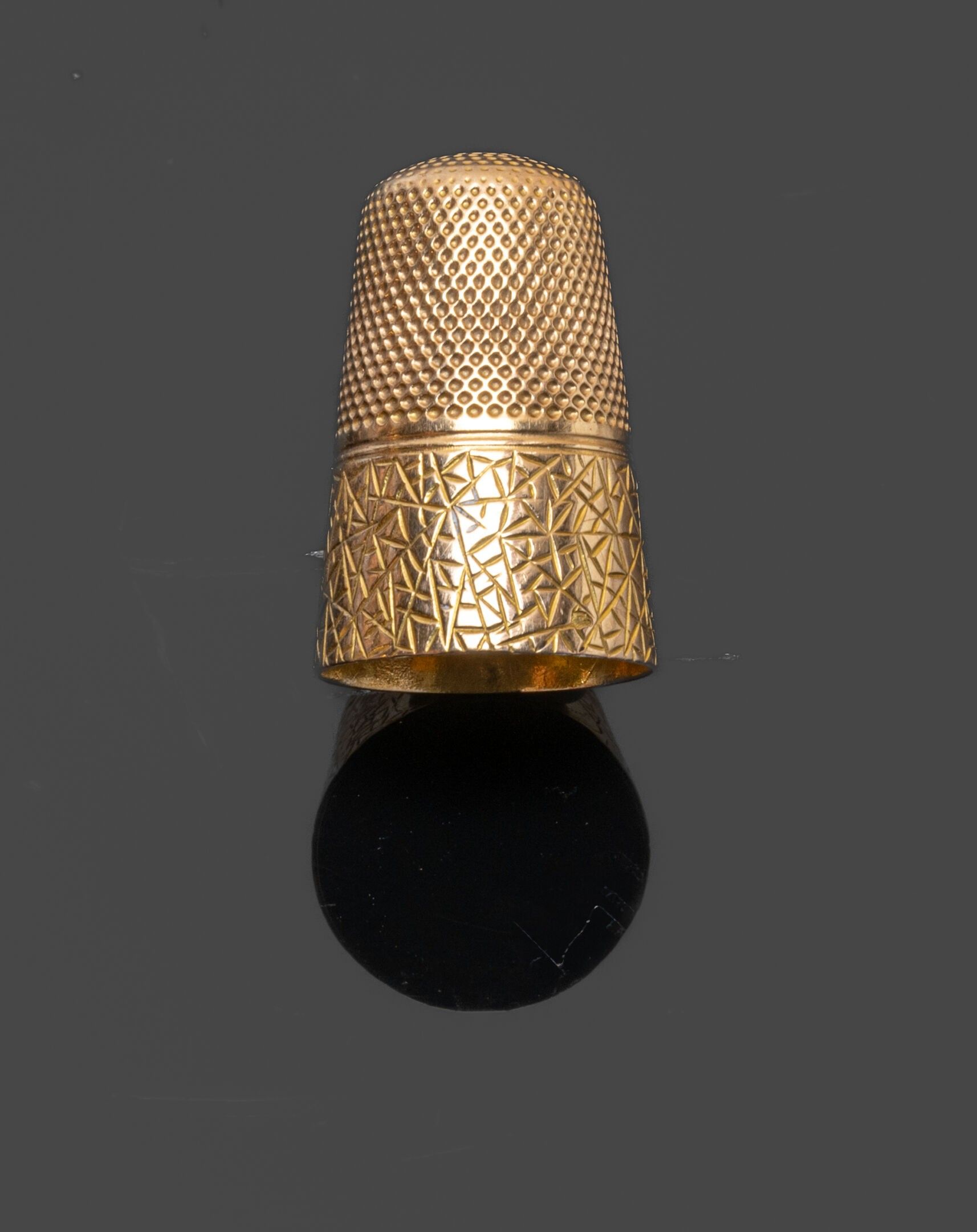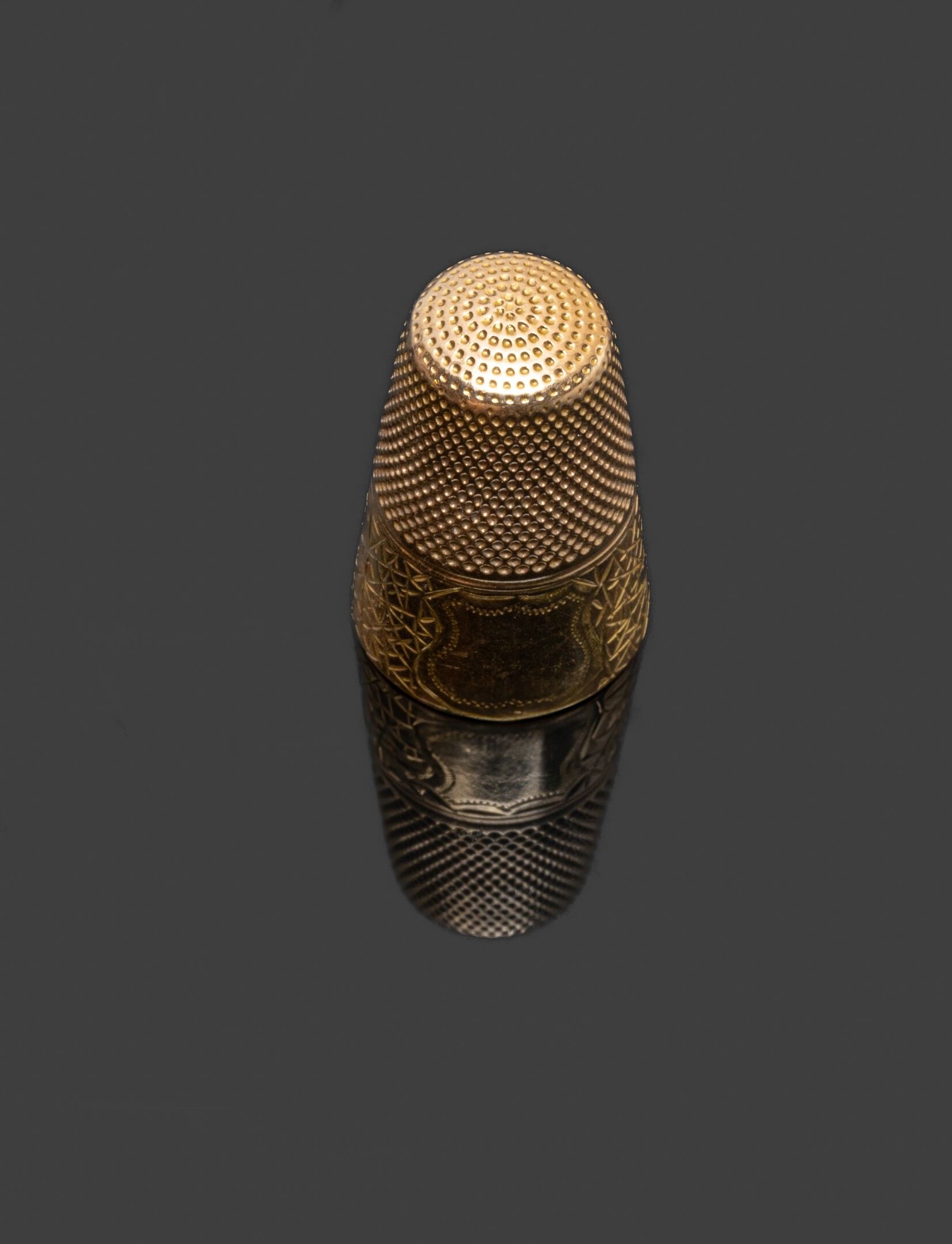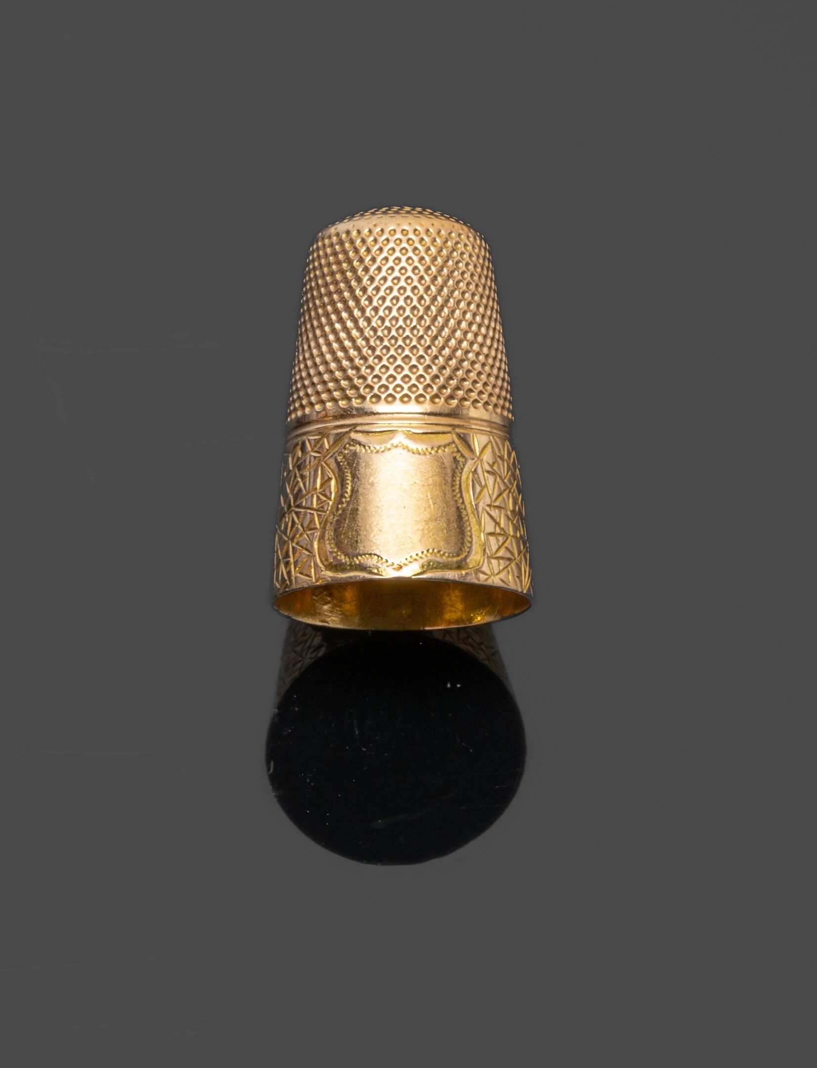 18K (750°/°°) yellow gold thimble with finely chased decoration embellished with a virgin escutcheon