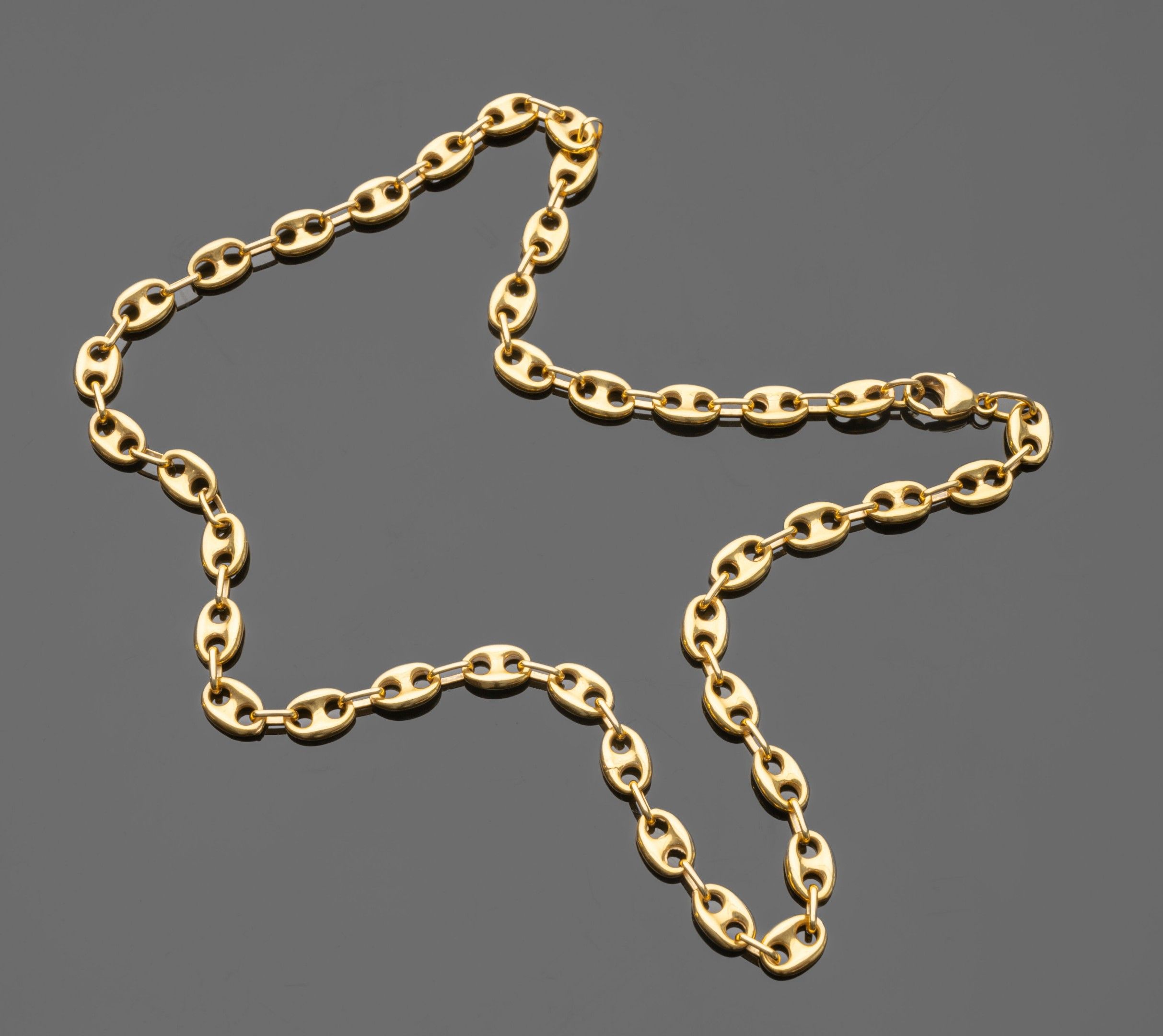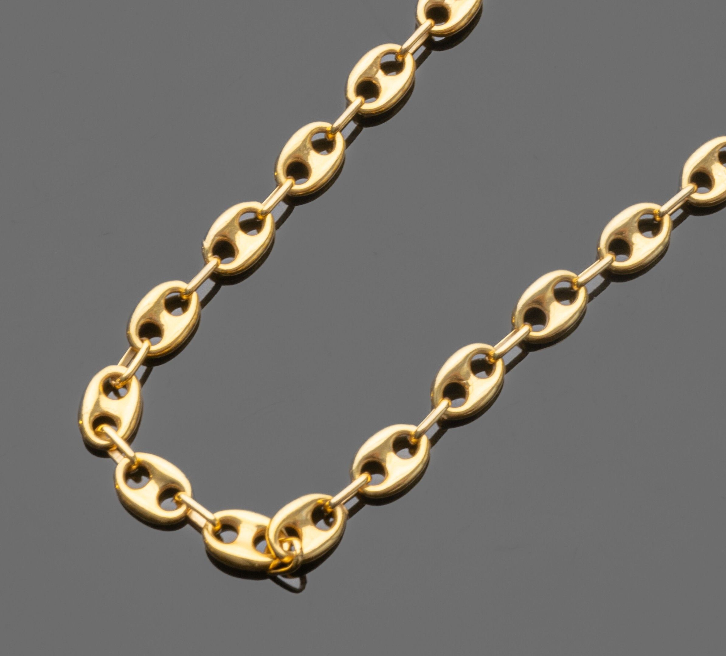 18K (750°/°°) yellow gold chain with "coffee bean" links alternating with cartouche links