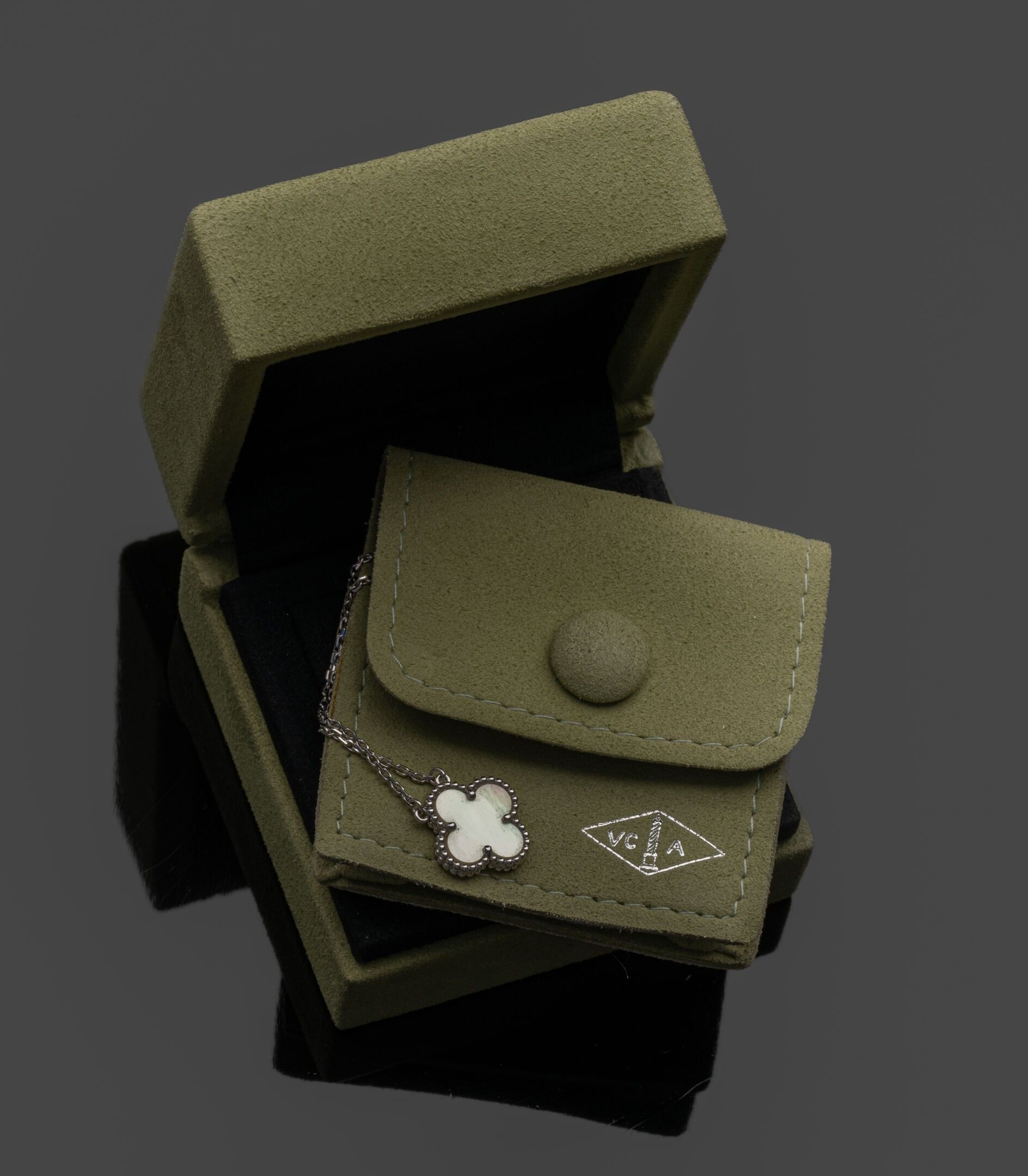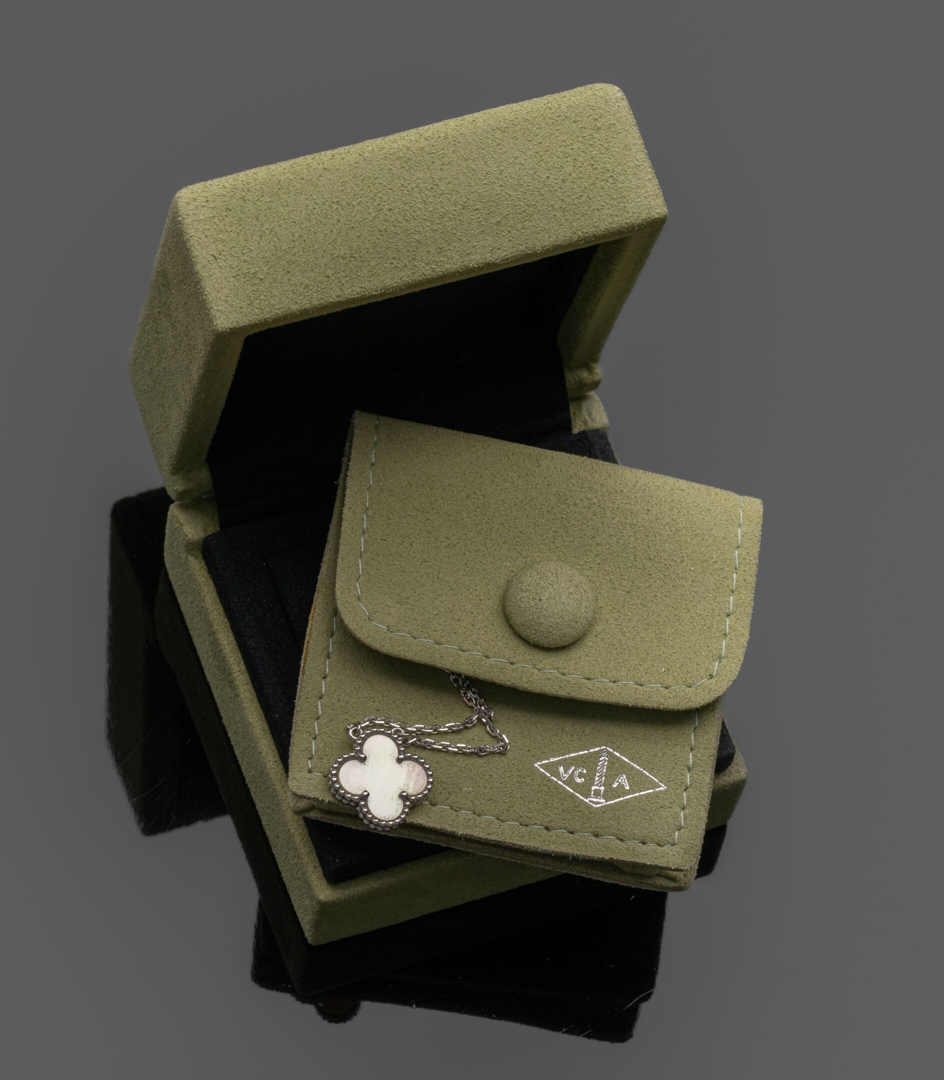 In its jewellery box, with its over-box and travel pouch, we enclose copies of its VCA purchase certificate and purchase invoice, dated Sept 2019.