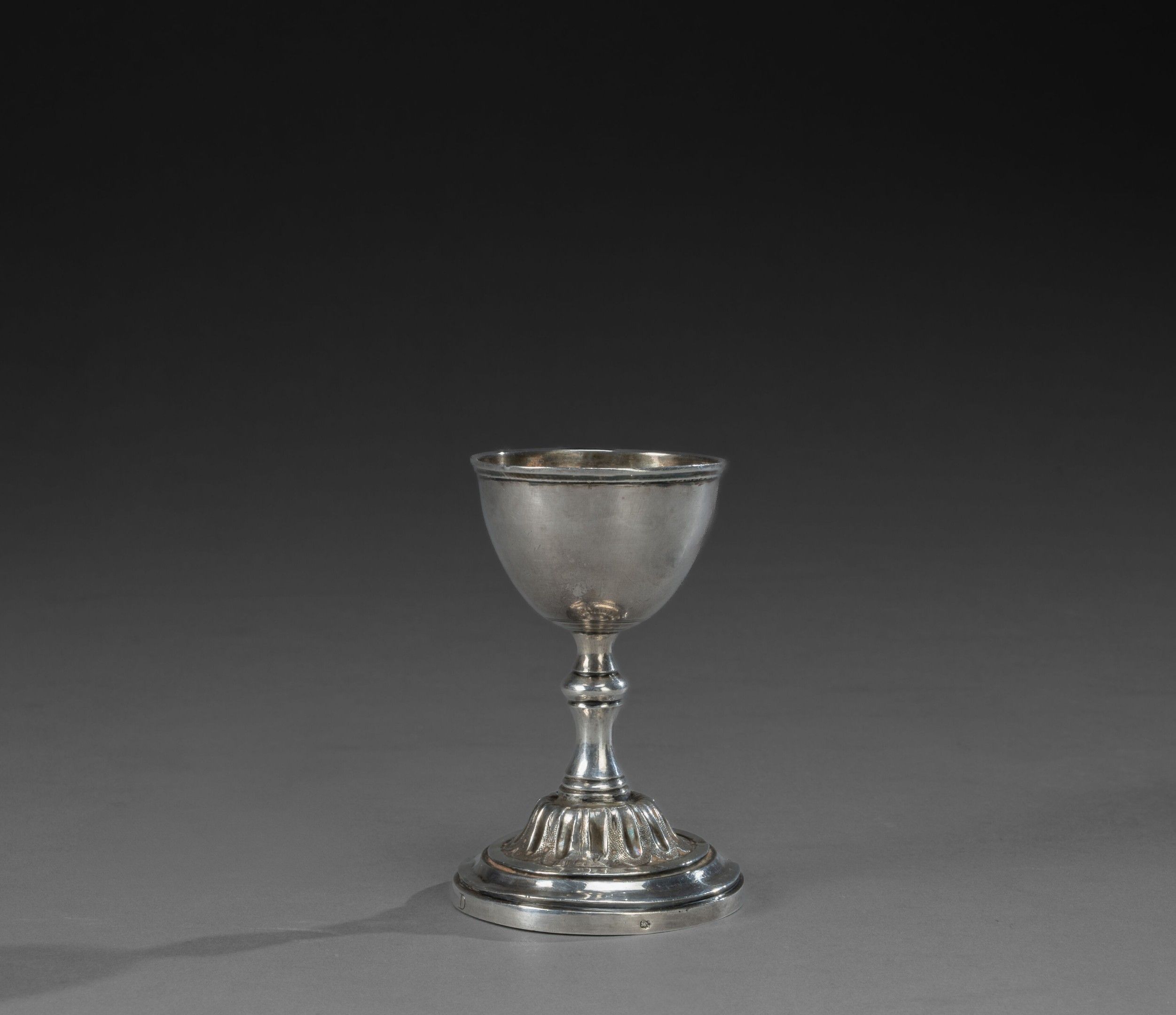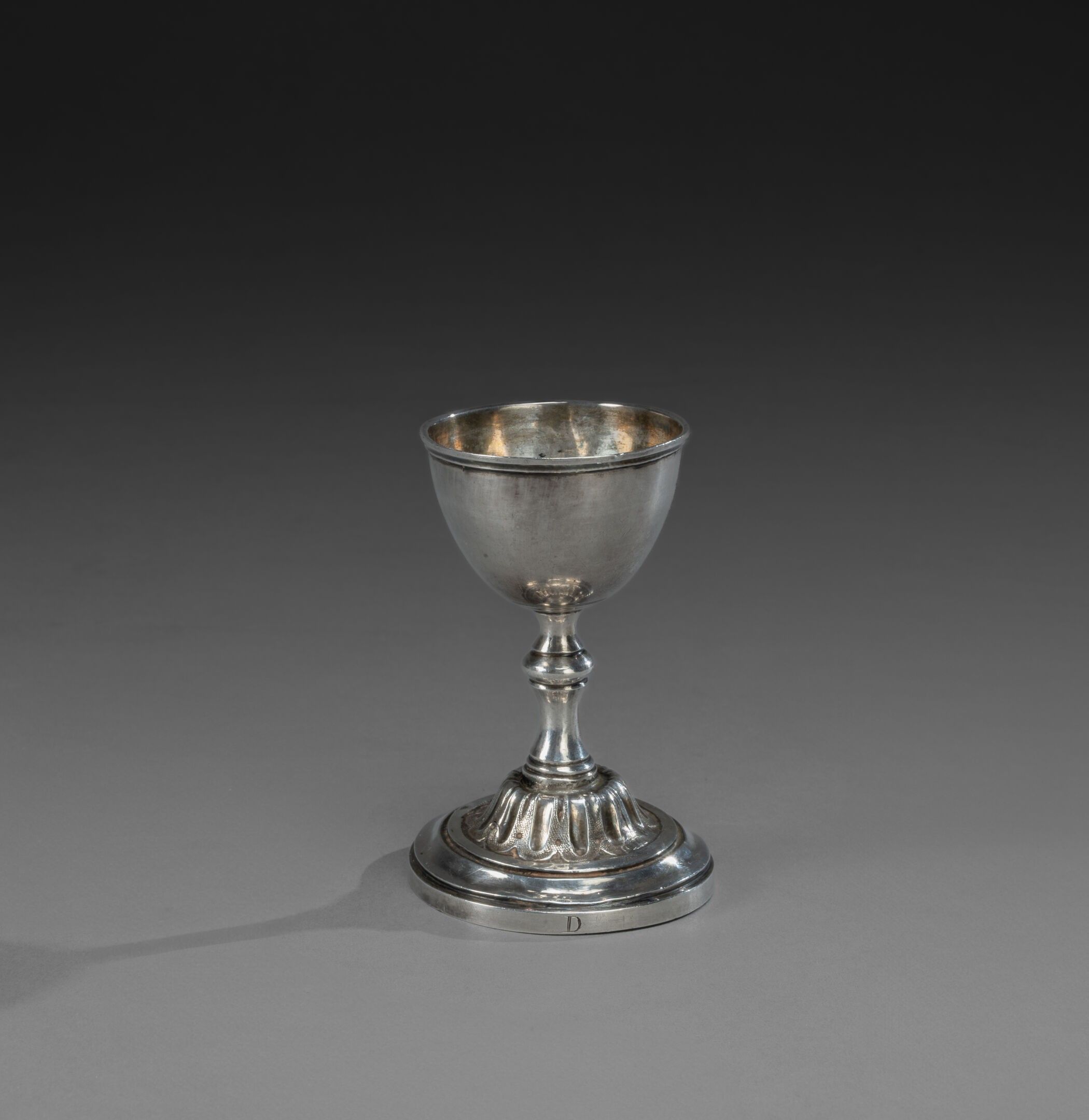 Rare plain silver eggcup with baluster foot and fluted douci…
