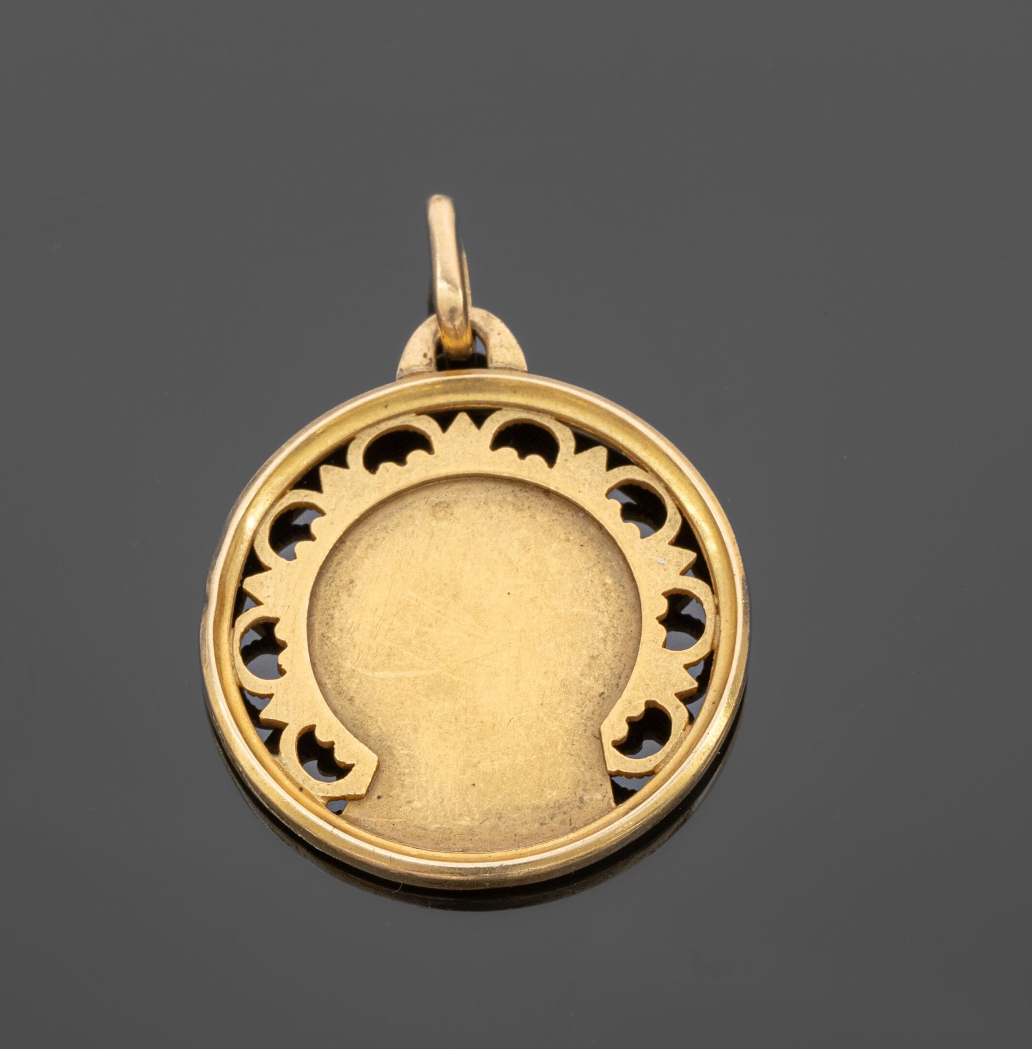 Round religious medal in 18K (750°/°°) yellow gold depicting…