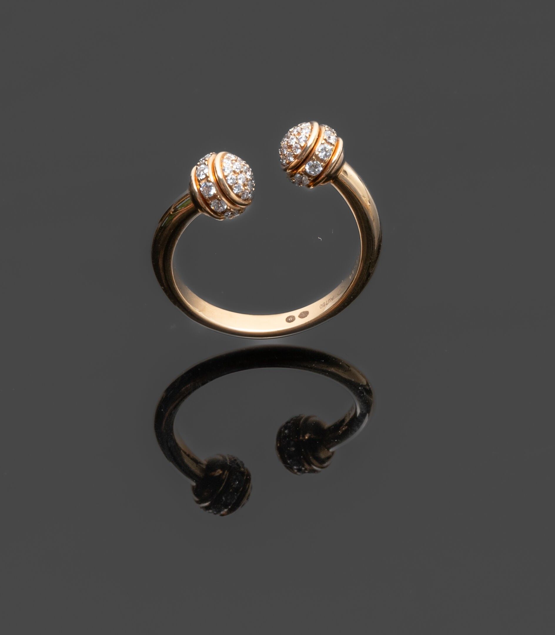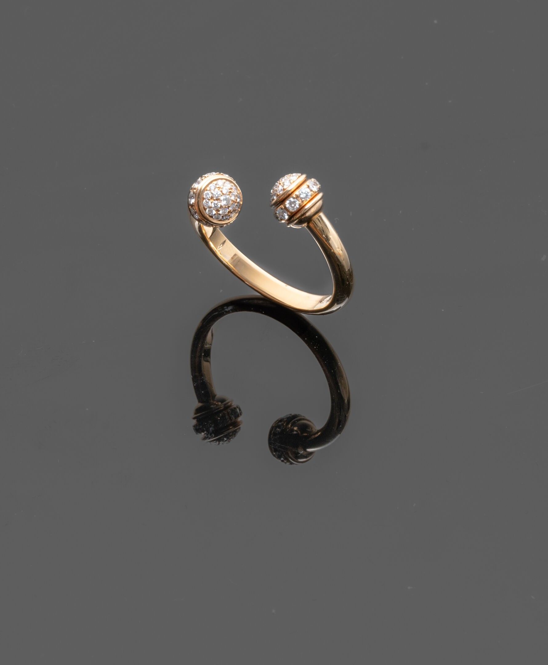 Open link ring in 18K (750°/°°) yellow gold, "Possession" collection, the ends forming rotating ring motifs set with lines of brilliant-cut diamonds and diamond domes. Signed and numbered.
