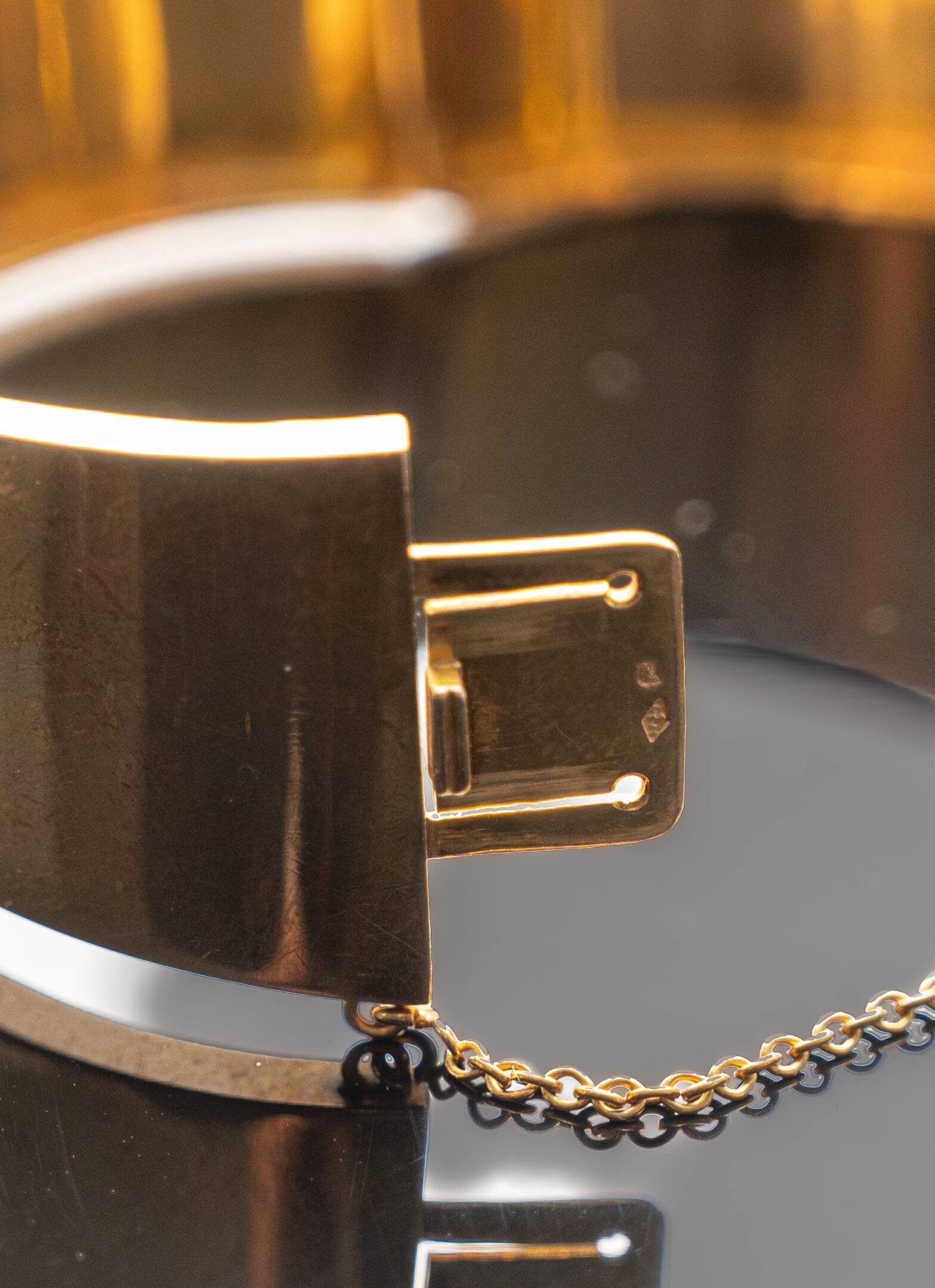 Antique 18K (750°/°°) smooth yellow gold flat opening bangle…