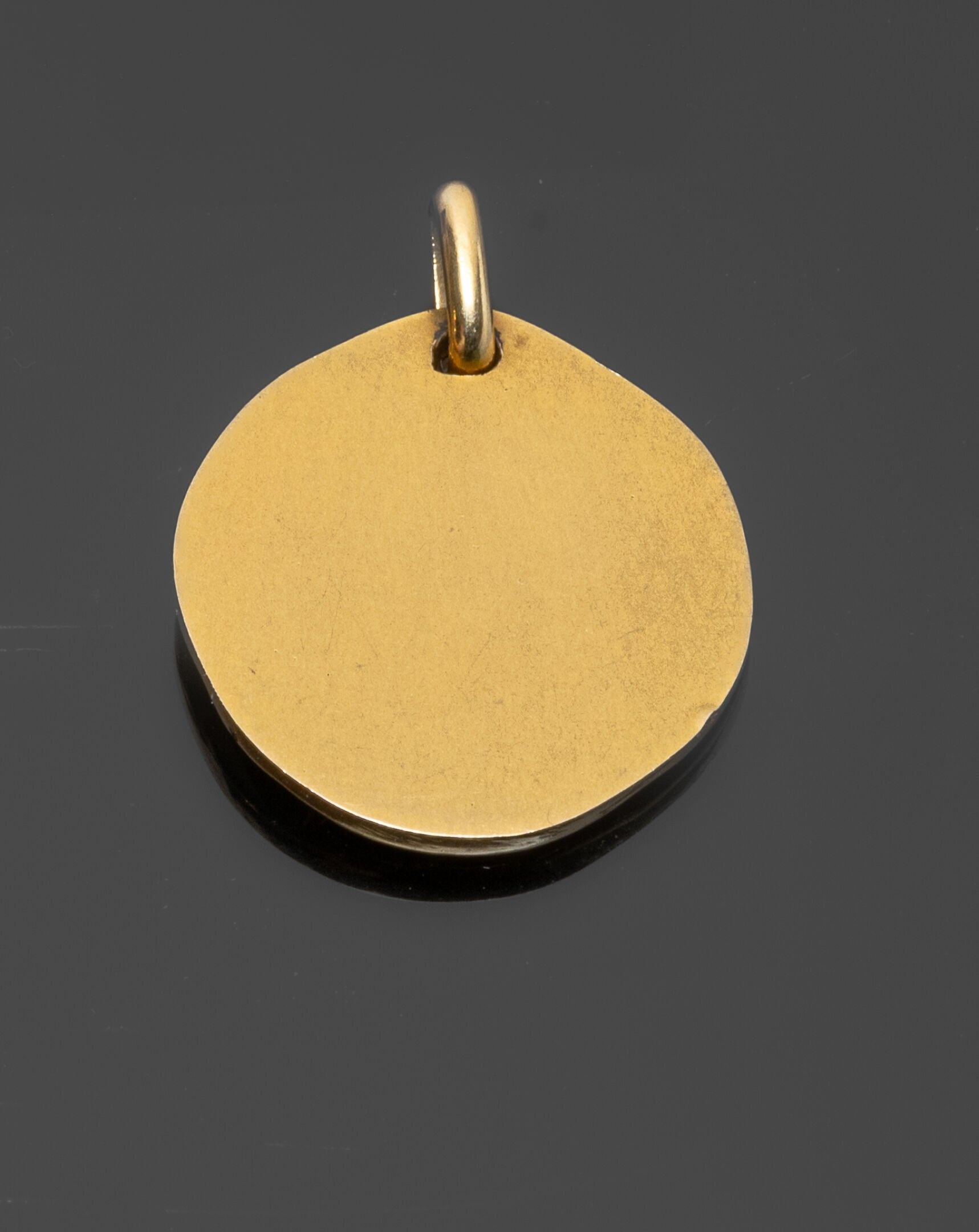 Round religious medal in 18K (750°/°°) yellow gold depicting the Virgin Mary, the back unengraved