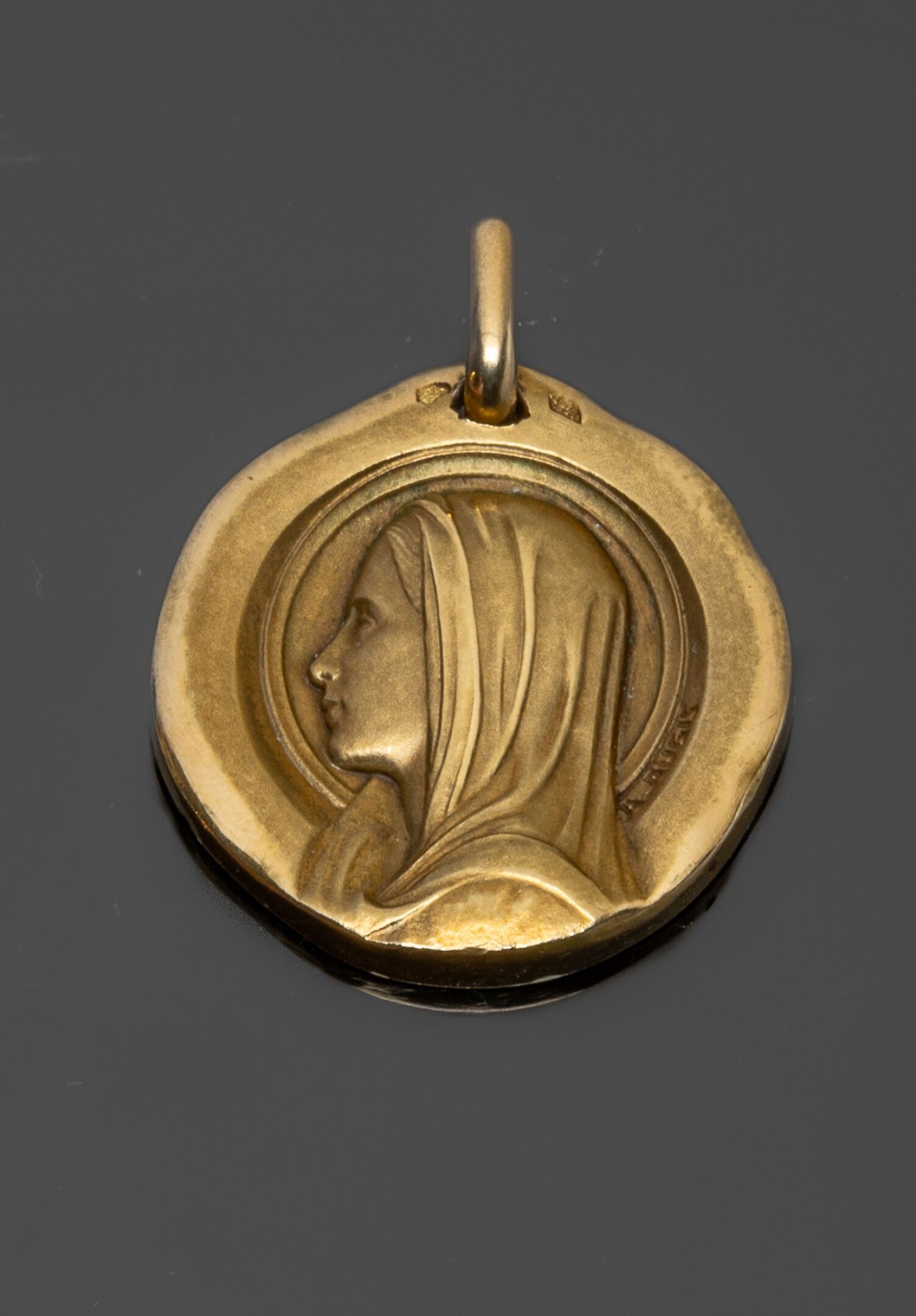 A. AUGIS Round religious medal in 18K (750°/°°) yellow gold …