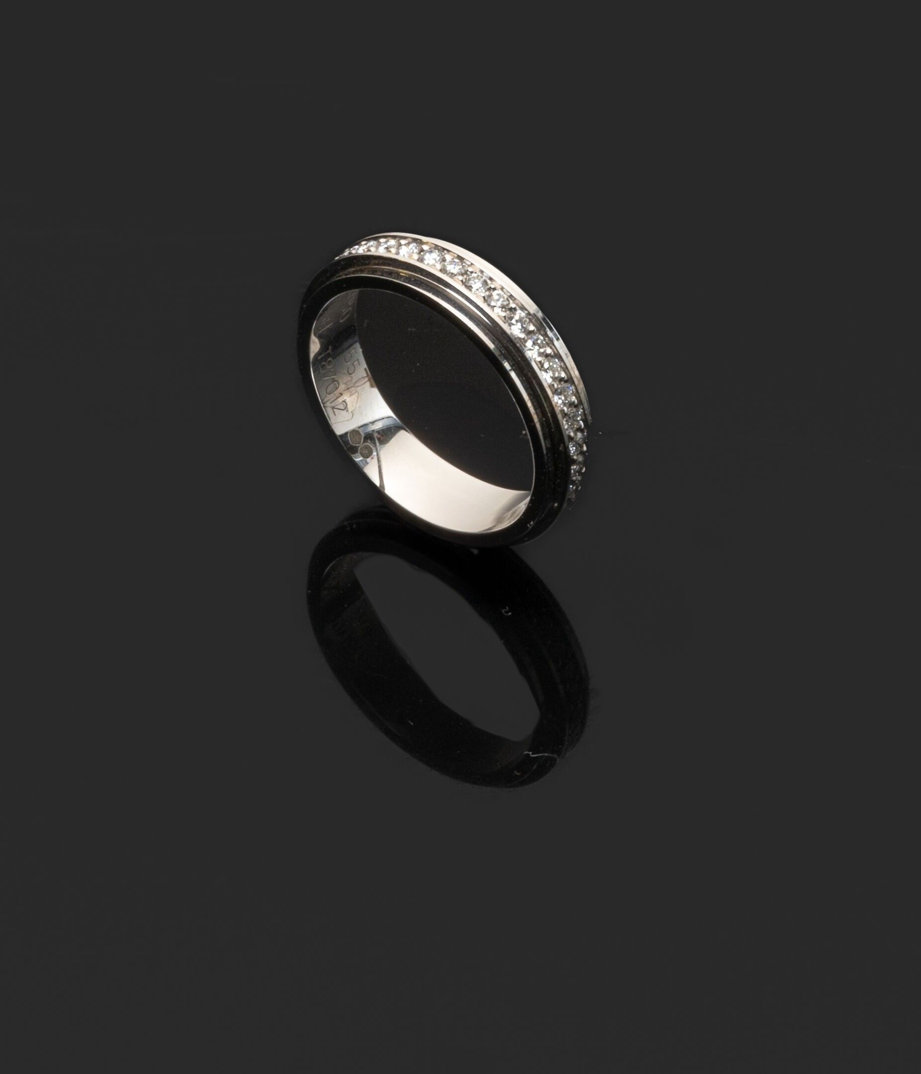 Wedding ring in 18K (750°/°°) yellow gold, "Possession" collection, the rotating ring set with a line of brilliant-cut diamonds. Signed and numbered