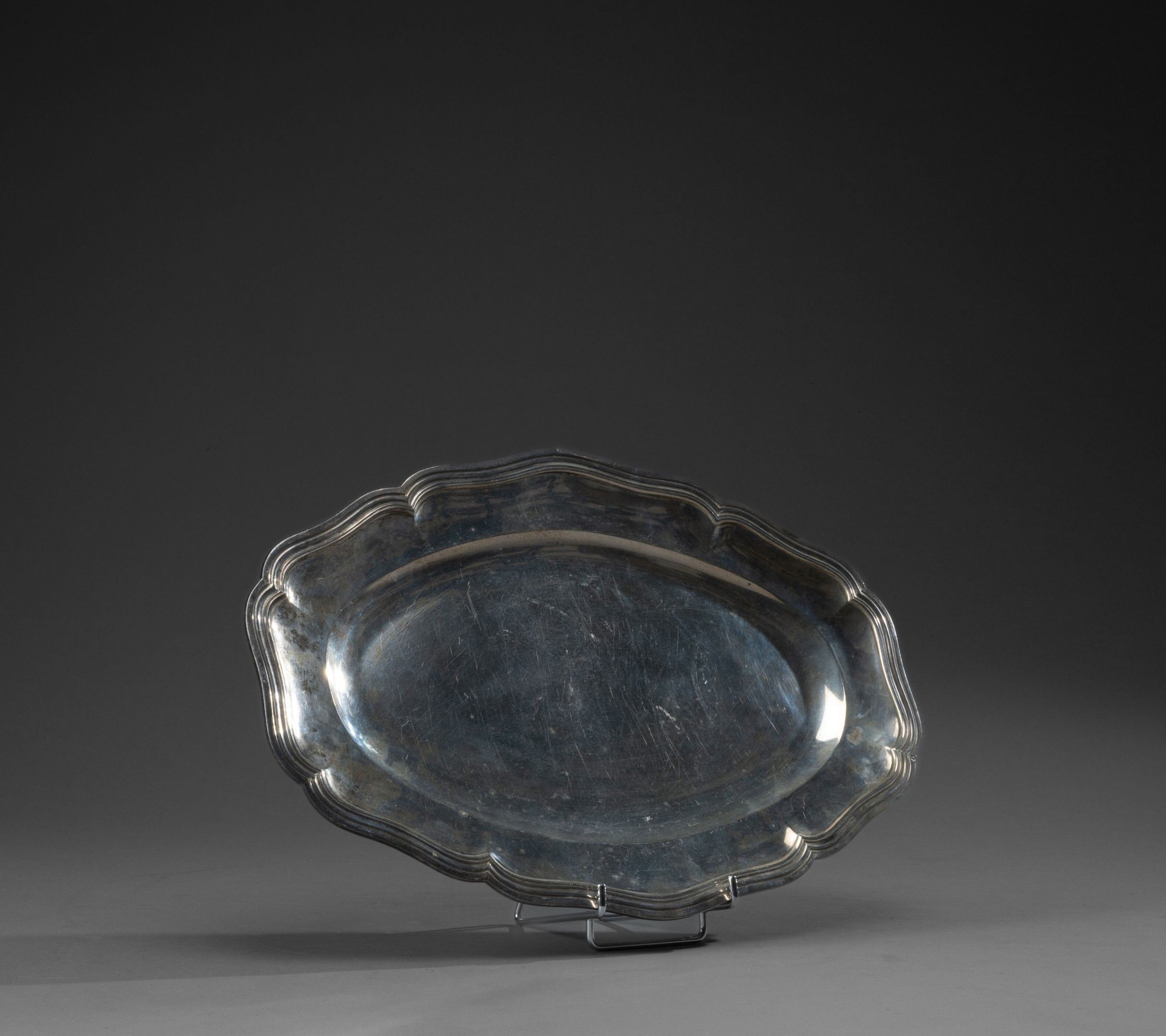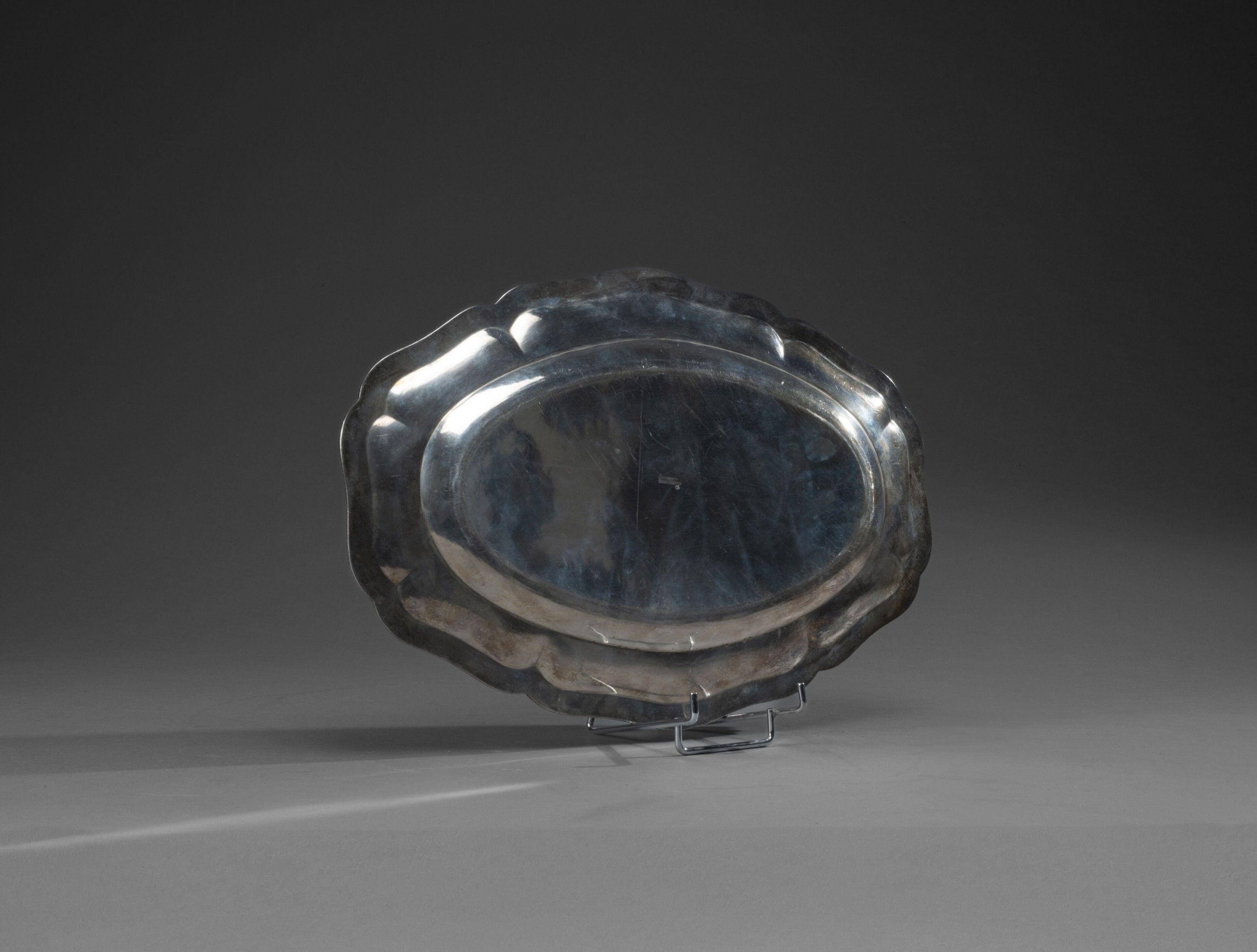 Plain silver oval dish with eight contours moulded with fillets, slightly concave sides.