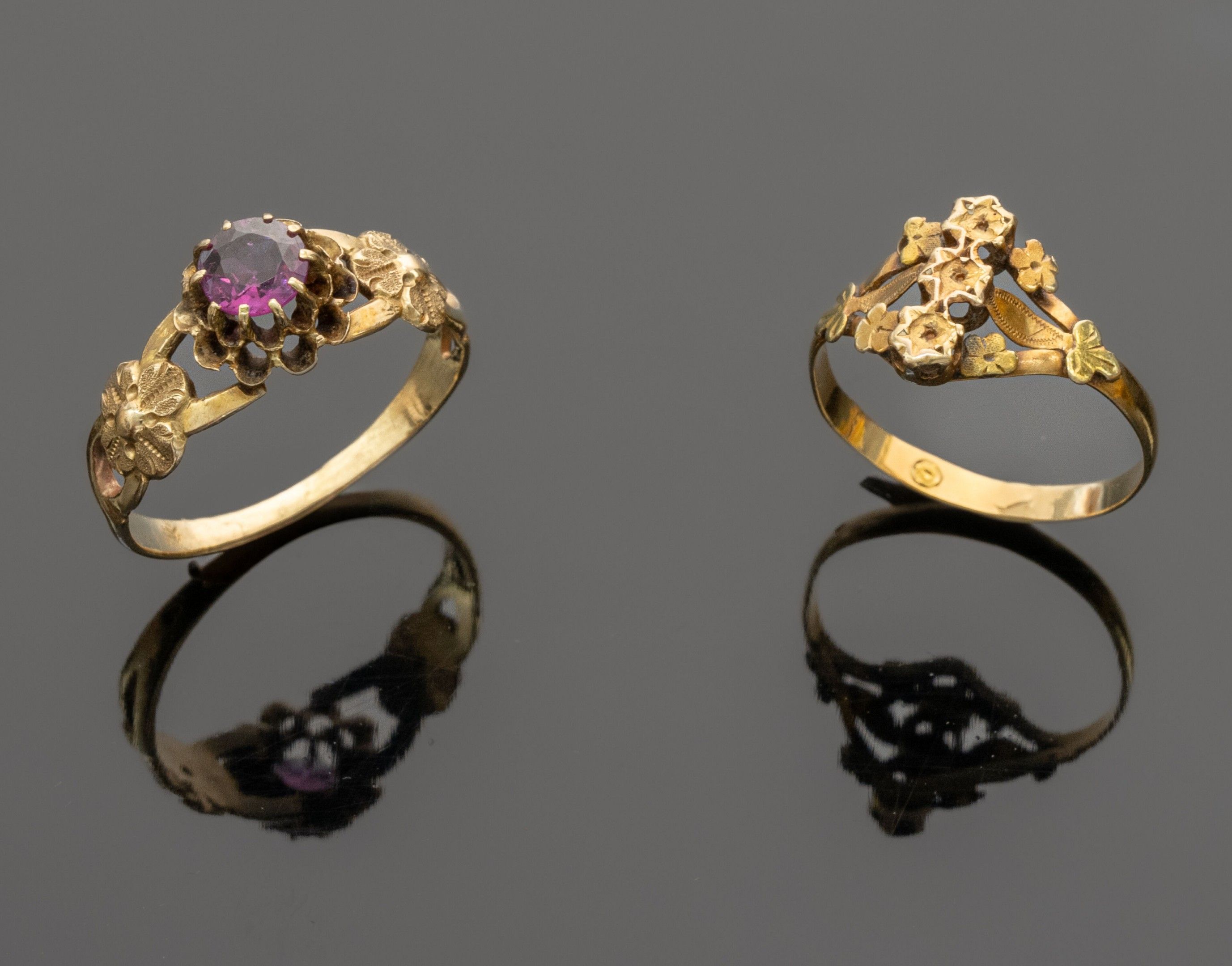 Lot in 18K (750°/°°) gold comprising two antique rings :