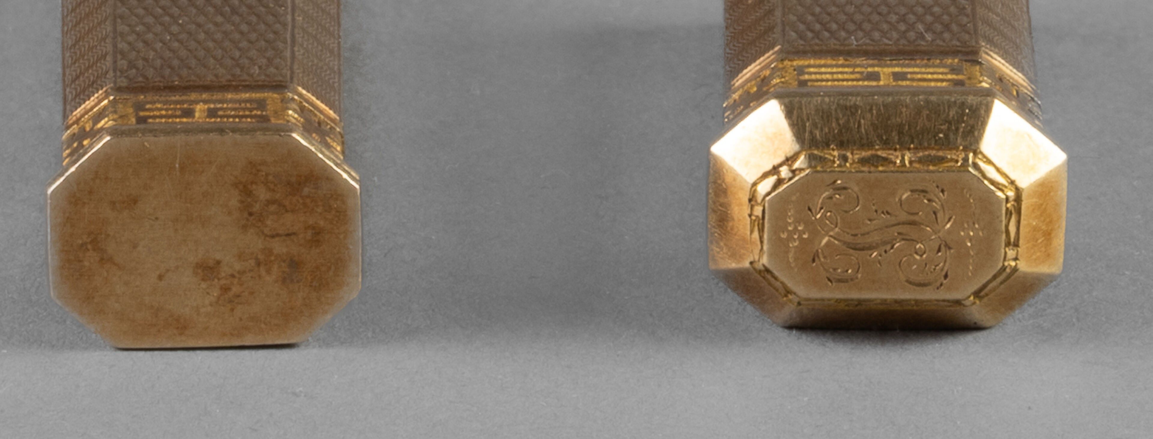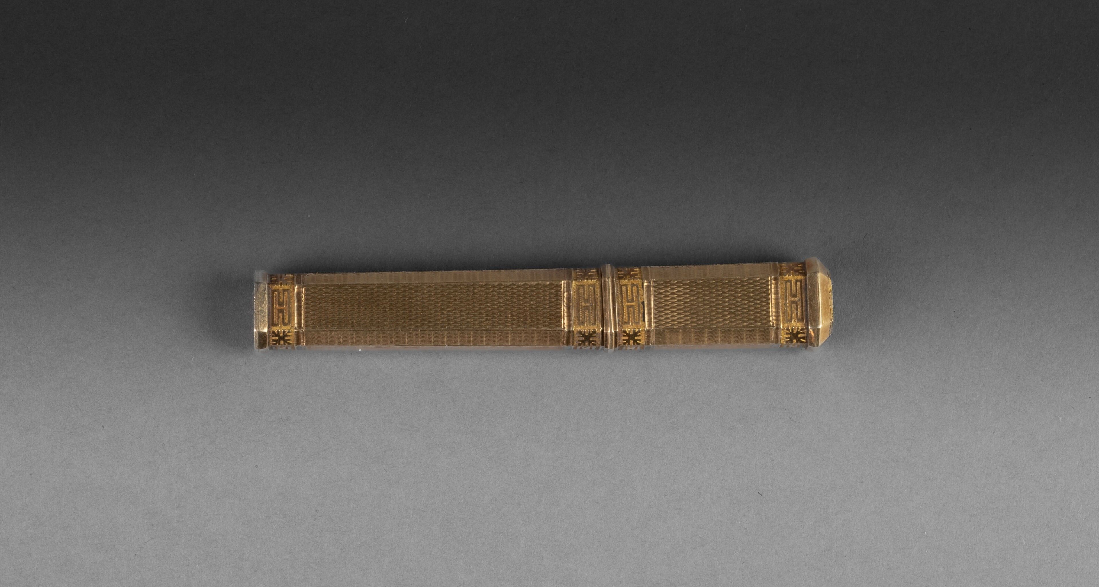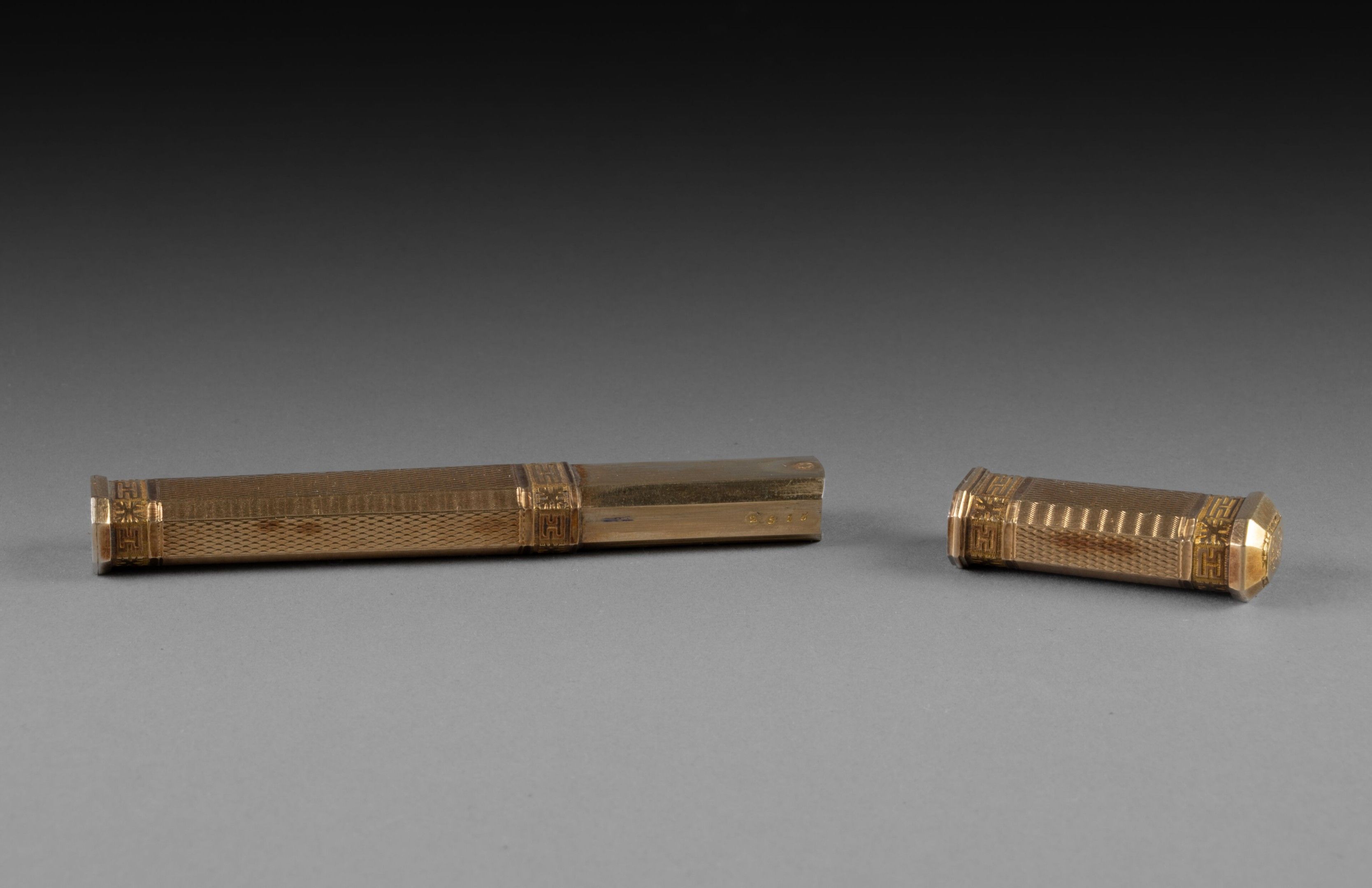 Wax case in yellow gold (750 thousandths) with guilloché and four bands of pseudo-grecques and fleurons