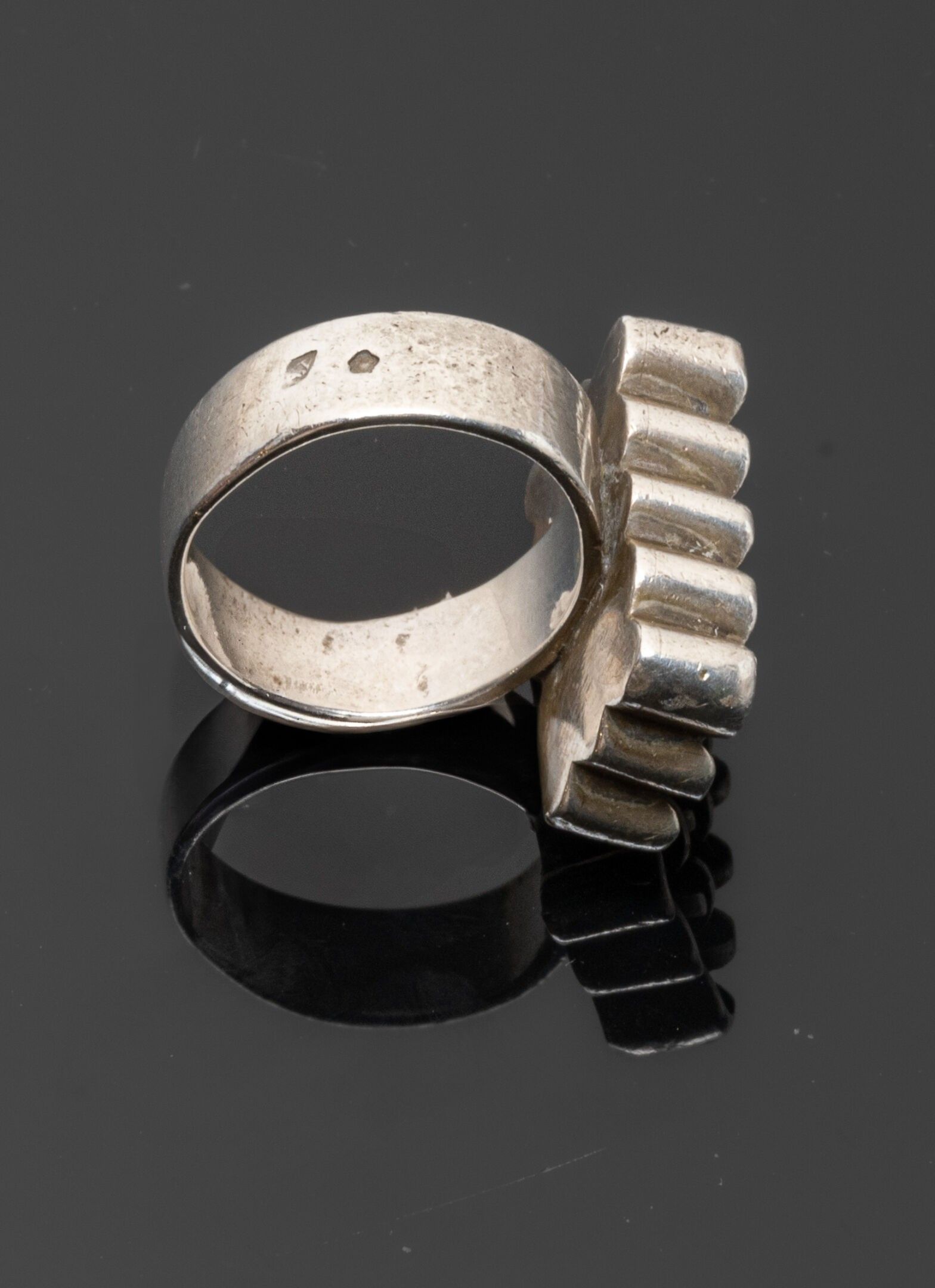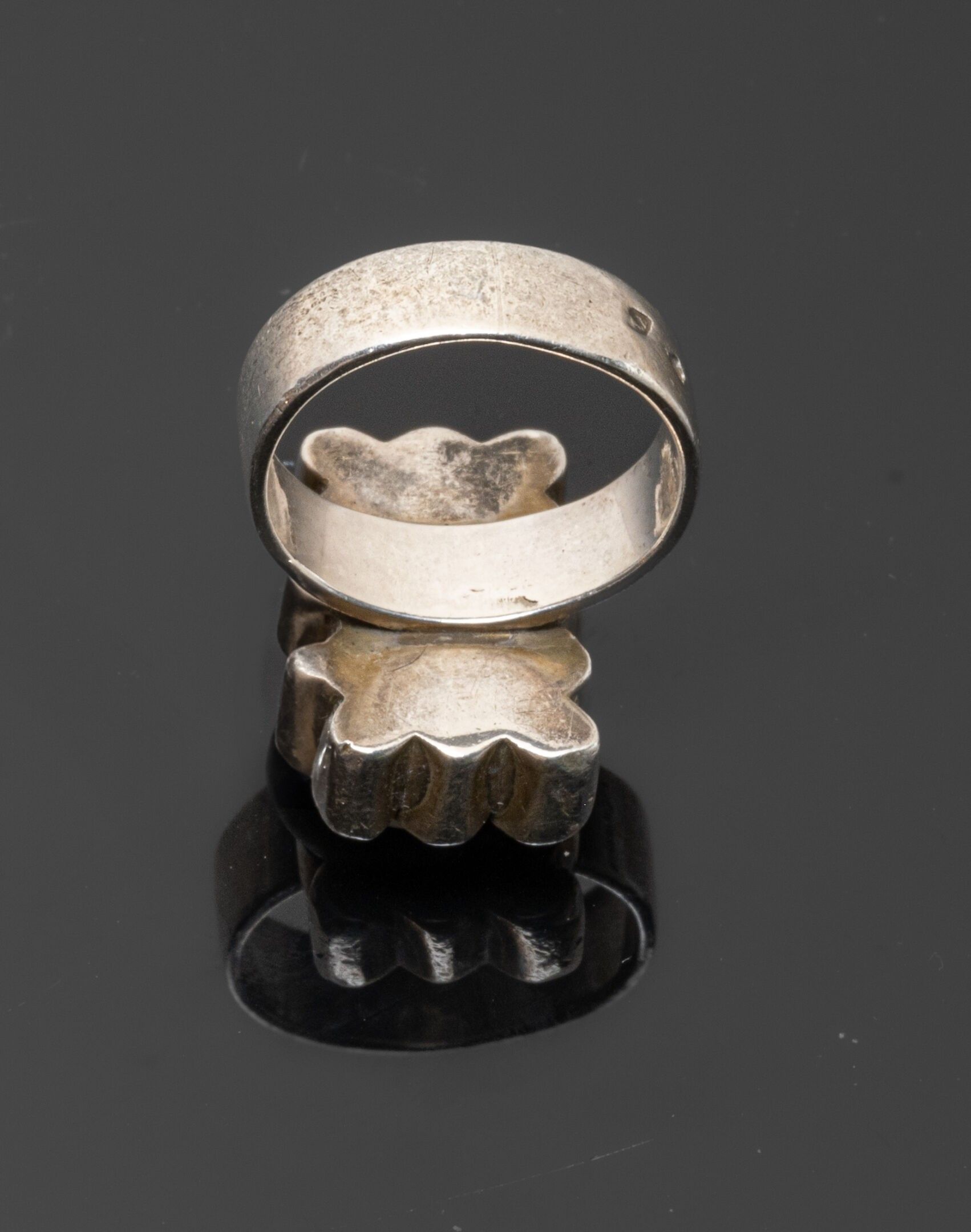Albert DURAZ Ring in silver (800°/°°), the rectangular plate…