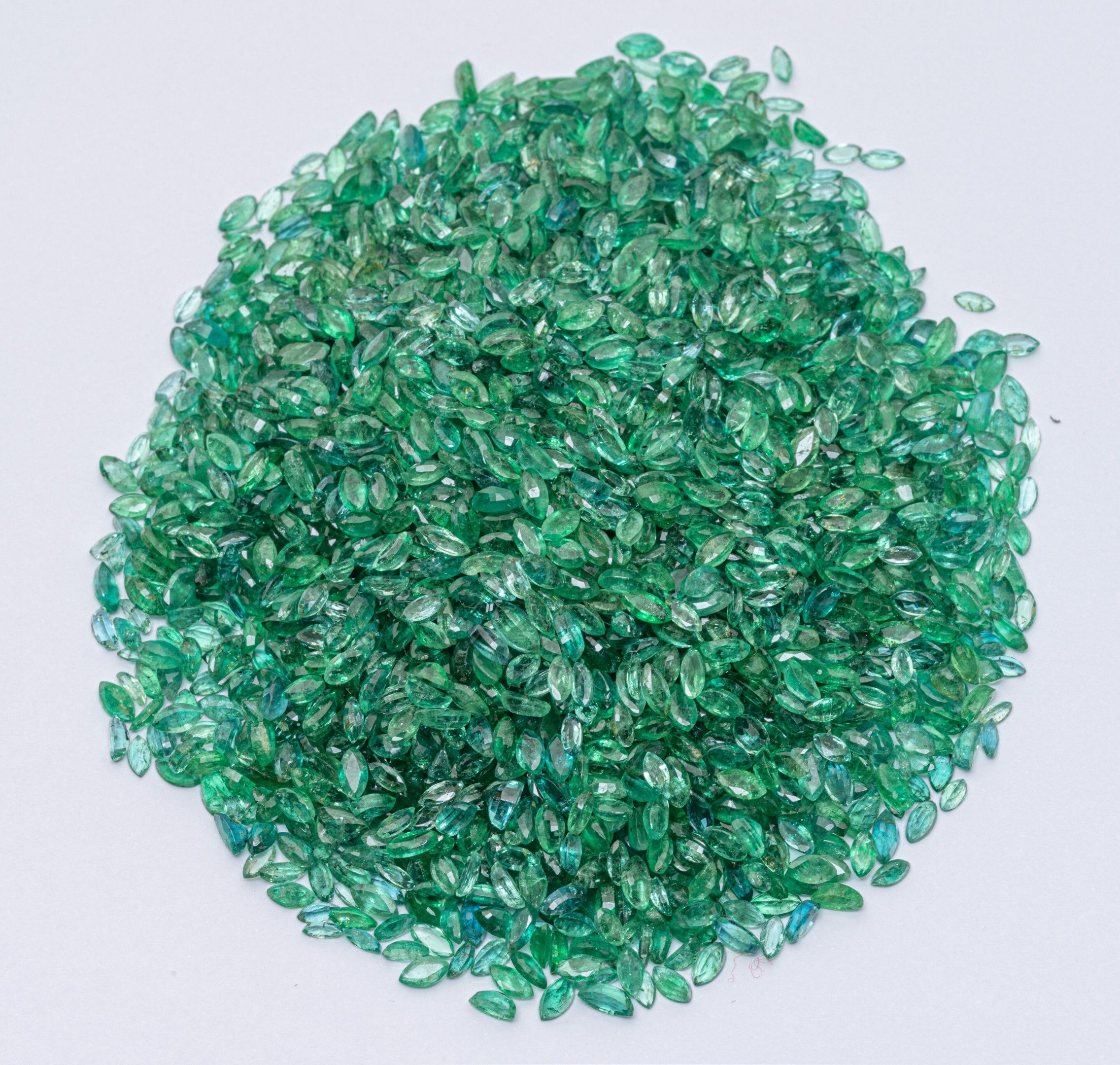 A lot of small marquise-cut emeralds weighing together more than 315 carats