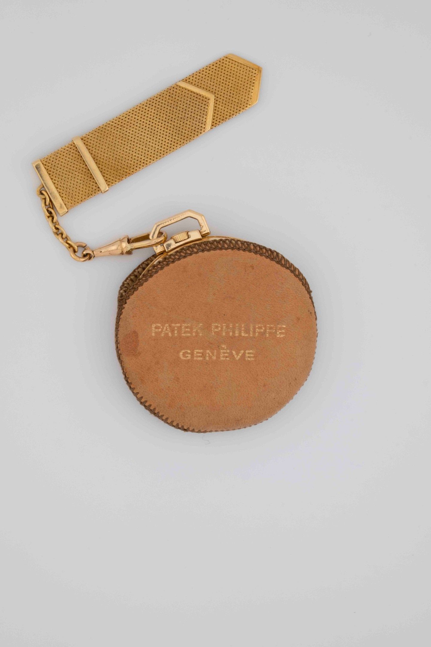 Set: pouch signed Patek Philippe. Accompanied by a snap hook in 750/1000 yellow gold.