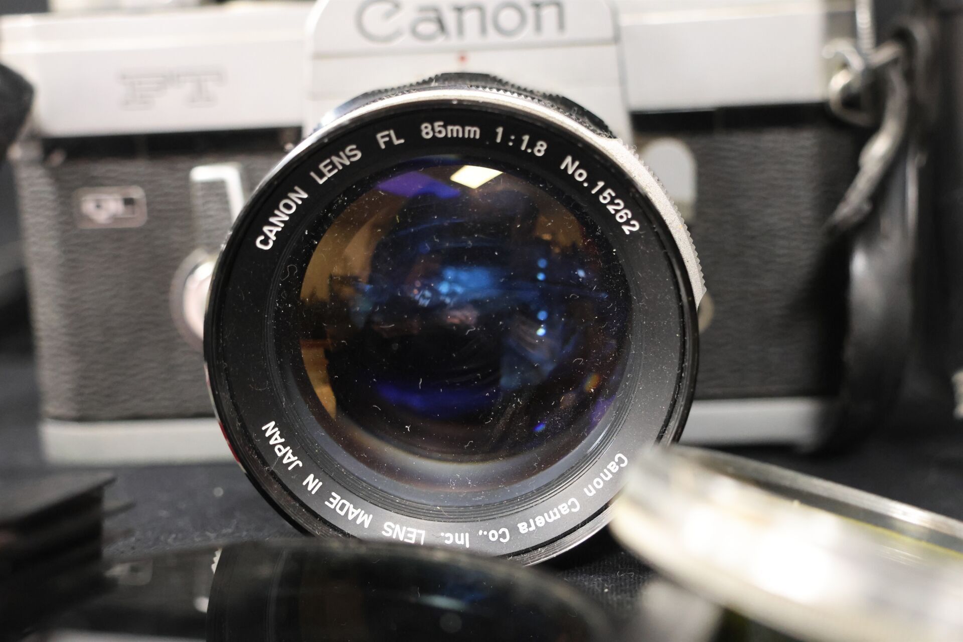 CANON FT QL Camera n° 376608 with lens 200 mm 1:4.5 n° 127382 + 35mm 1:3.5 n°42185 + 85 mm 1:1.8 n°15262 Consultant: François VIOT To the attention of the buyers: Storage fees after 15° day *** WE DO NOT DO PACKING OR SHIPPING - You must contact external service providers or send us pre-paid packaging ****** PORTER ENCHERE EQUIVAUT A ACCEPTER NOS CONDITIONS DE VENTE