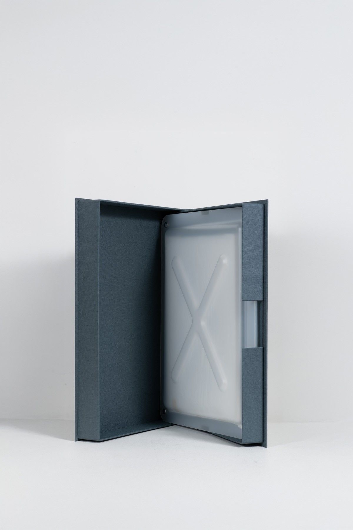 Moulded plastic case designed by Andrea Branzi, with four (4) silver prints by Malick Sidibé, under passepartout, signed and dated in pencil on the reverse (30 × 20 cm with margins).