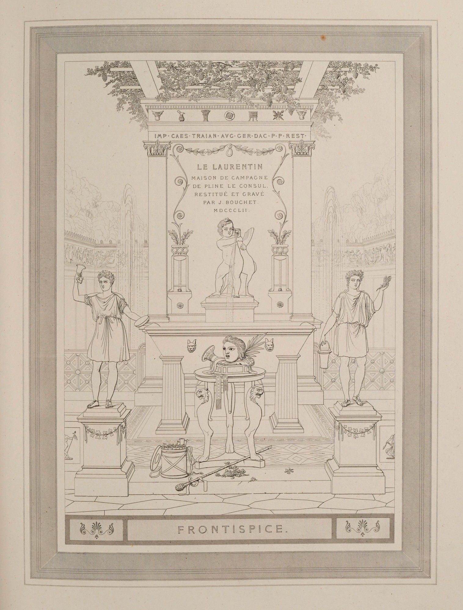 Le Laurentin. Pline-le-Consul's country house restored according to his letter to Gallus. Paris, Chez l'Auteur, 1852. In-folio, half dark blue morocco with corners, spine ribbed and decorated (late 19th c. binding).