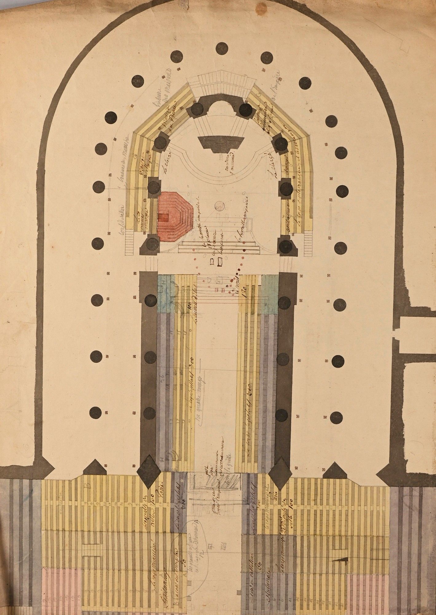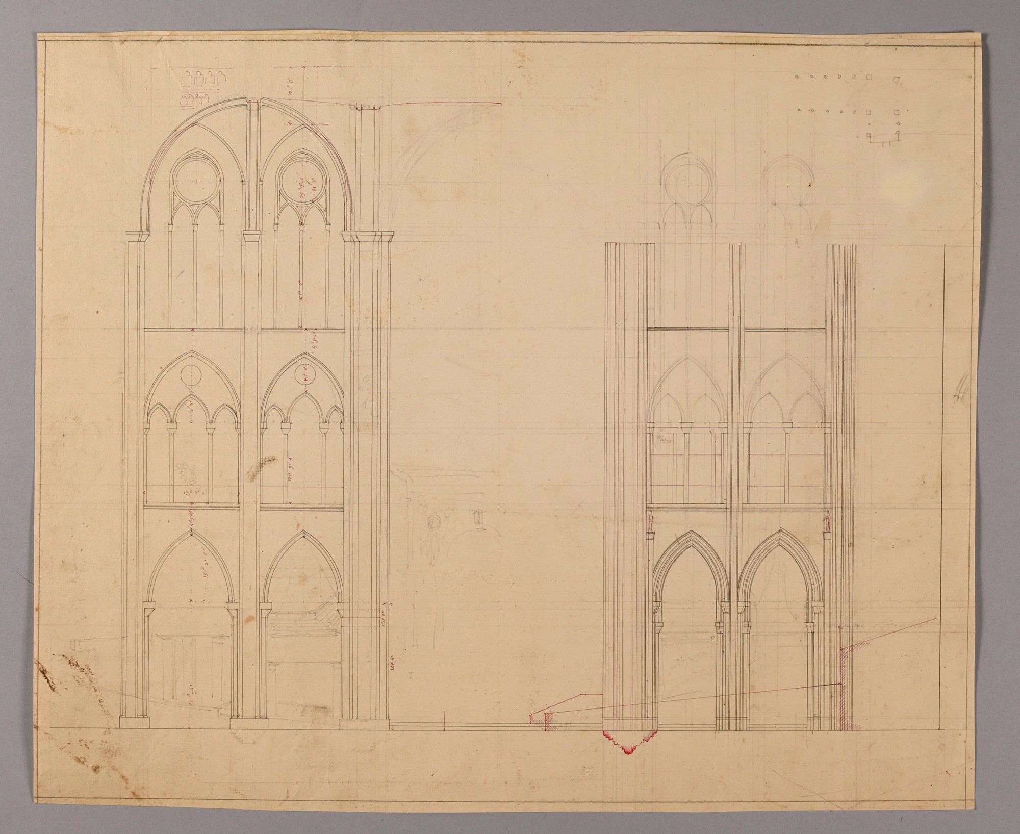 Surveys and cross-sections of Gothic arcatures, with proposed decoration (stylus marks)