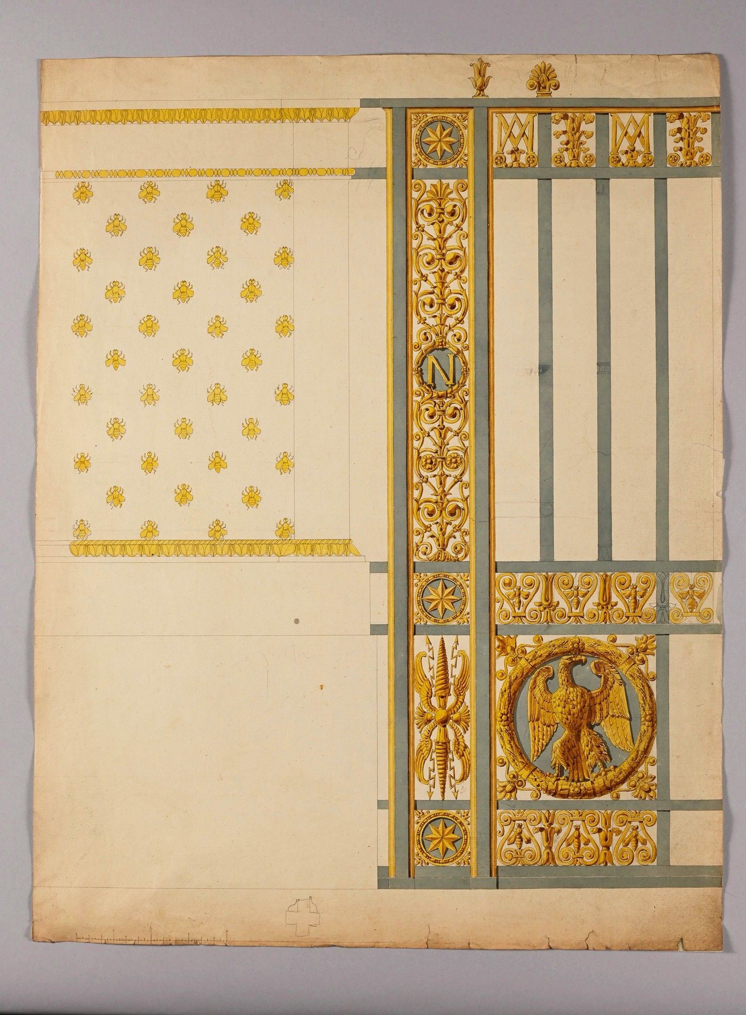 Project for a grid decorated with an eagle with outstretched wings in a medallion, with the figures of Napoleon and Marie-Louise (?), project for a decoration with bees