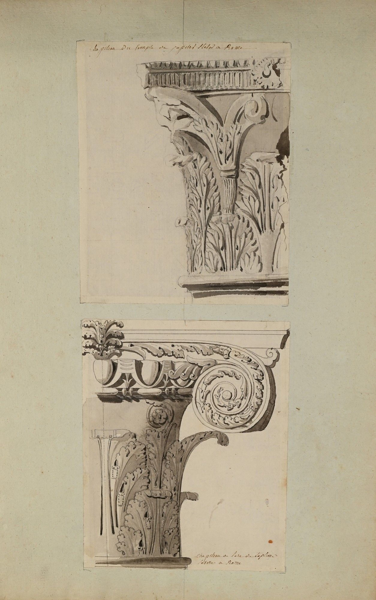 Studies of the capitals of the Temple of Jupiter Stator and the Temple of Septimius Severus in Rome