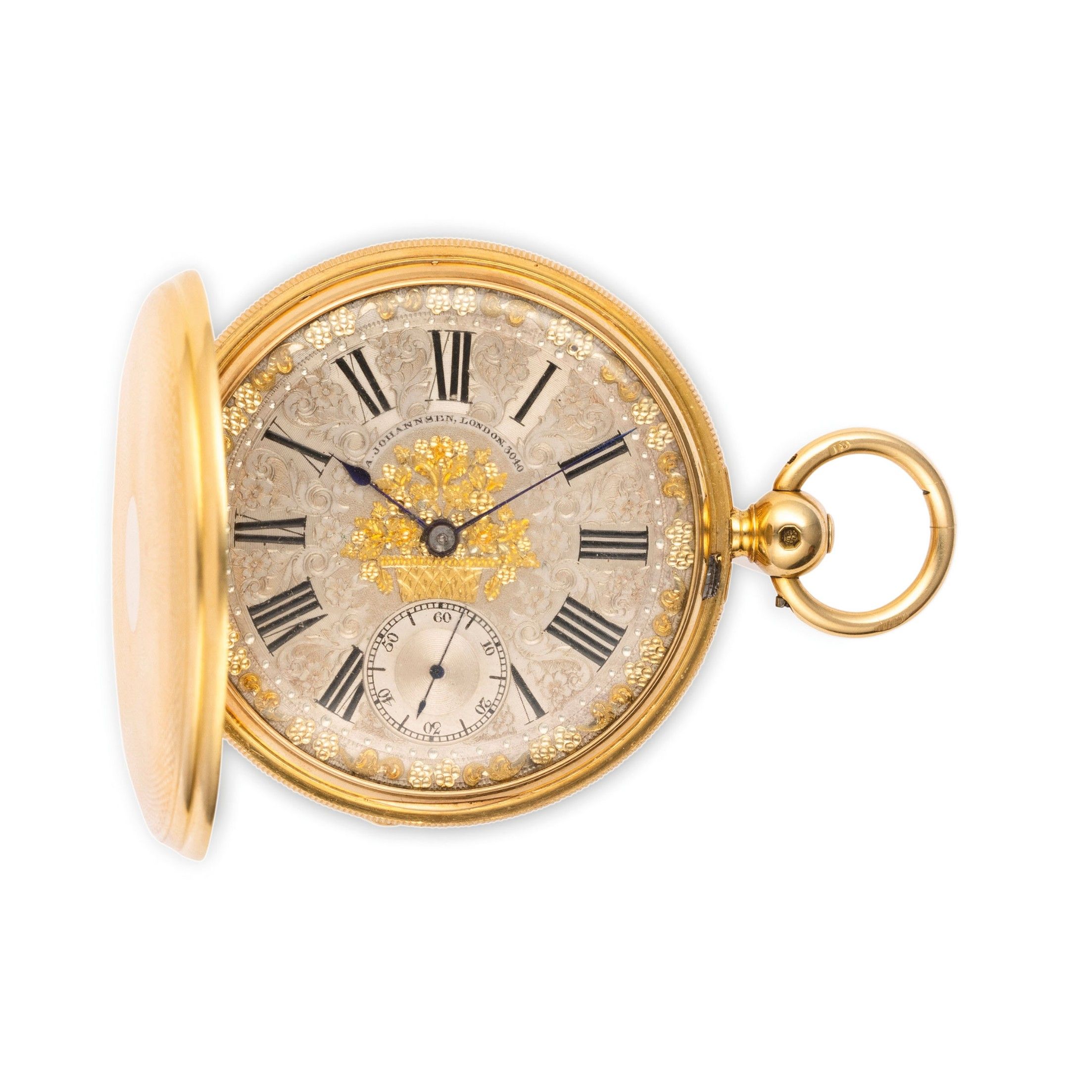 A. JOHNNSEN LONDON 3040, DETENT ESCHAPPEMENT, 18K HUNTER CASE POCKET WATCH, LONDON, ENGLAND CIRCA 1870