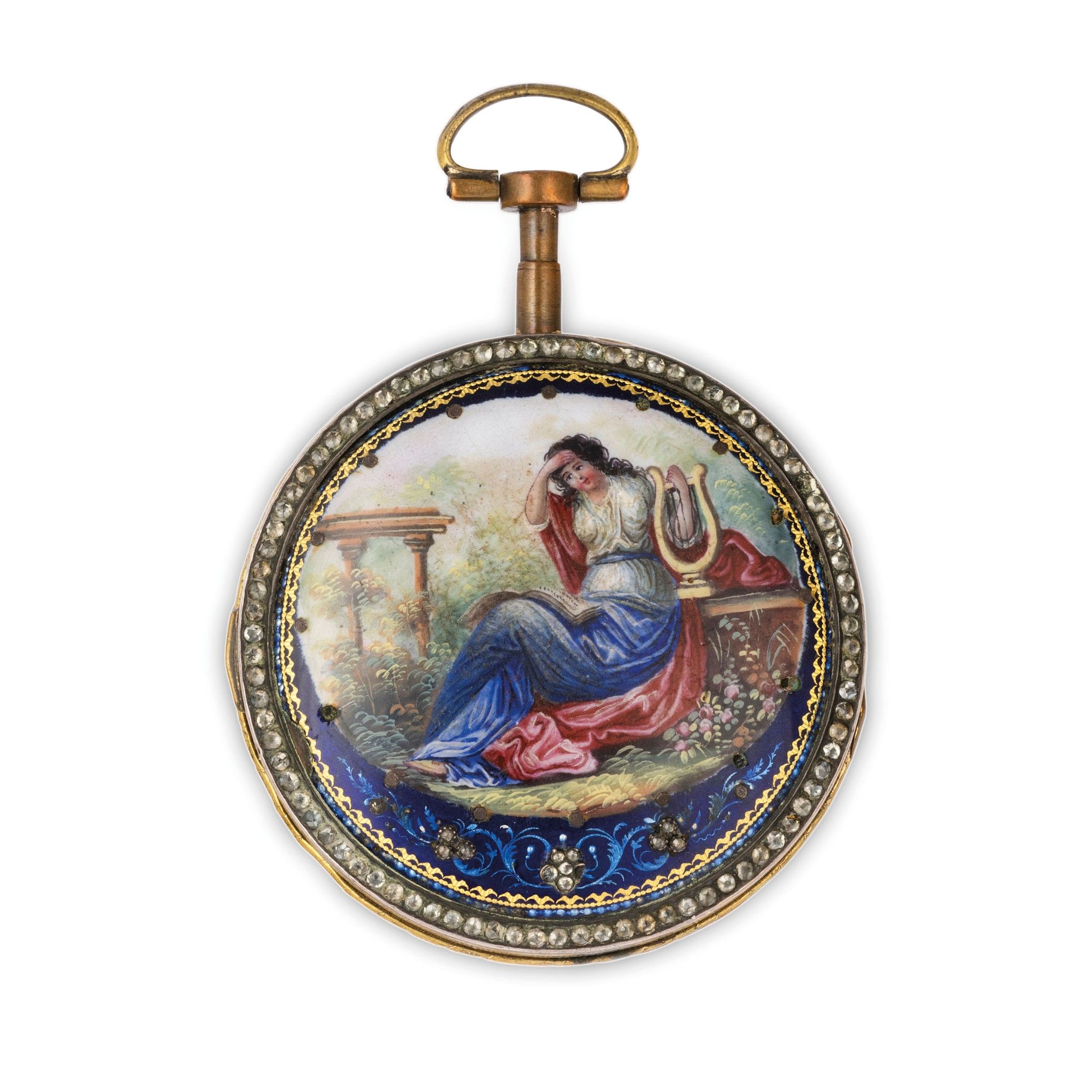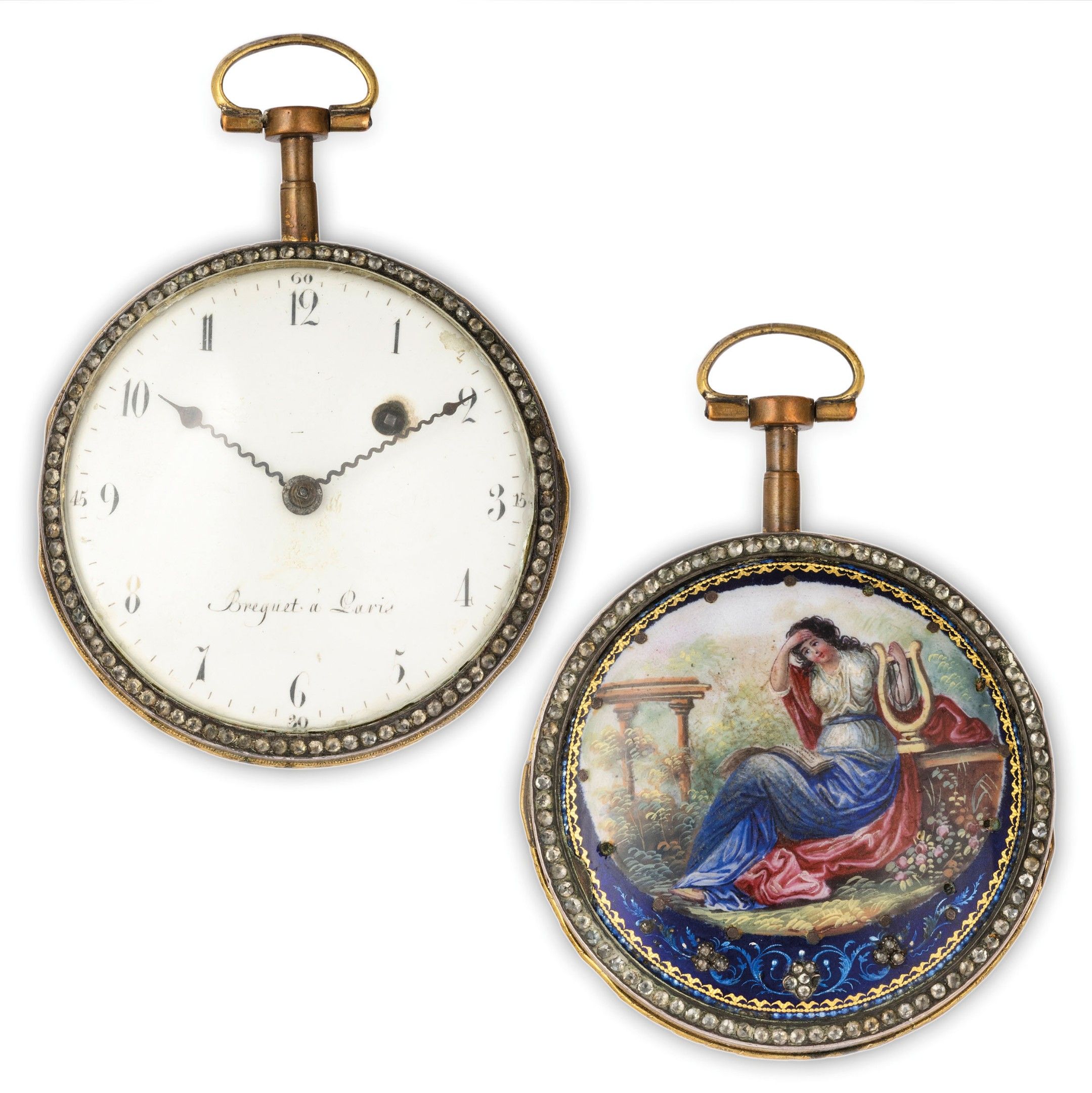 BREGUET IN PARIS, POCKET WATCH WITH ENAMEL AND RHINESTONES, SWISS CIRCA 1780