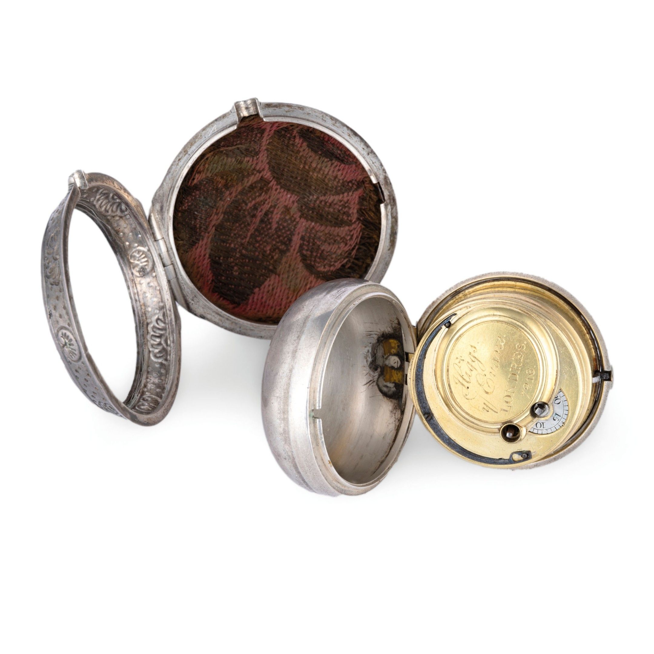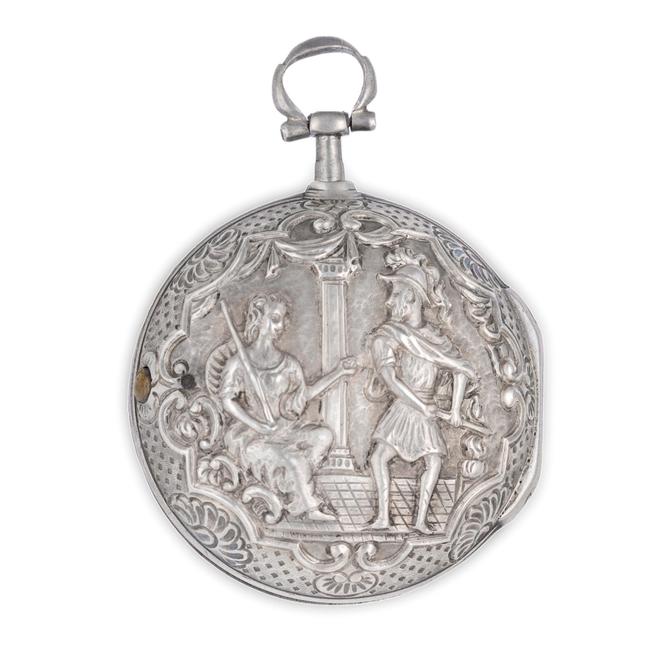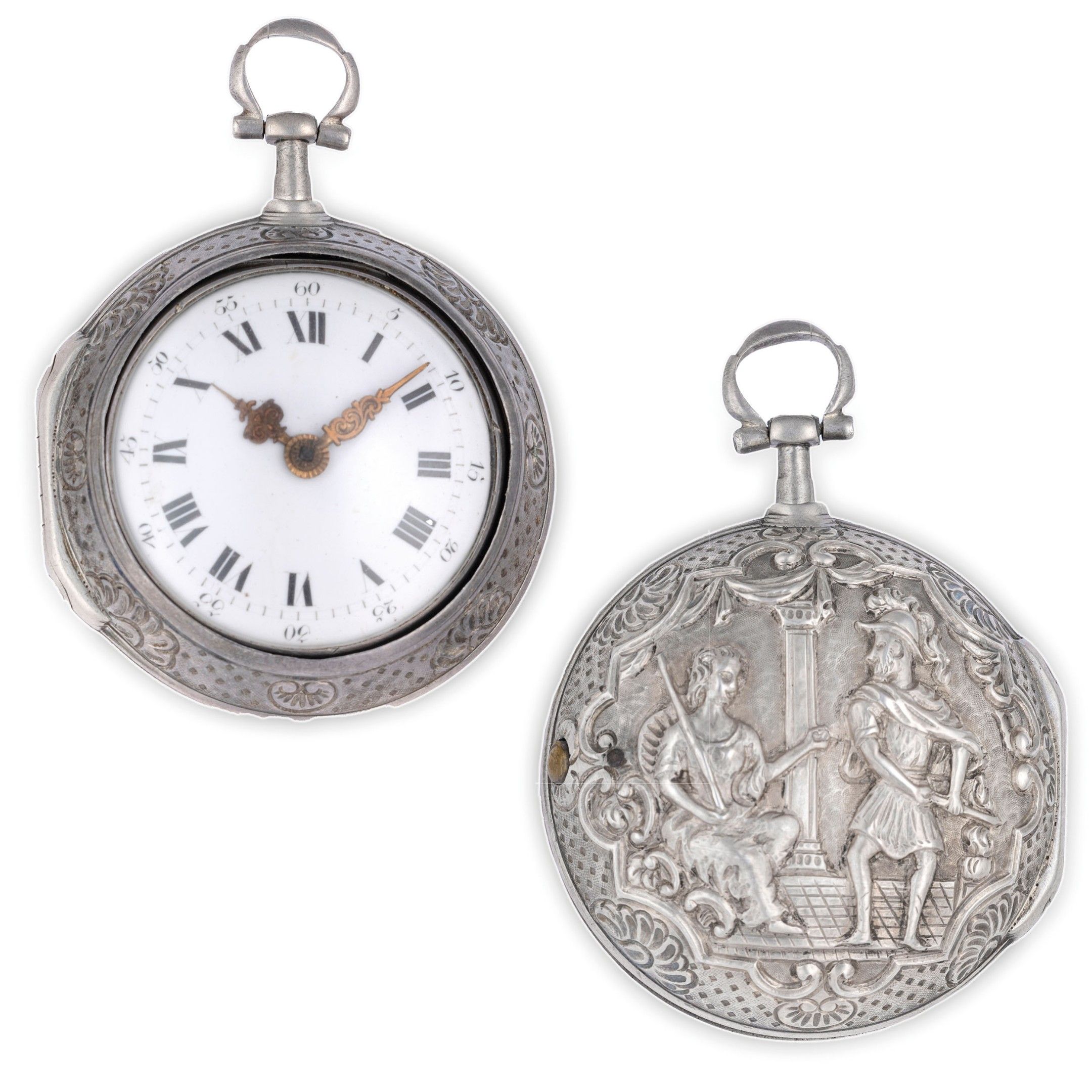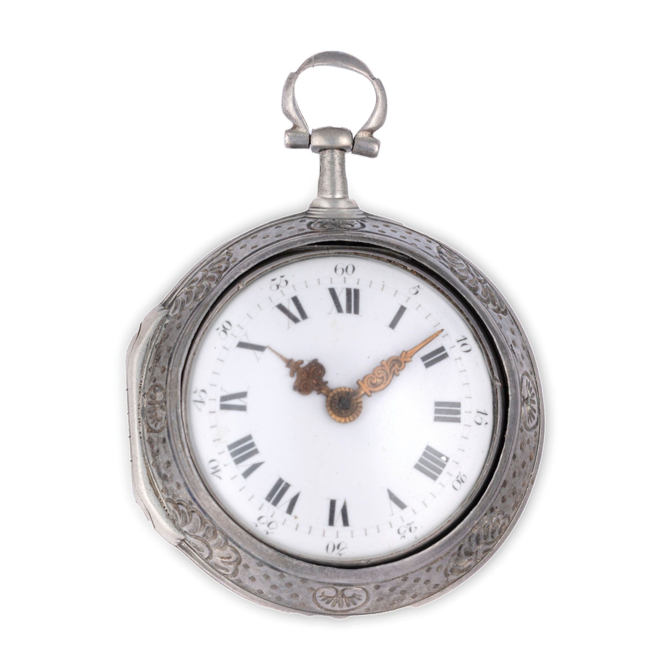 HIGGS EVANS, LONDON, EMBOSSED SILVER DOUBLE CASE, POCKET WATCH, ENGLAND CIRCA 1730
